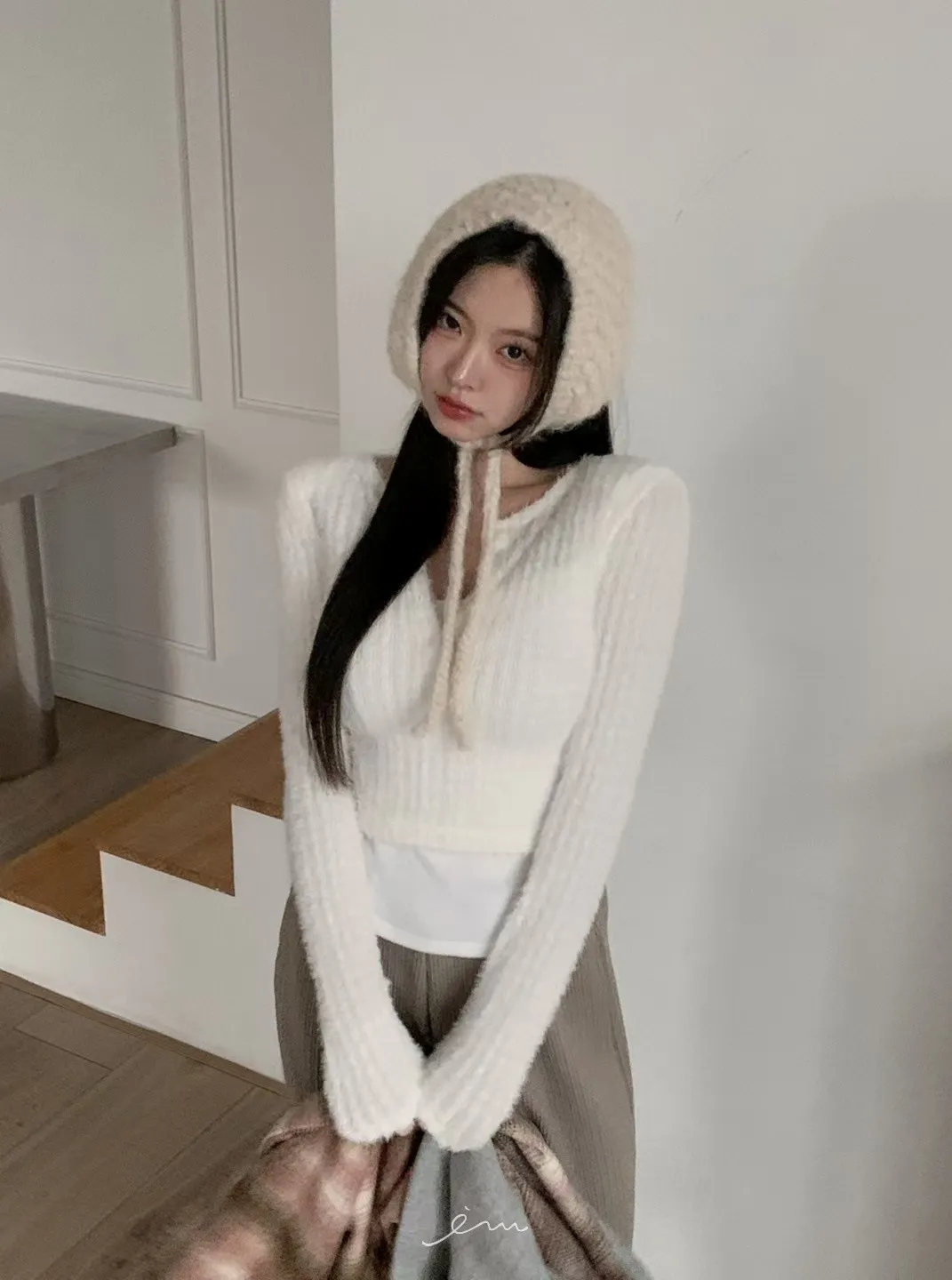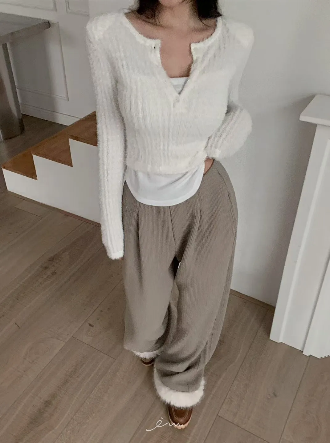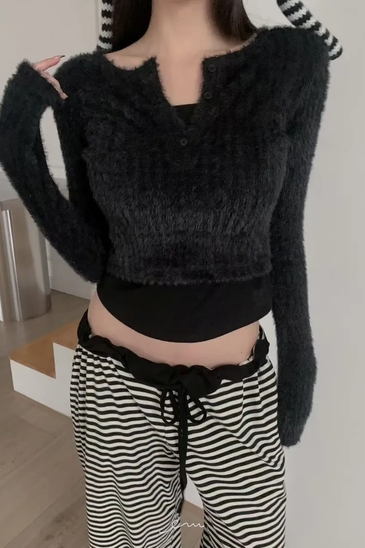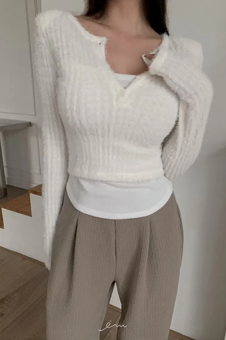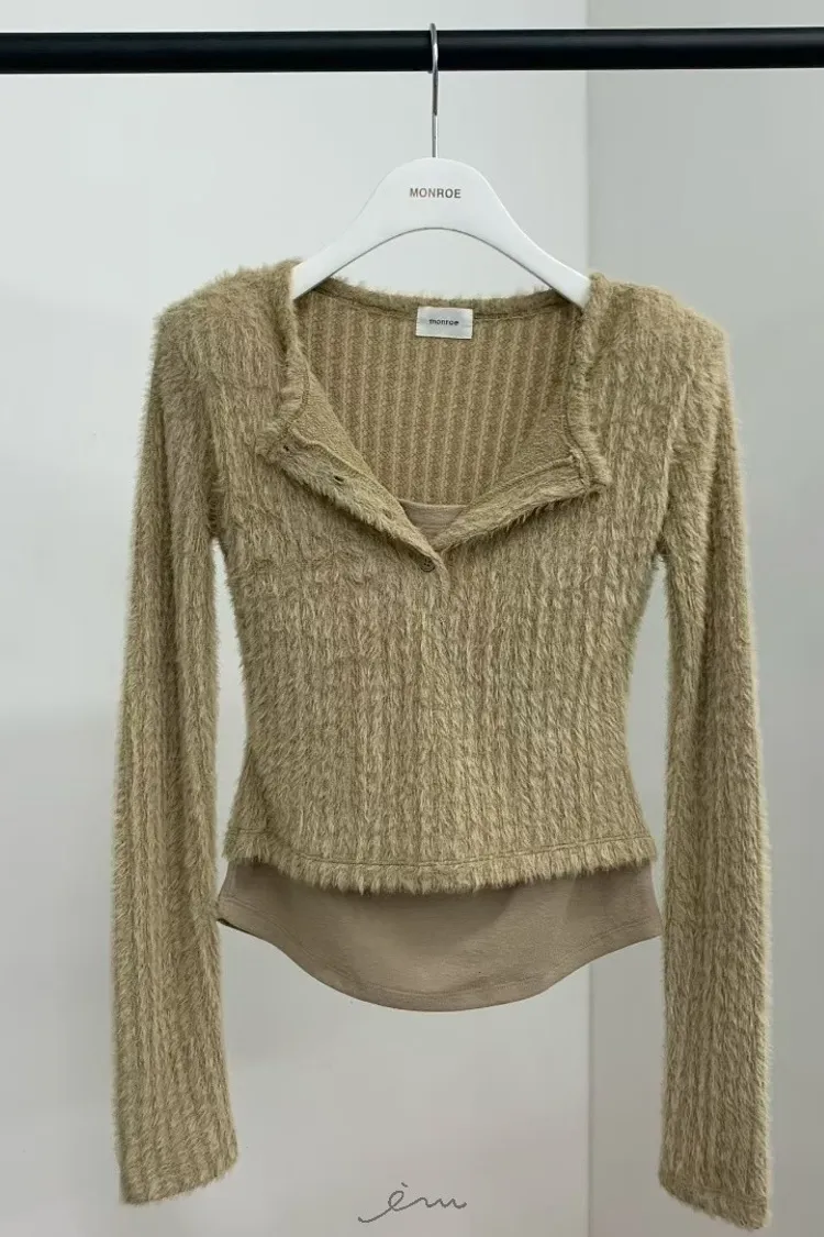 MON假兩件毛毛感衣