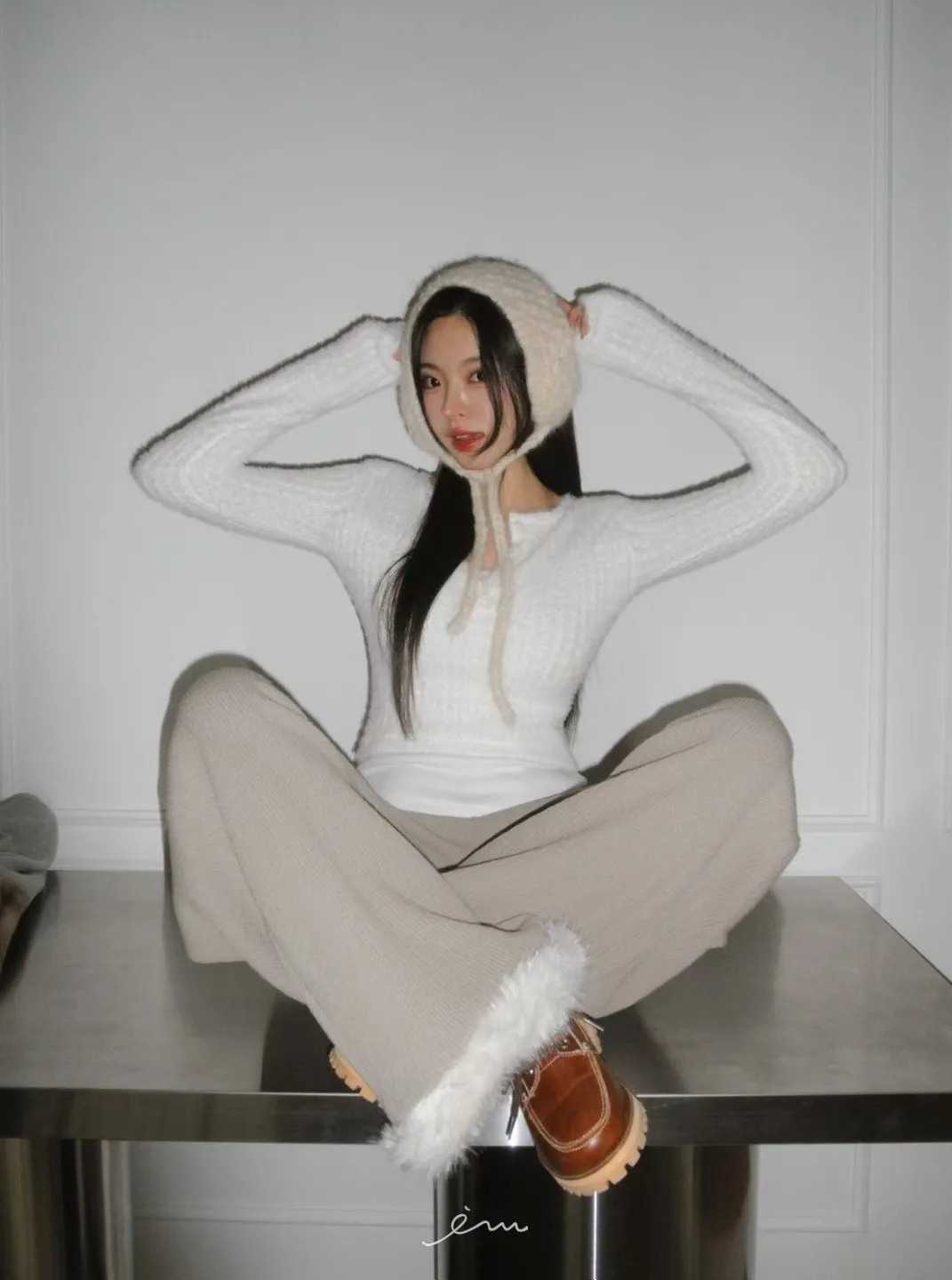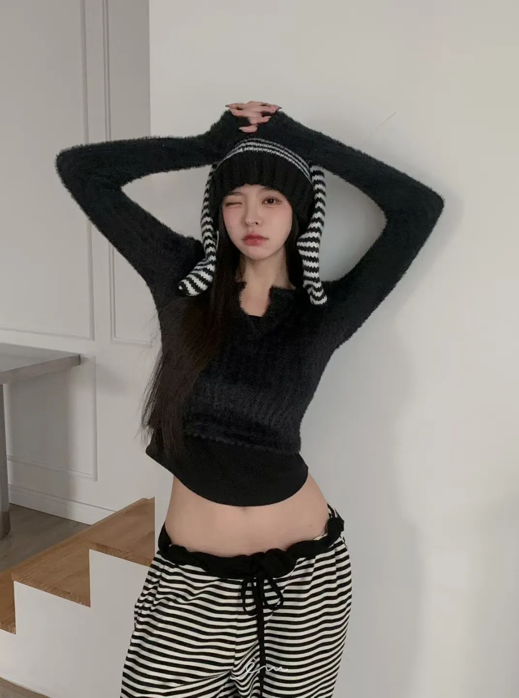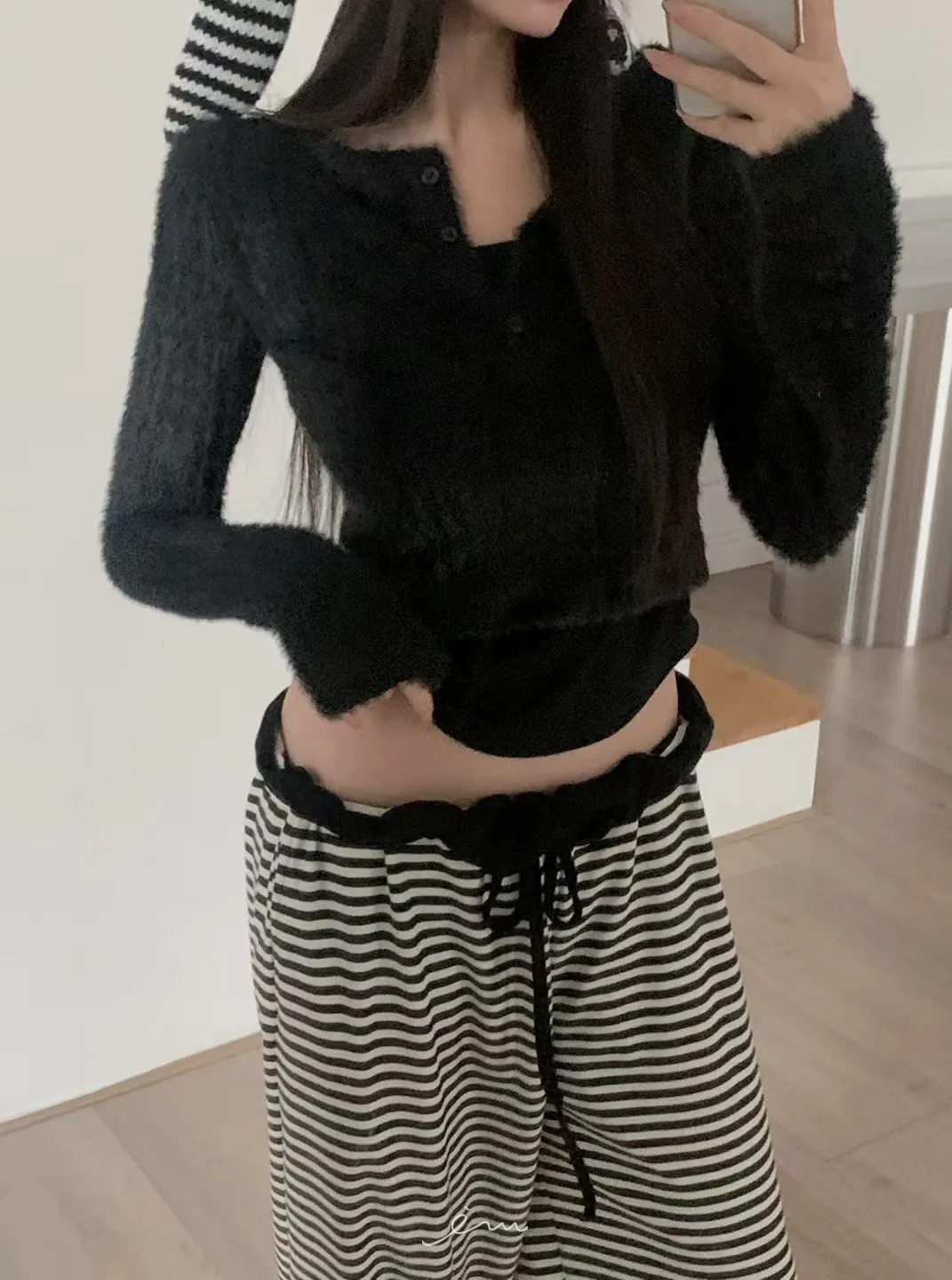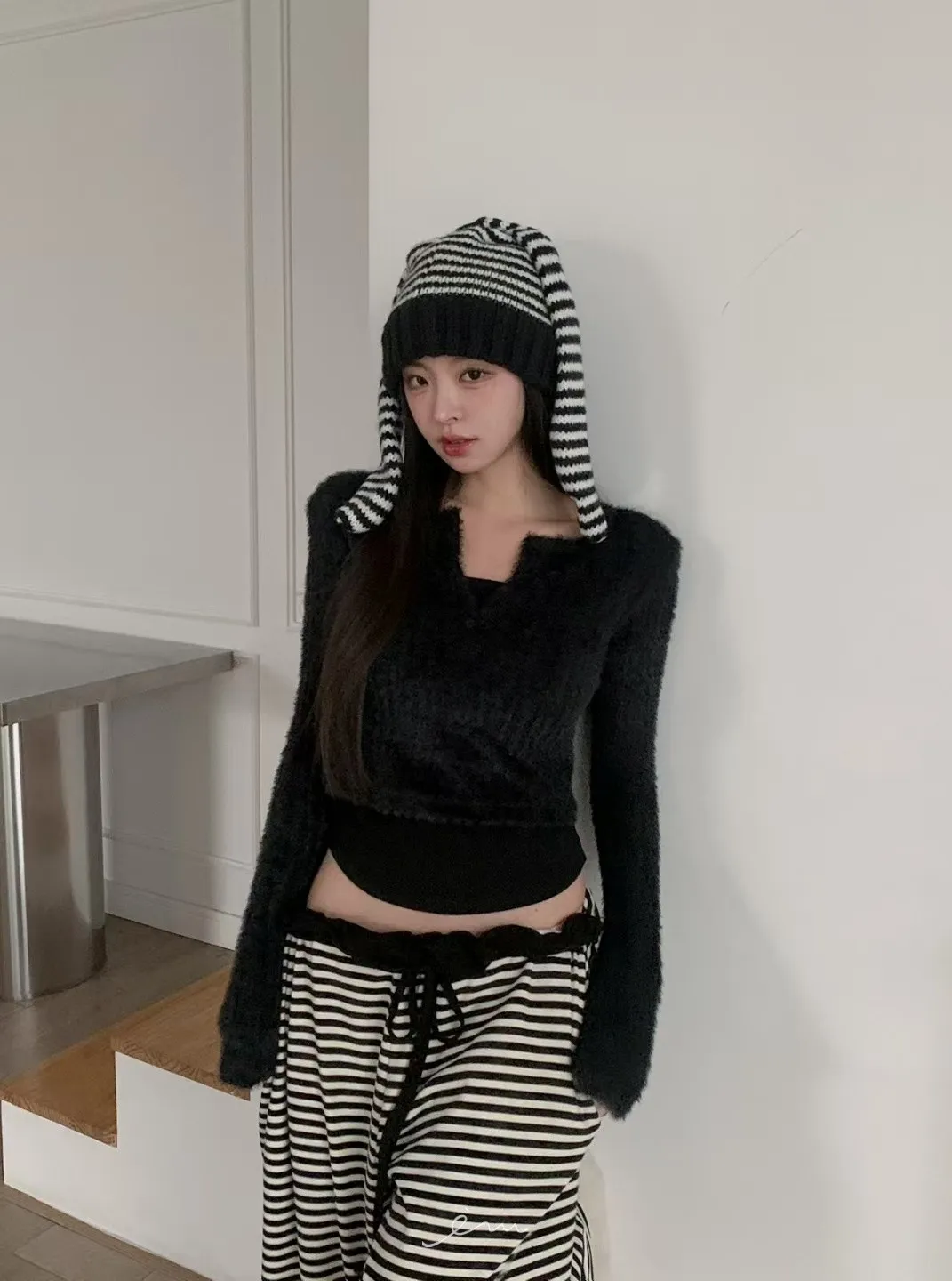 MON假兩件毛毛感衣