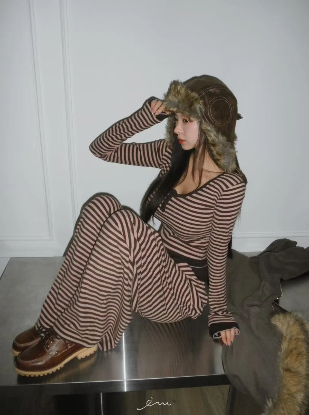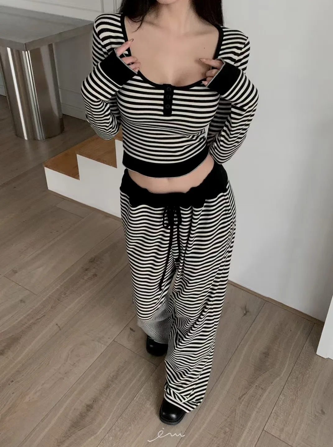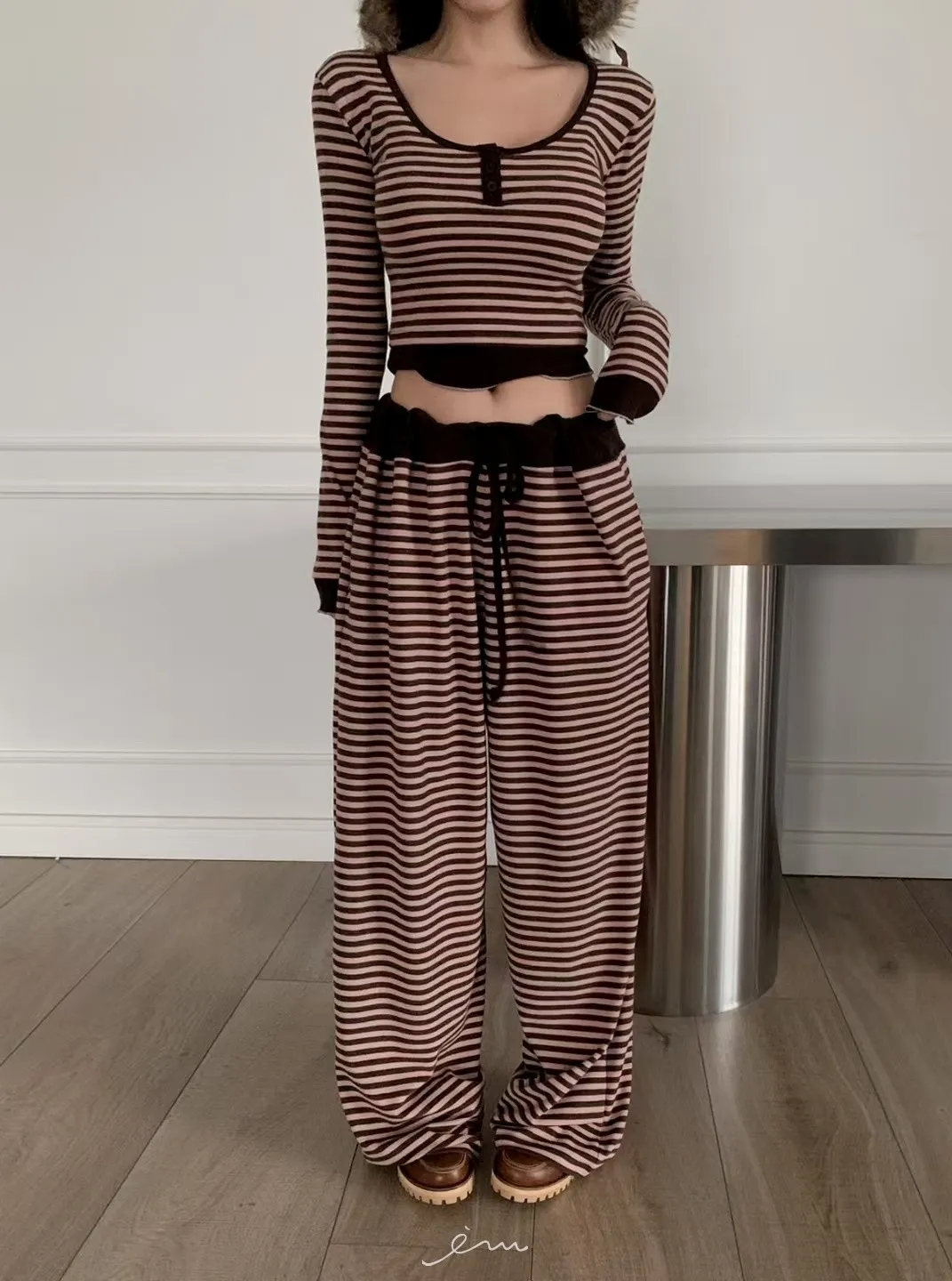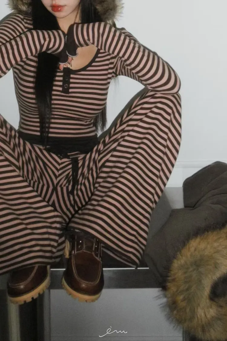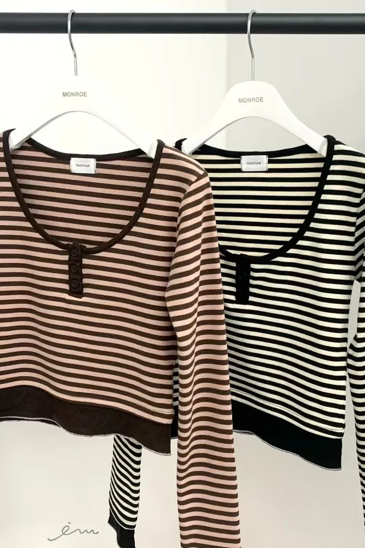 MON三釦條紋配色衣