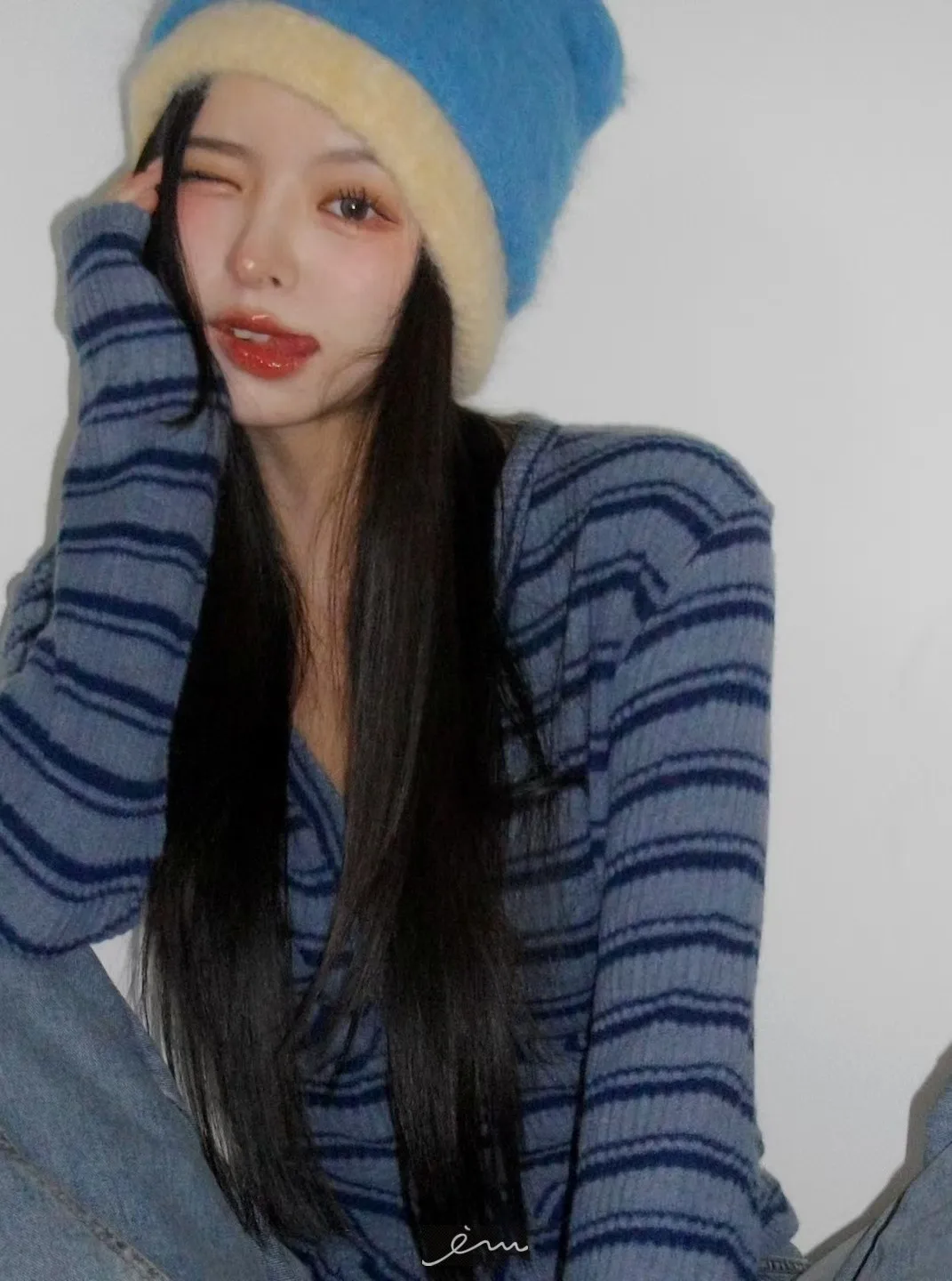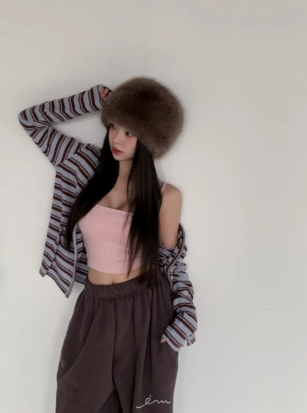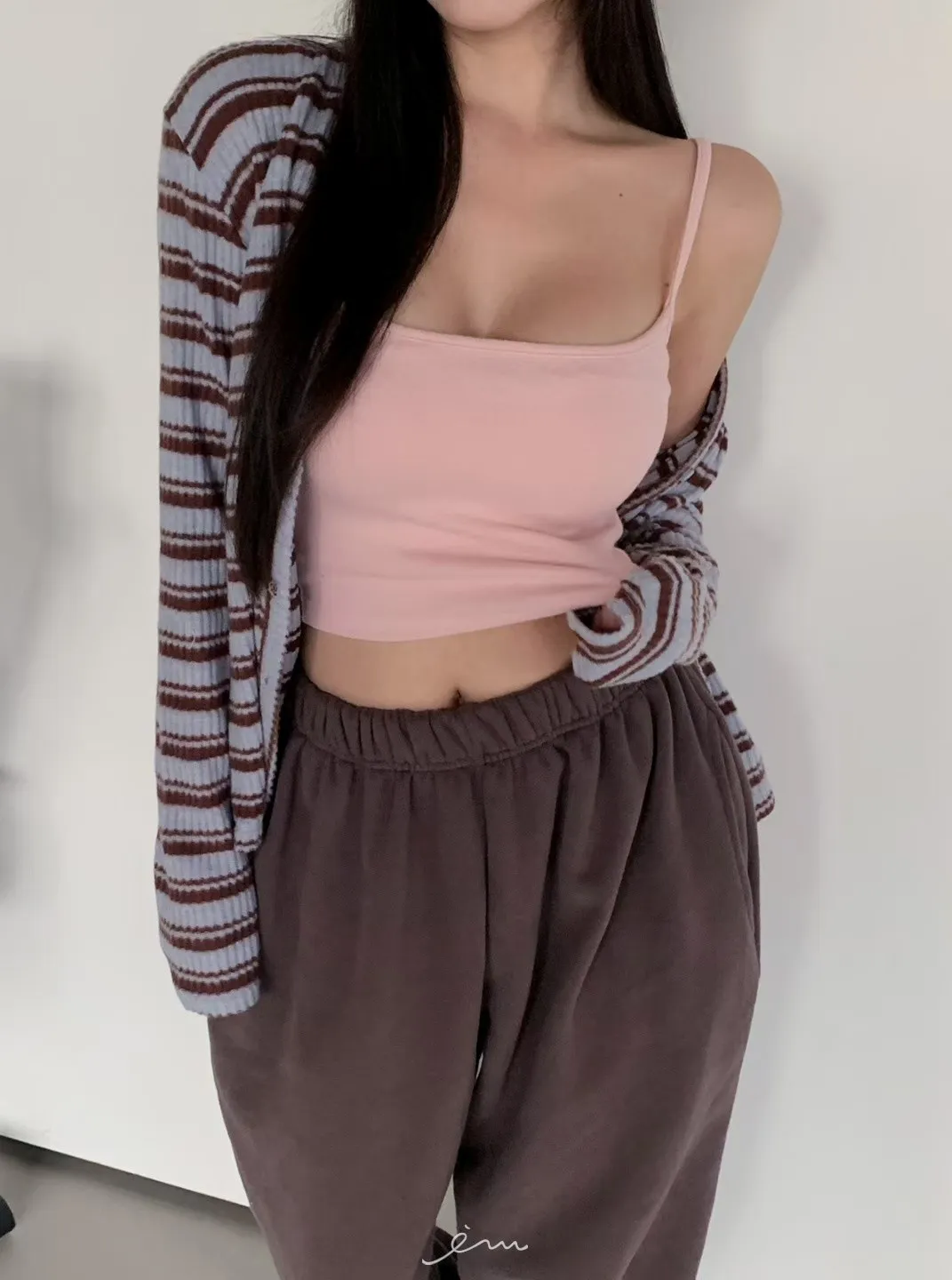 MON排釦假兩件感條紋外套