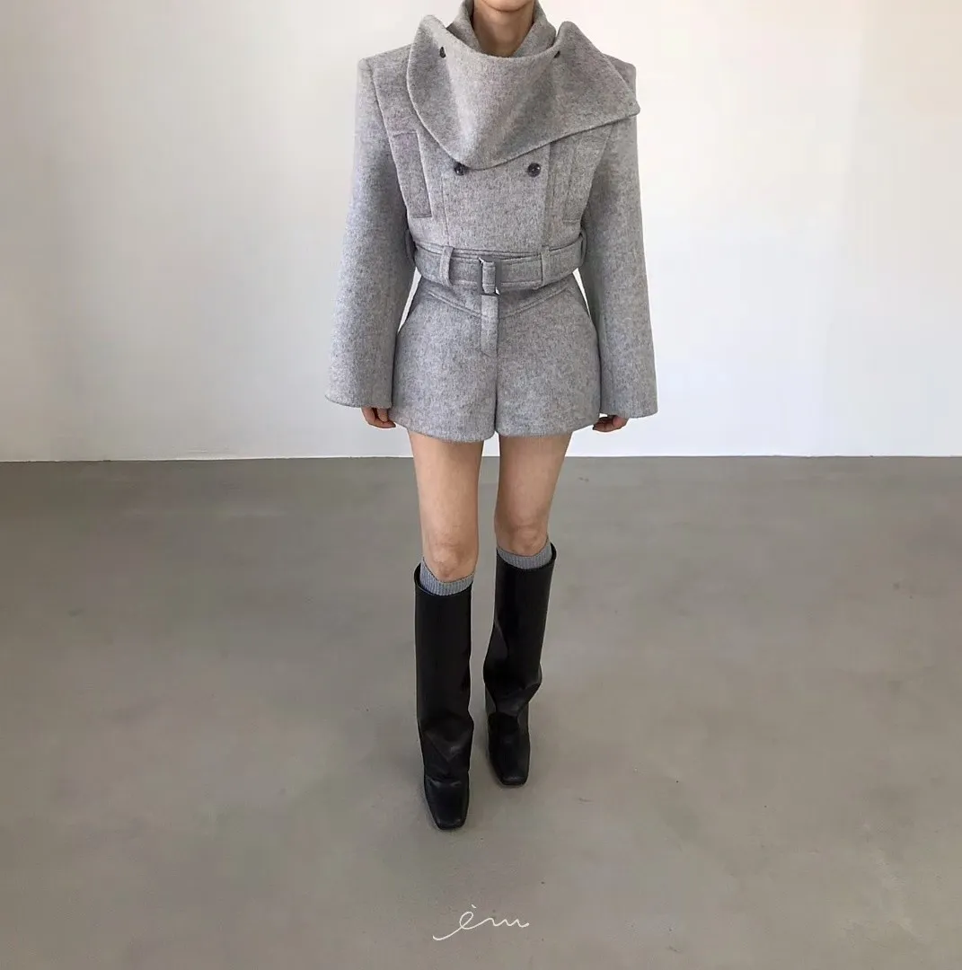 TW-V字車線隱藏釦羊毛短褲(肉0清單)