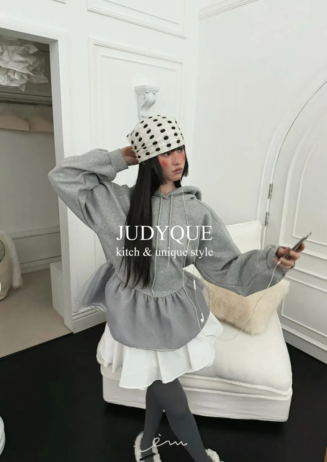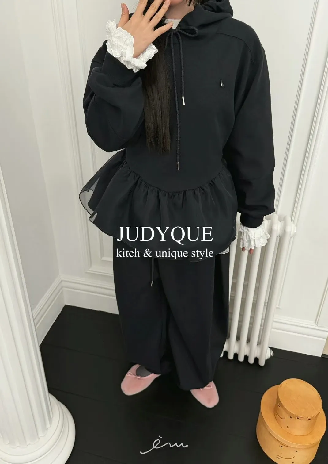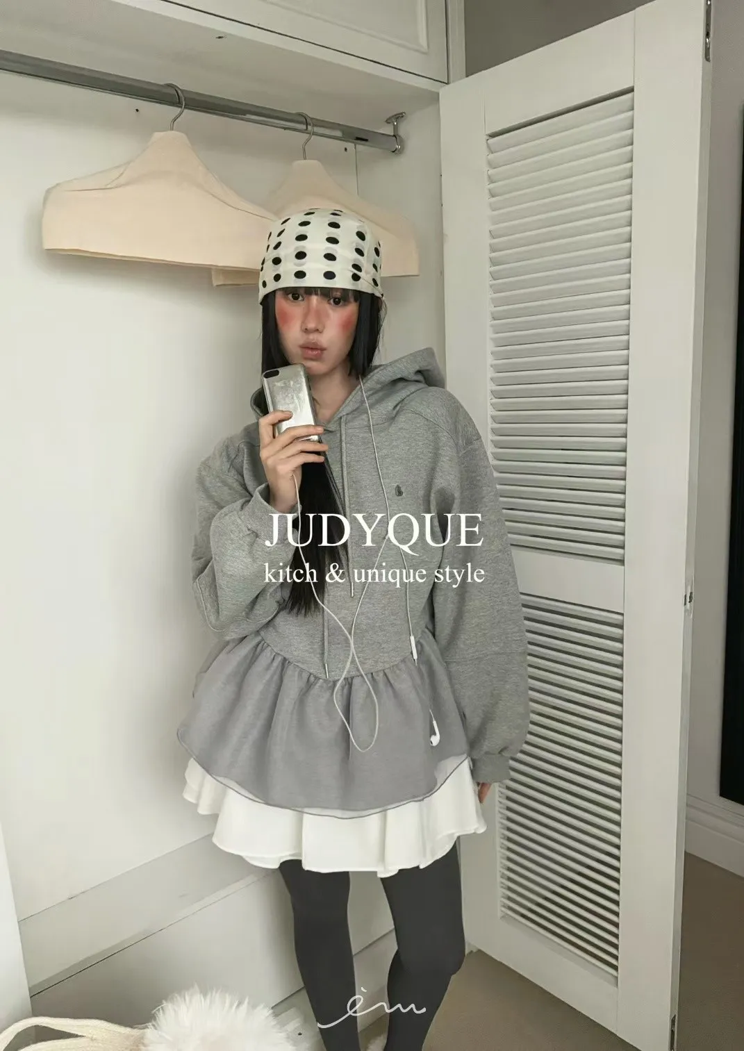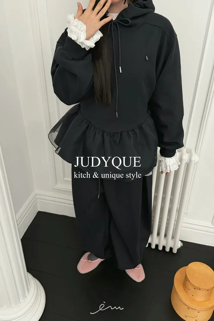 JD下擺拼紗造型連帽上衣