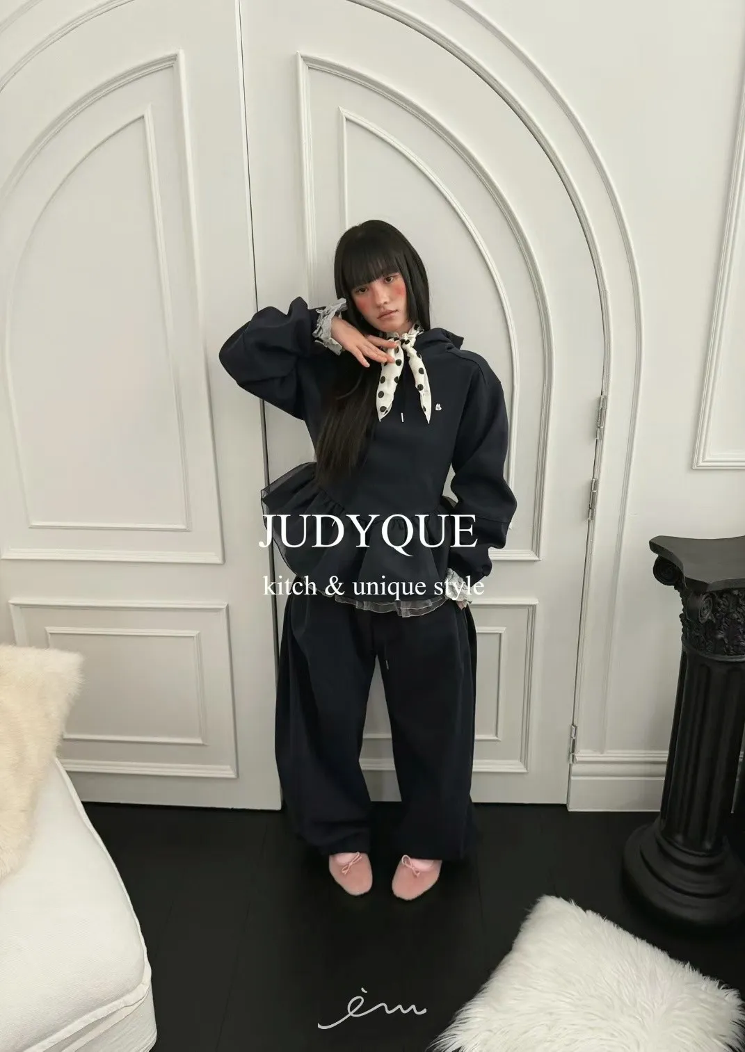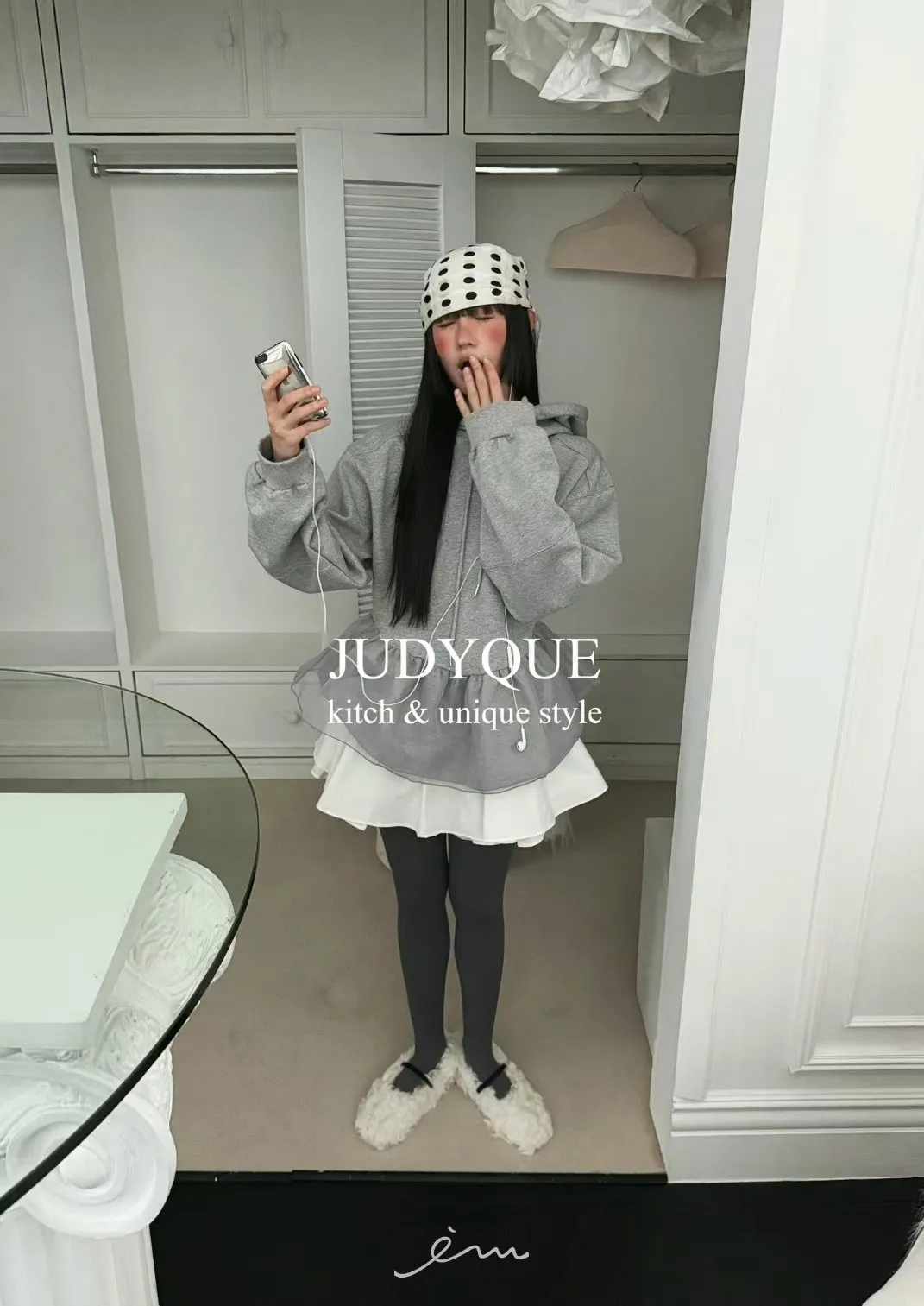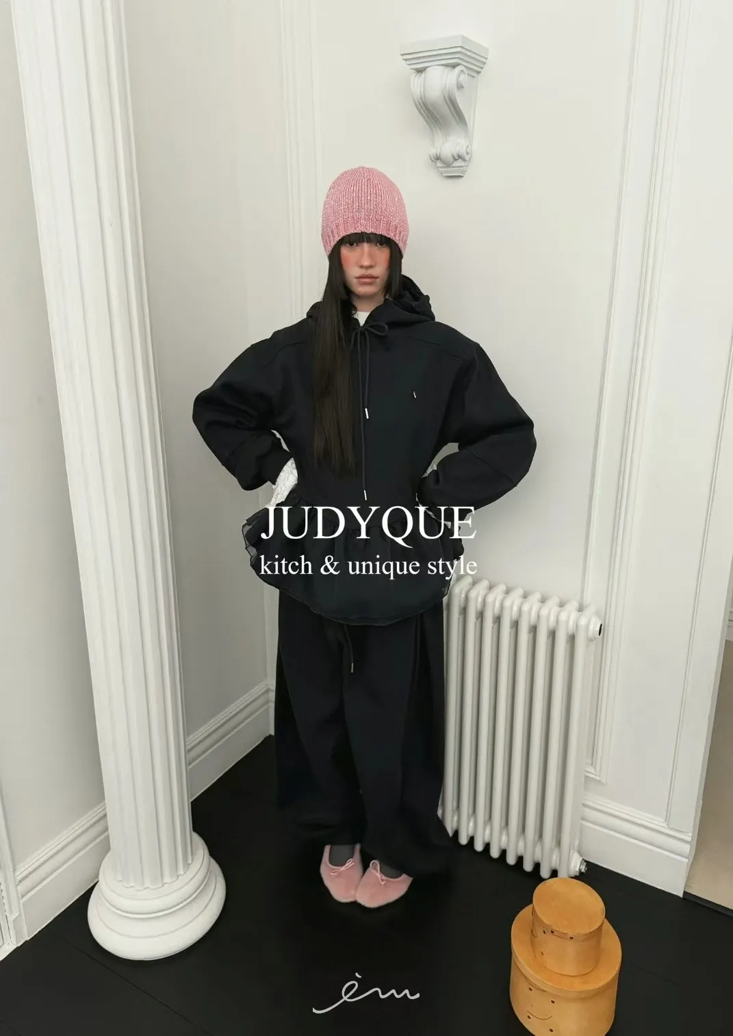 JD下擺拼紗造型連帽上衣