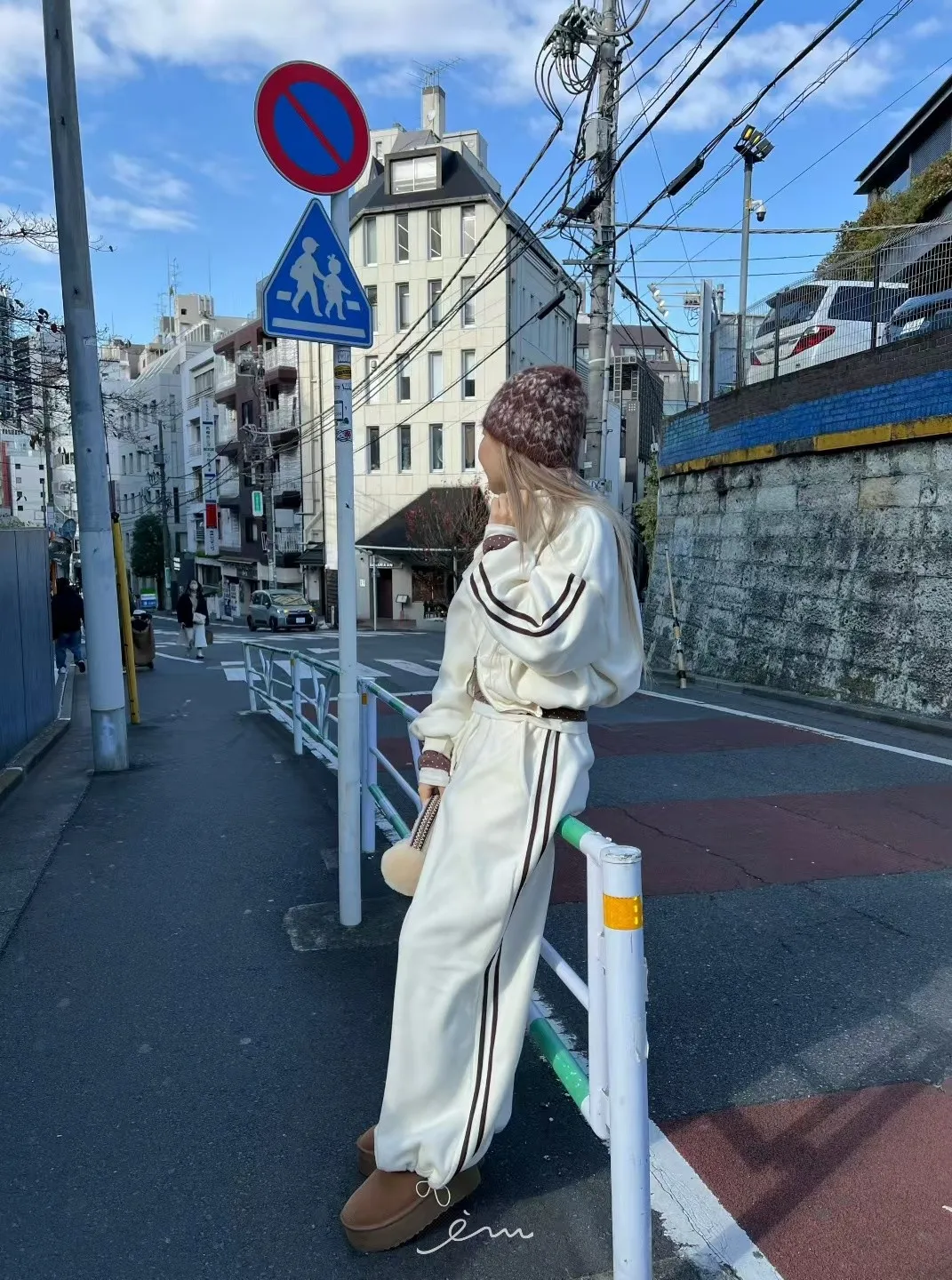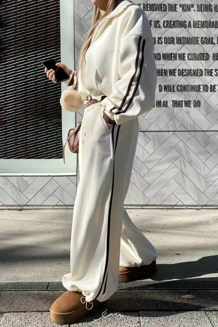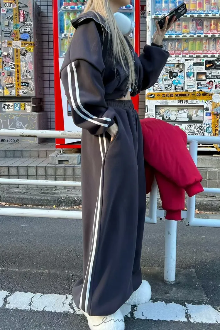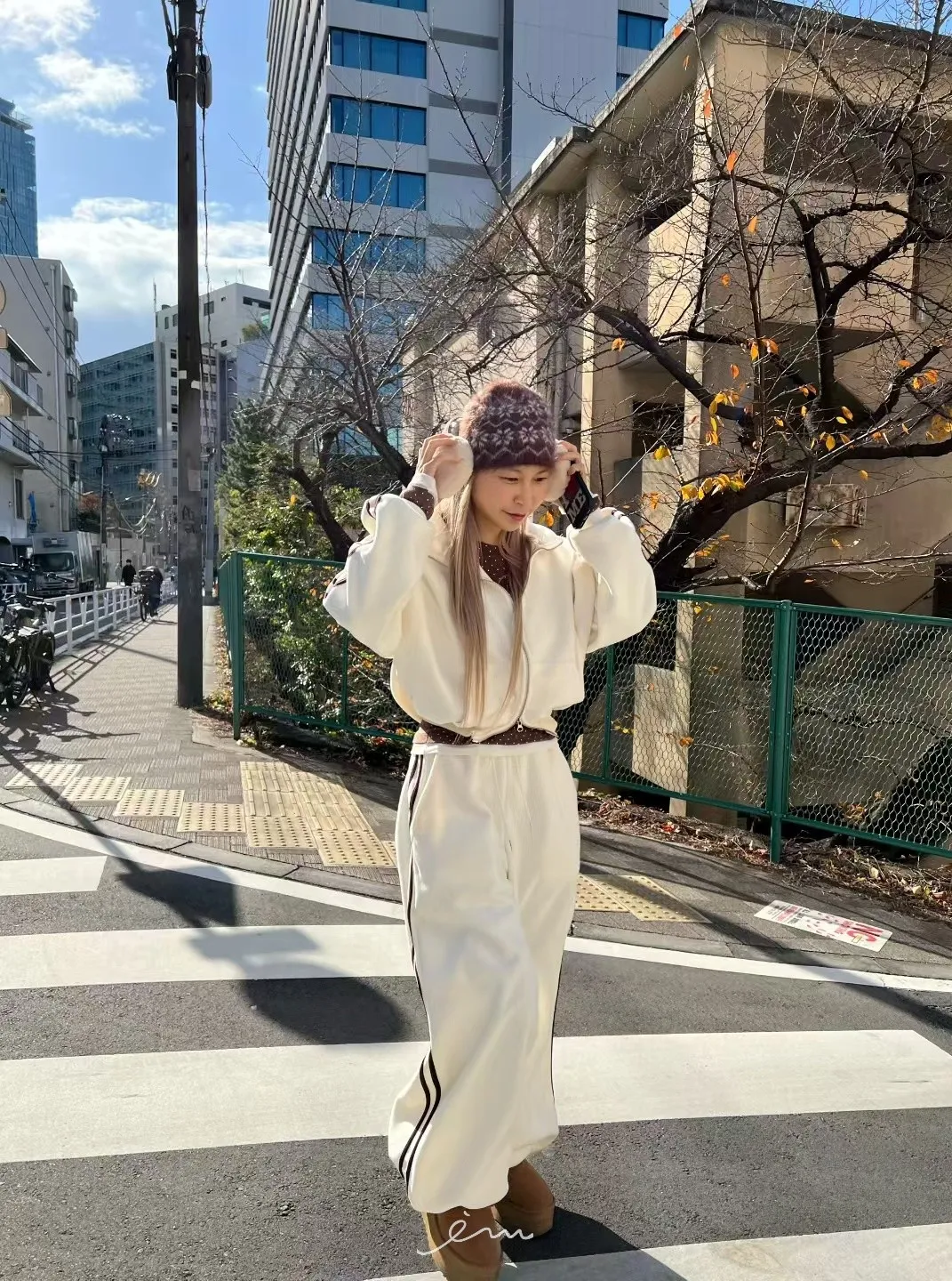 IF搖粒絨側線條造型休閒寬褲(肉0清單)