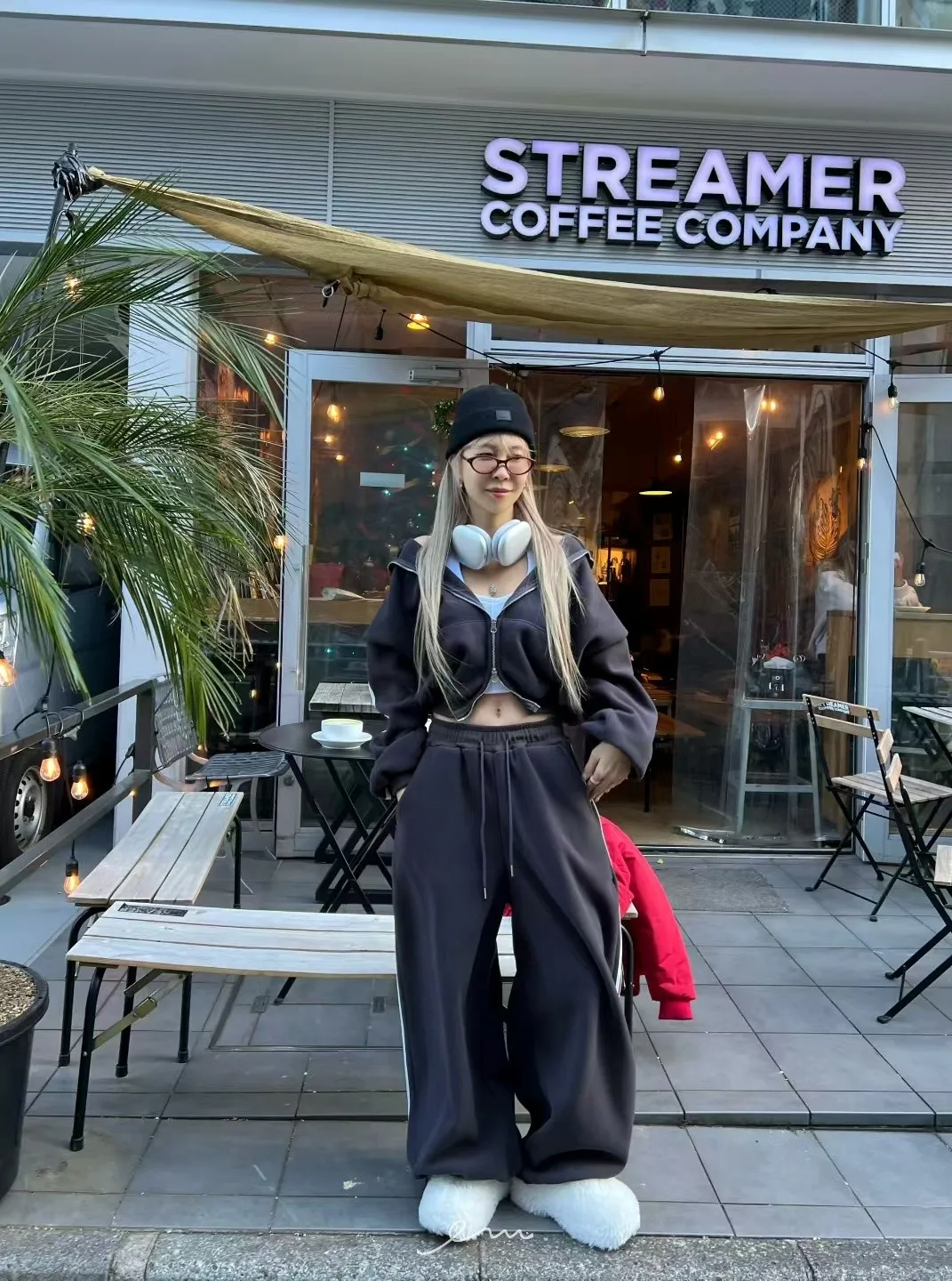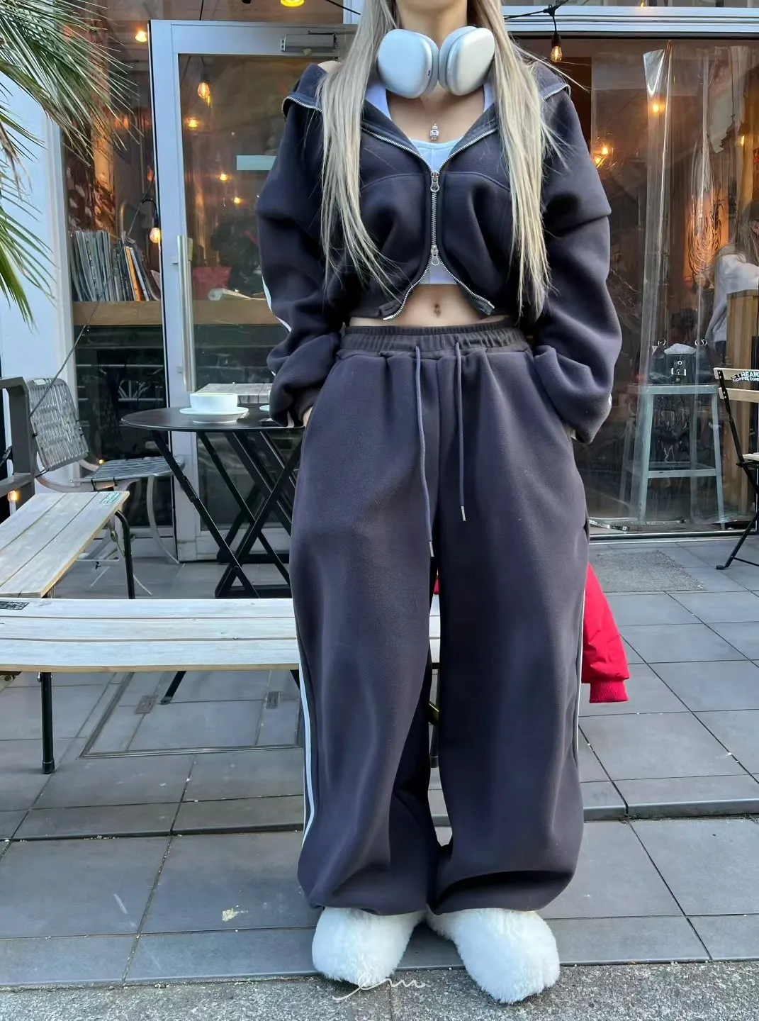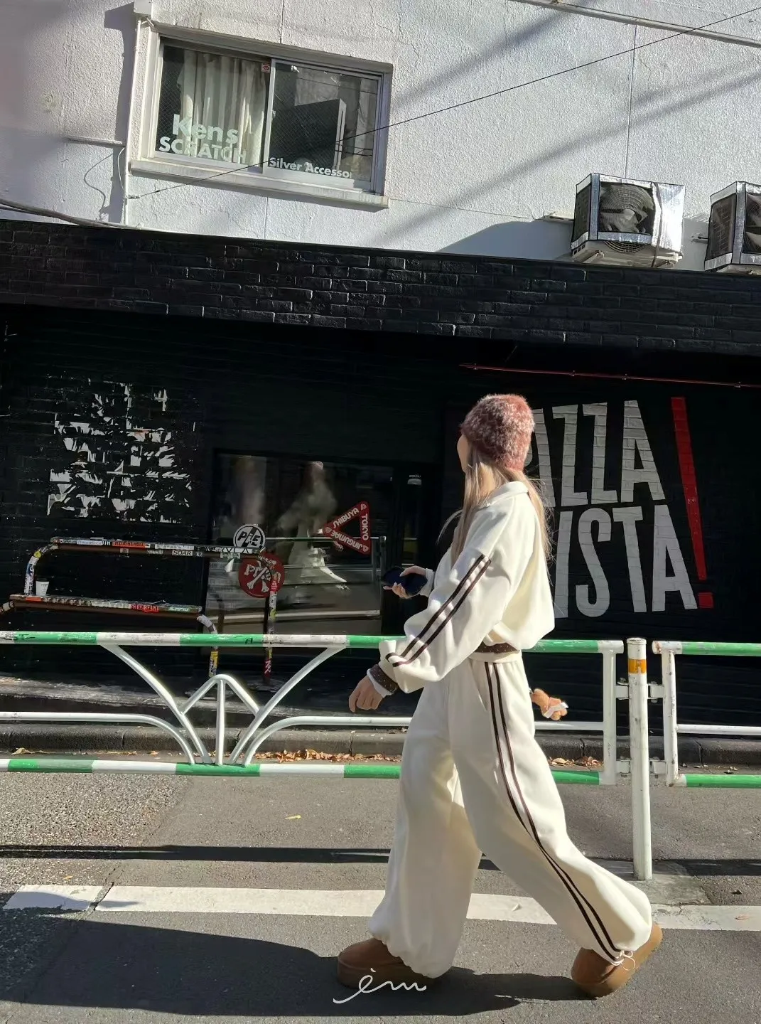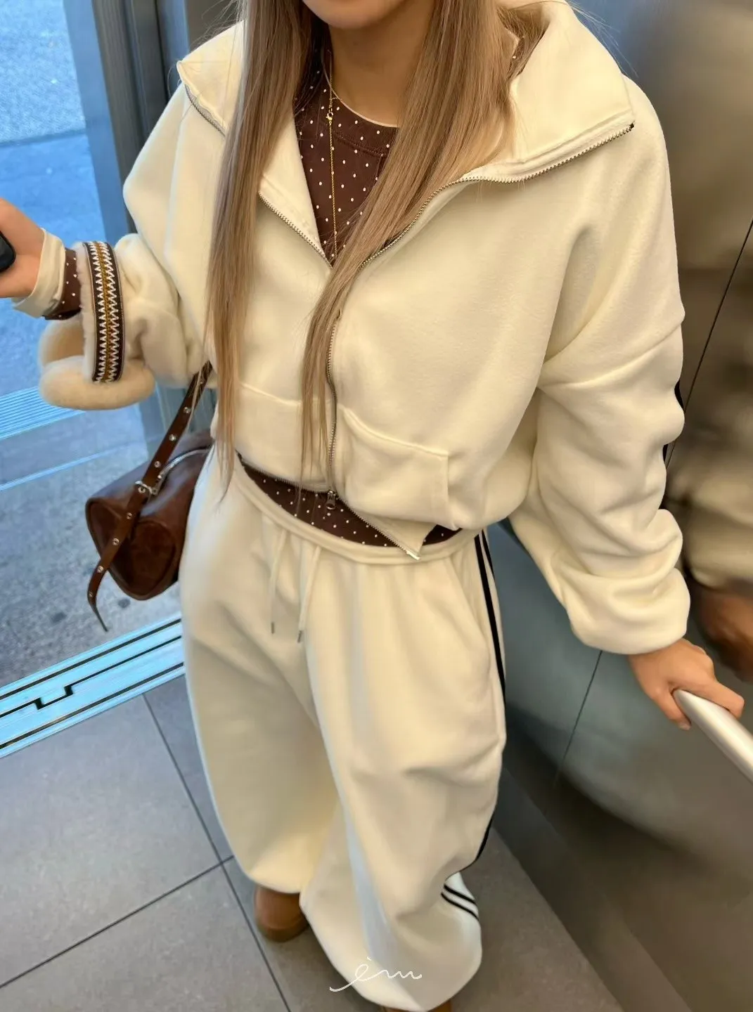 IF搖粒絨側線條造型休閒寬褲(肉0清單)
