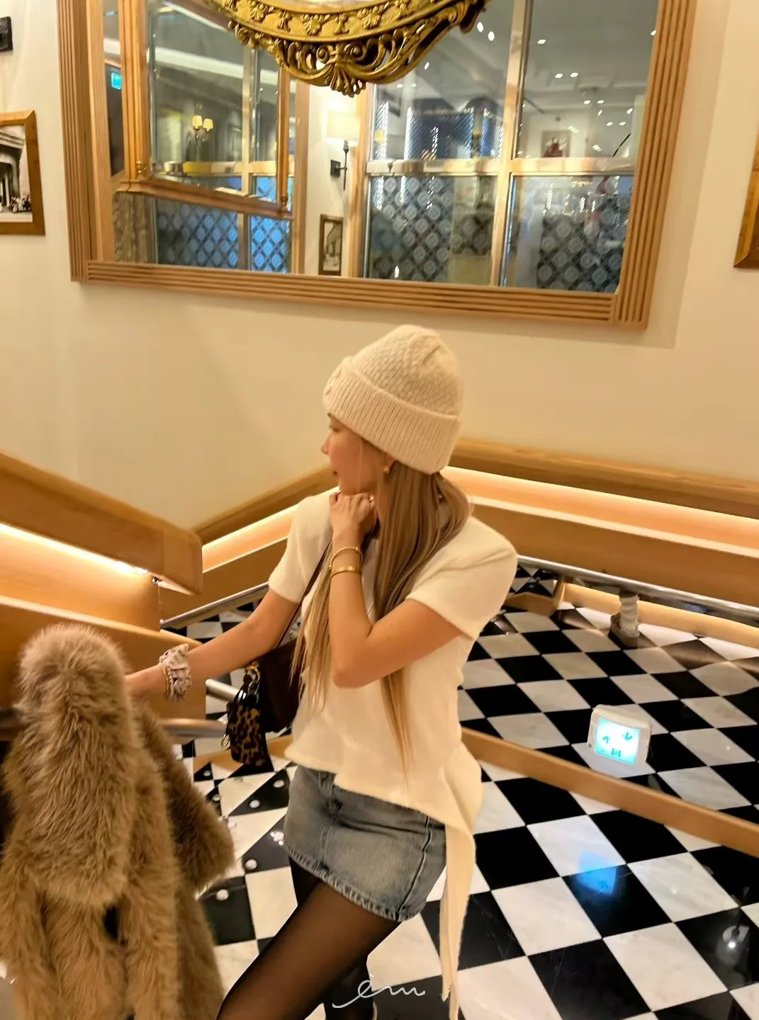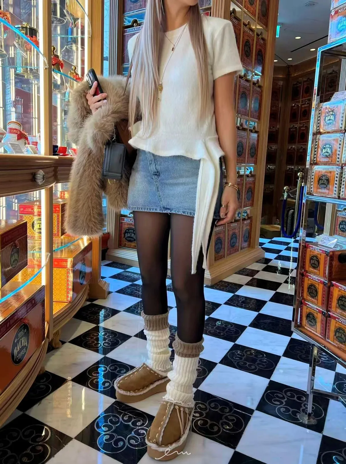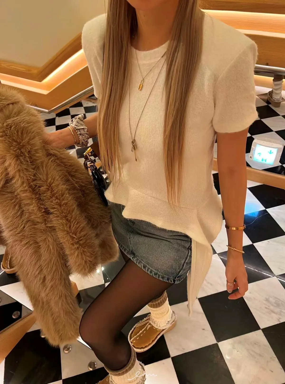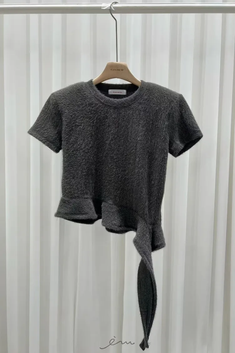 IF荷葉下擺造型毛感短袖上衣(羊毛14%)
