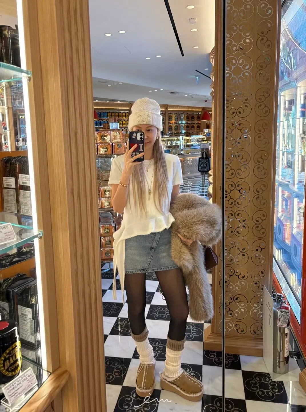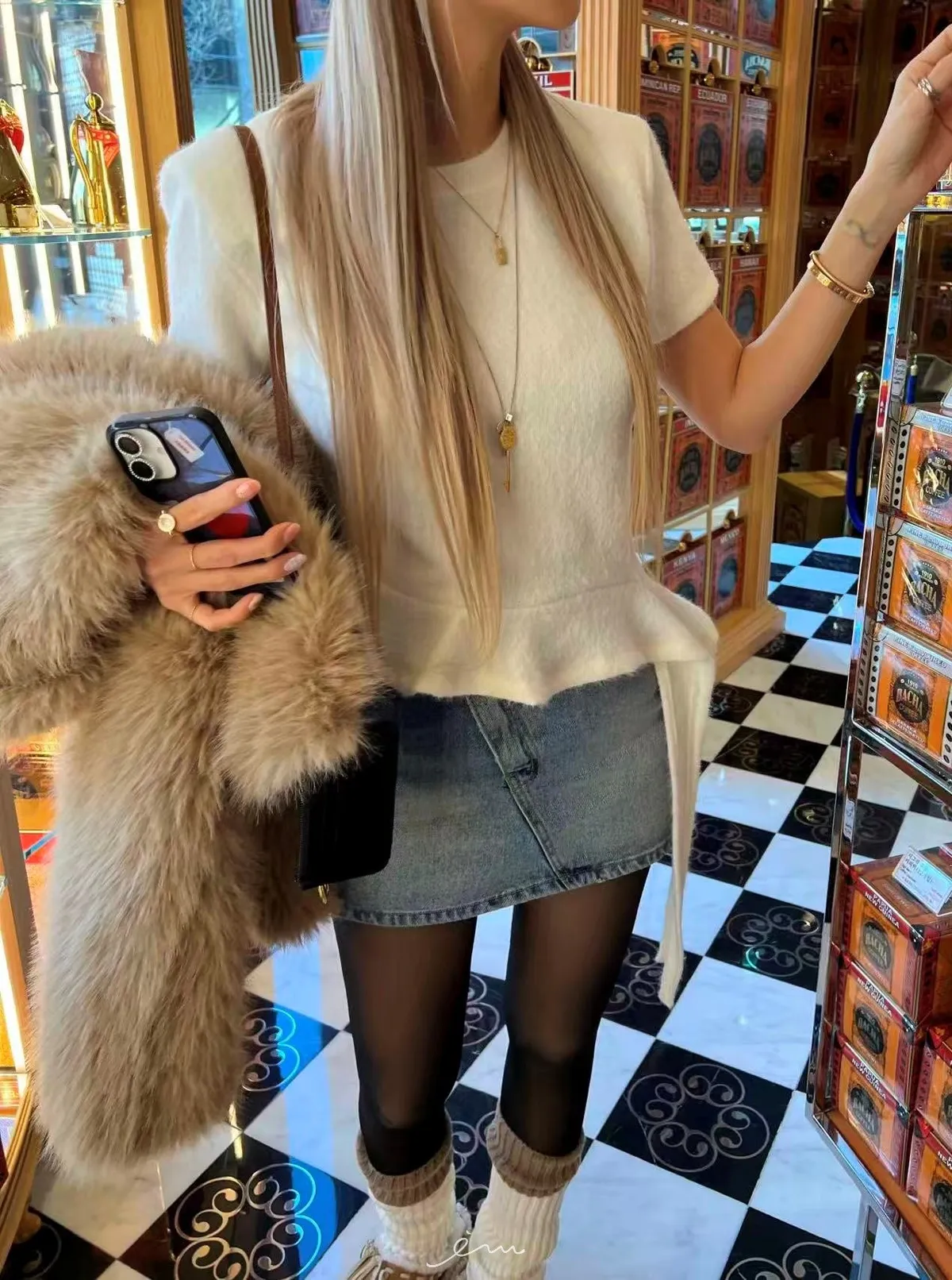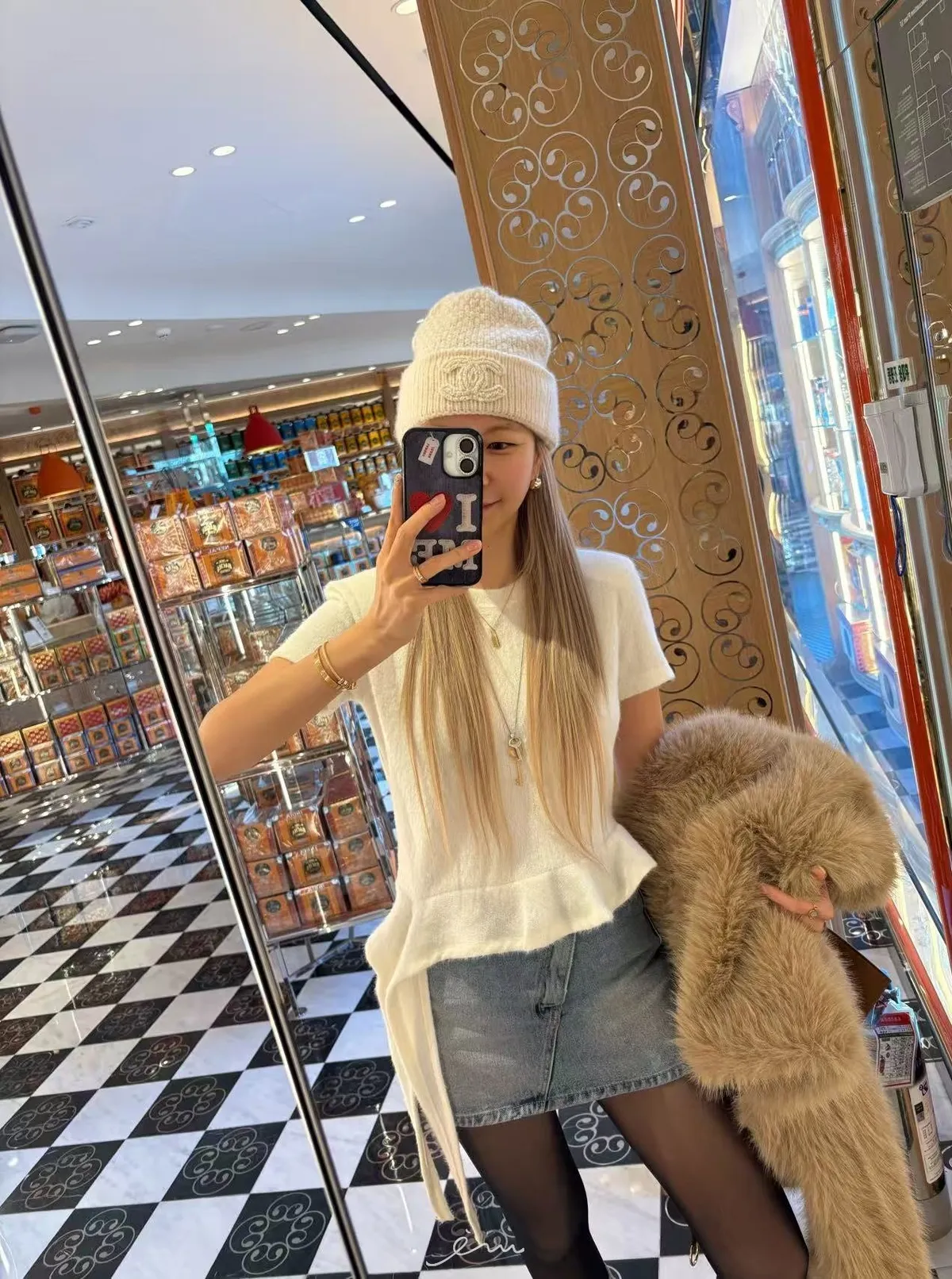 IF荷葉下擺造型毛感短袖上衣(羊毛14%)
