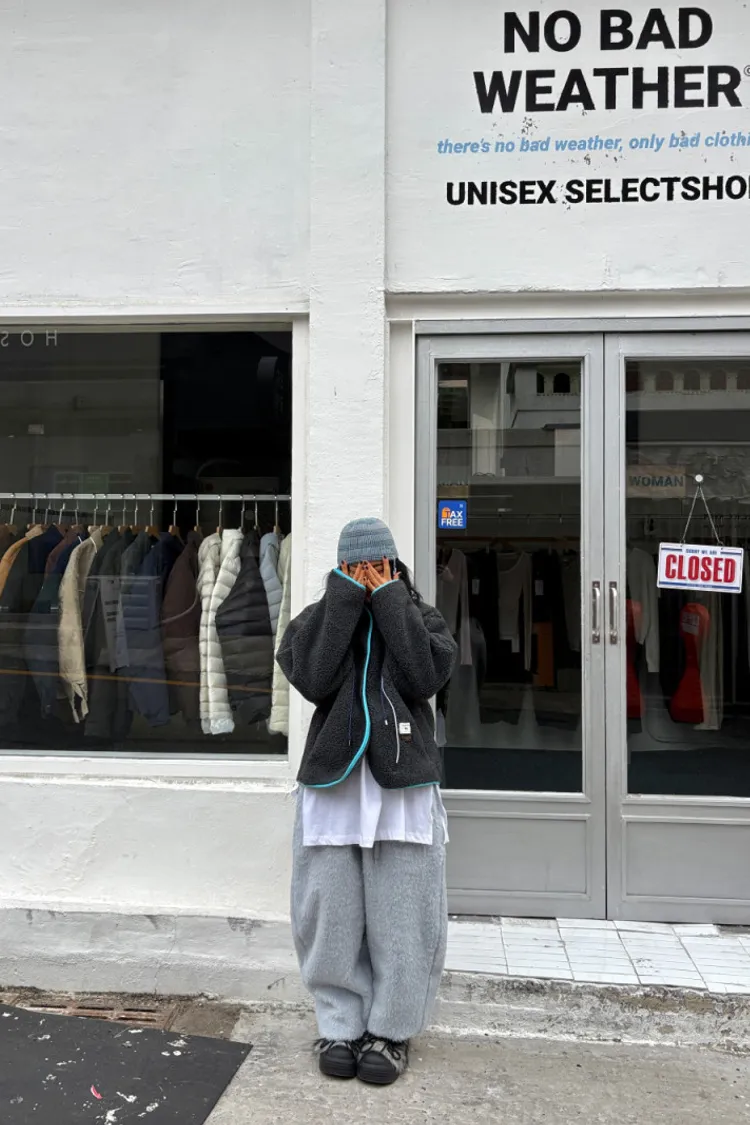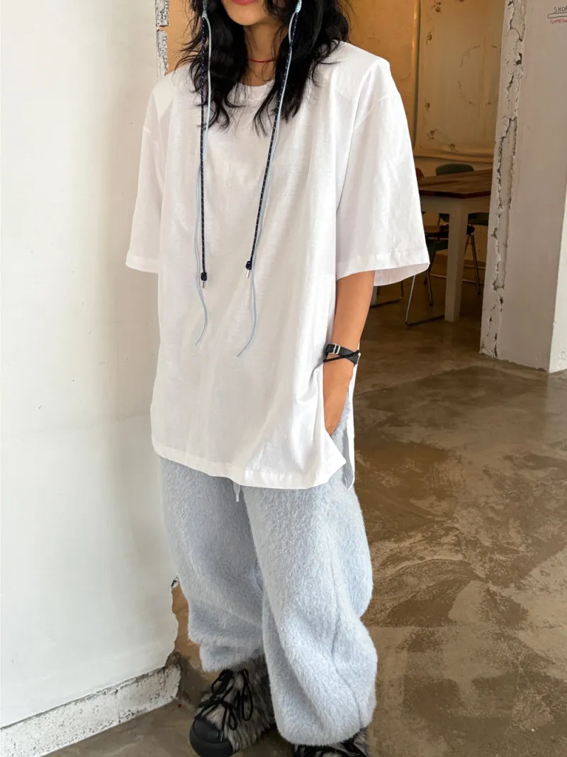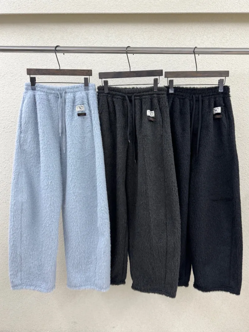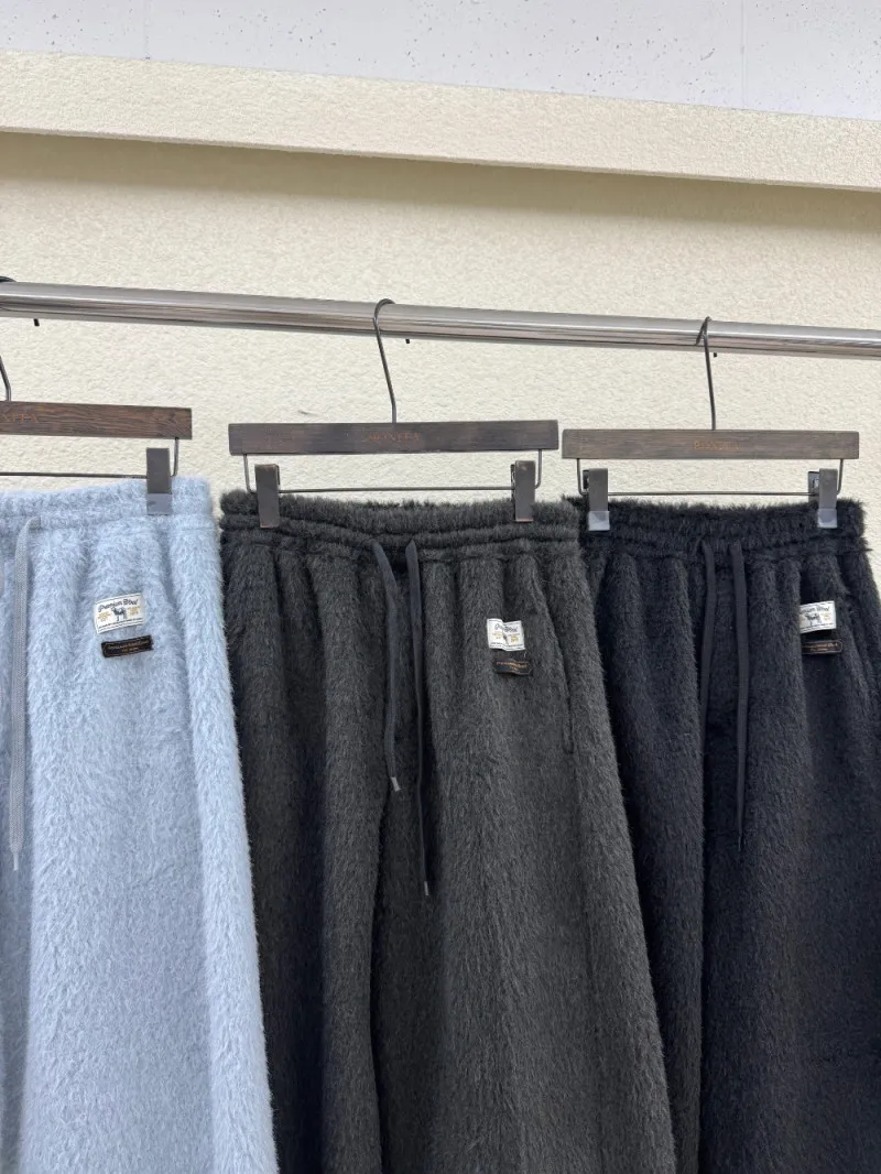 毛感抽繩縮口小標長褲