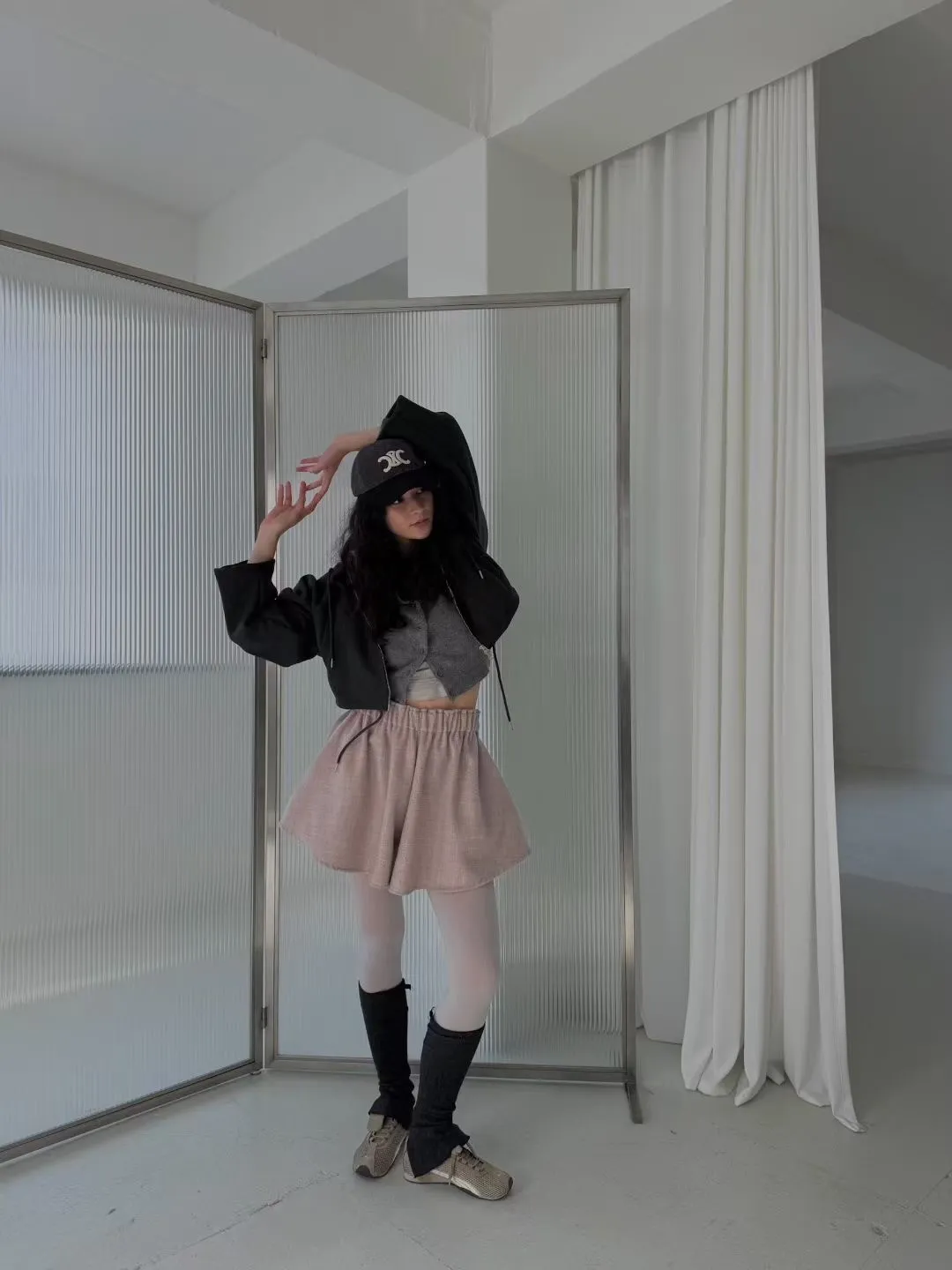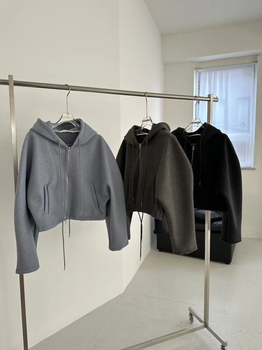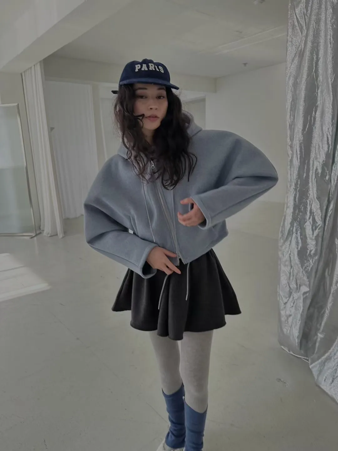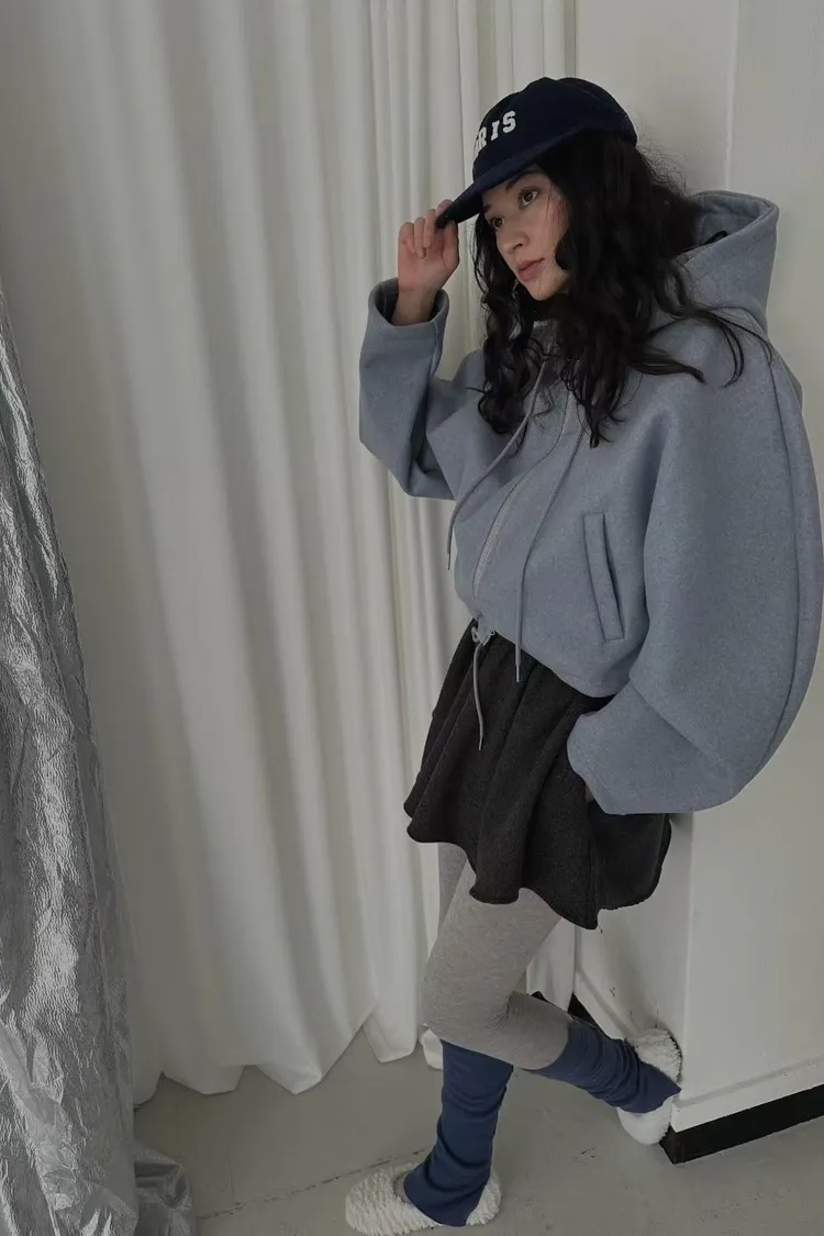 雙拉鍊澎澎袖連帽外套
