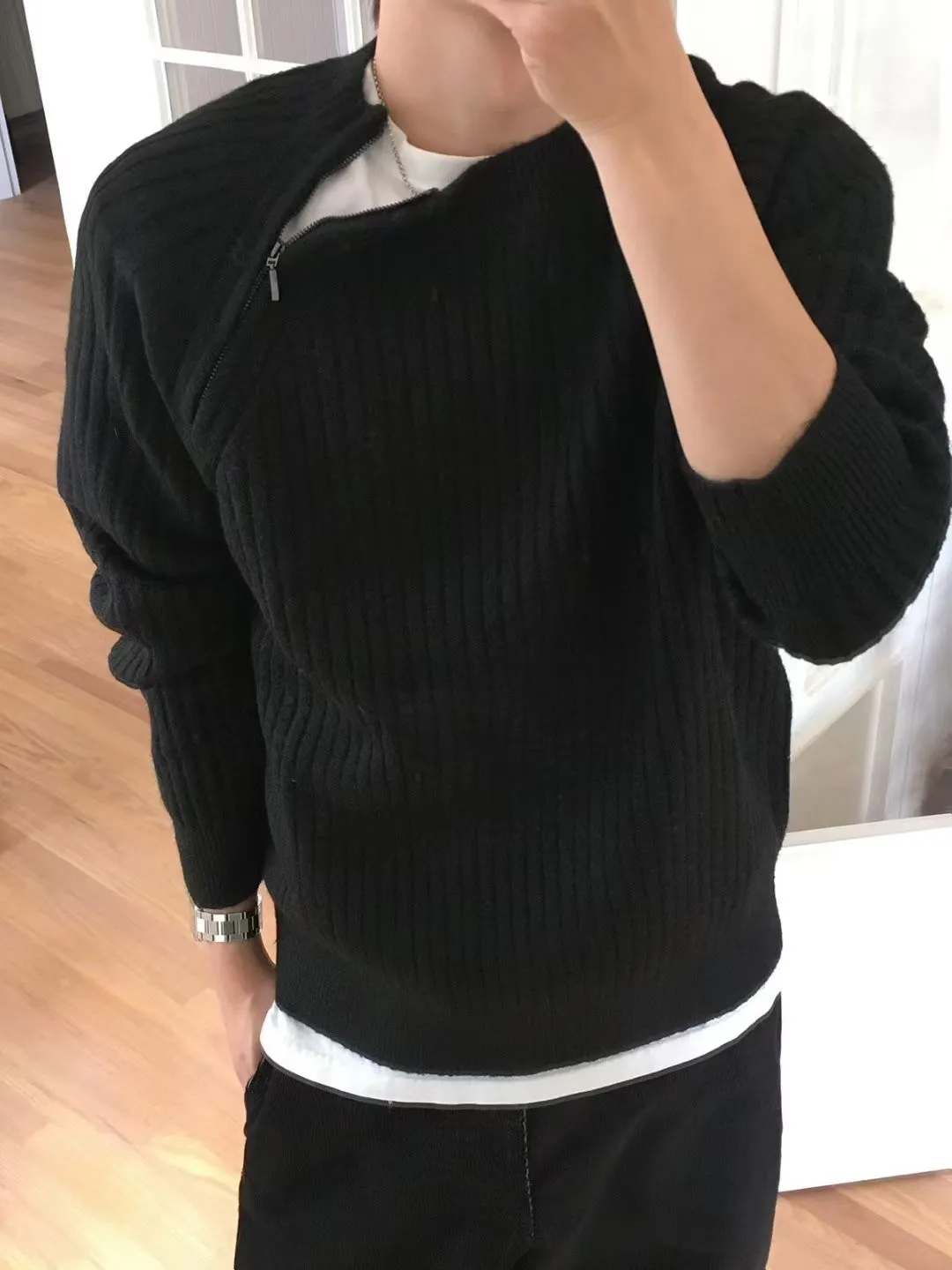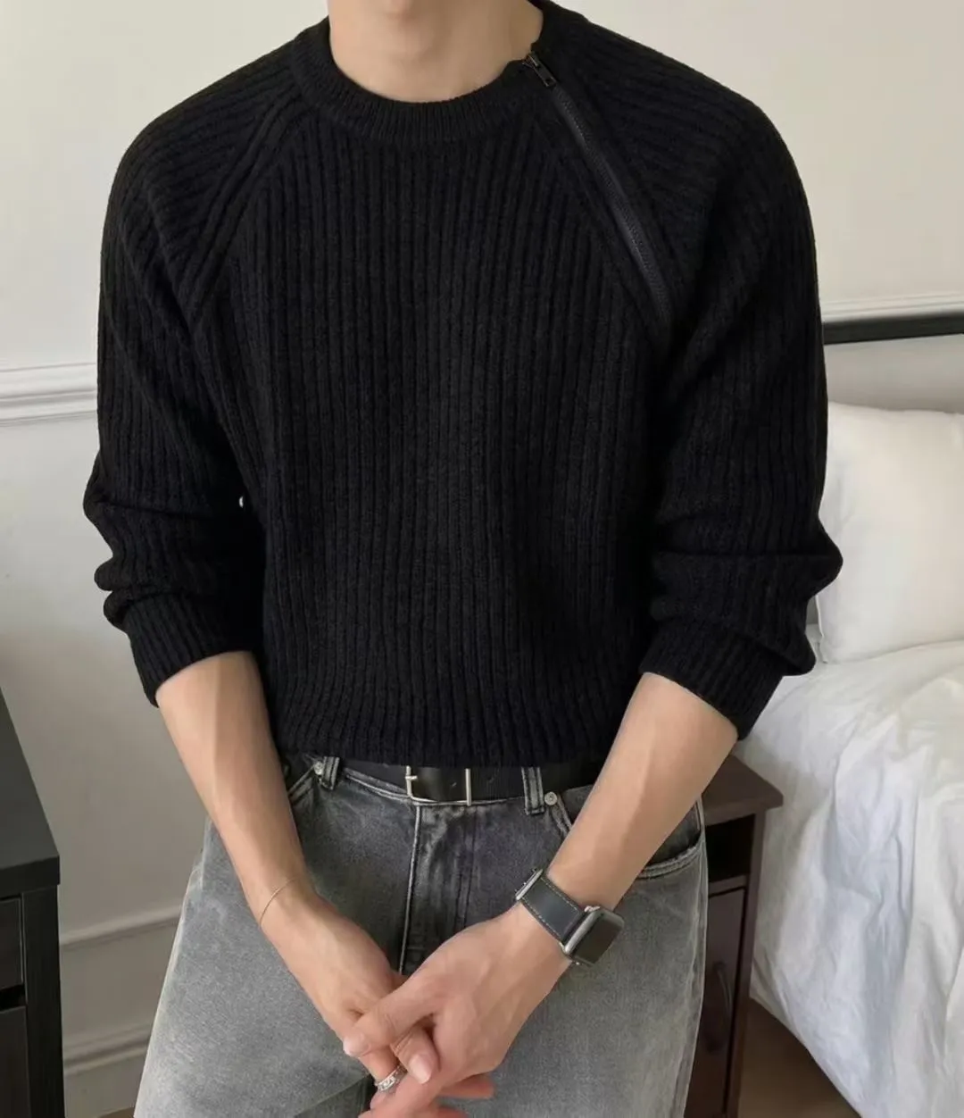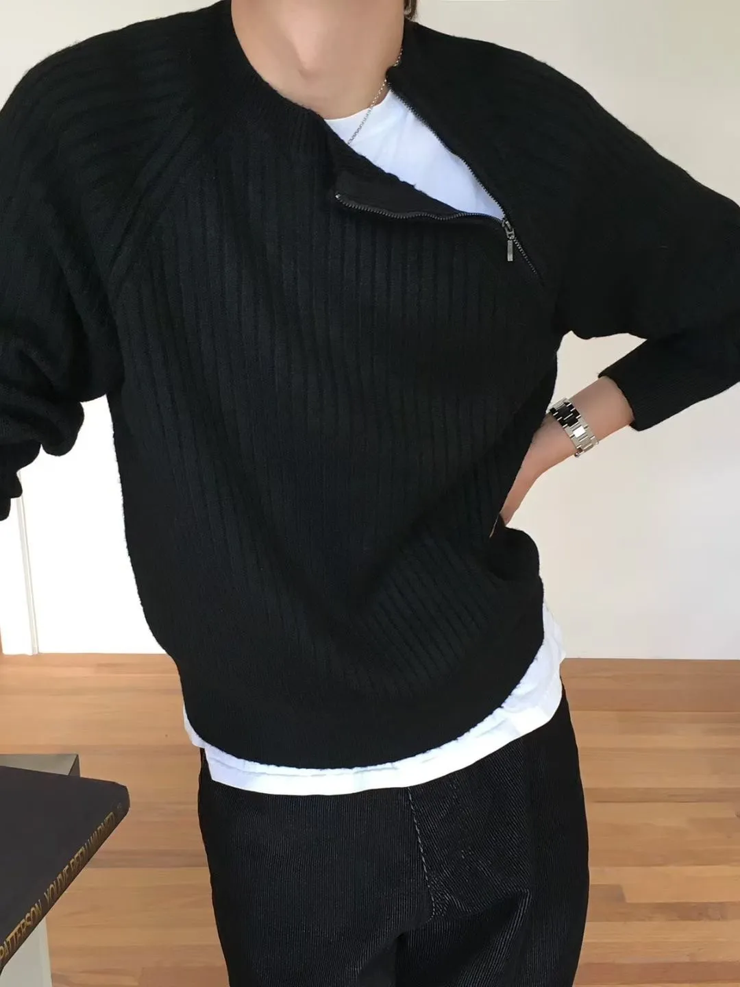 側拉鍊造型直壓紋上衣(男裝)