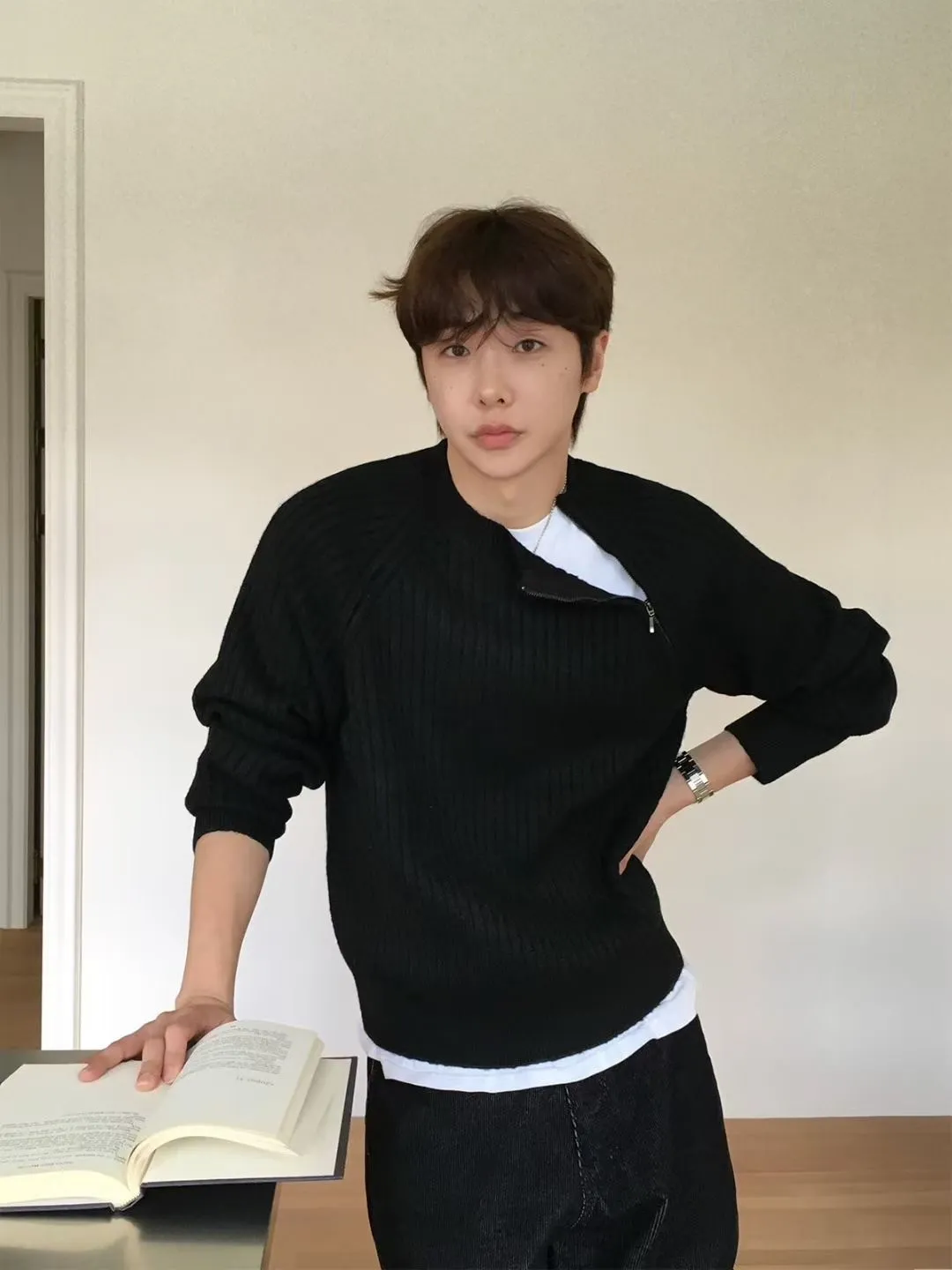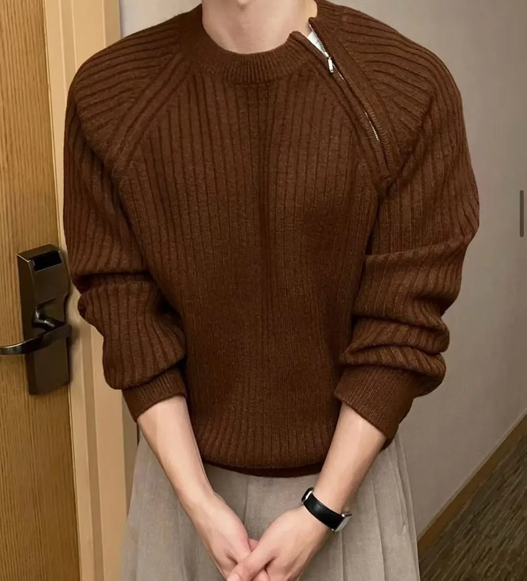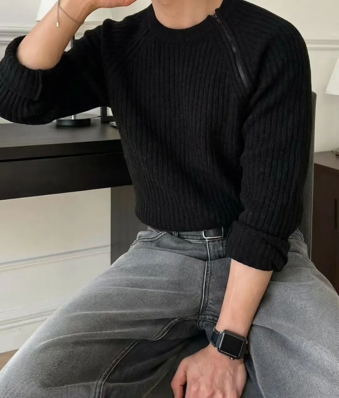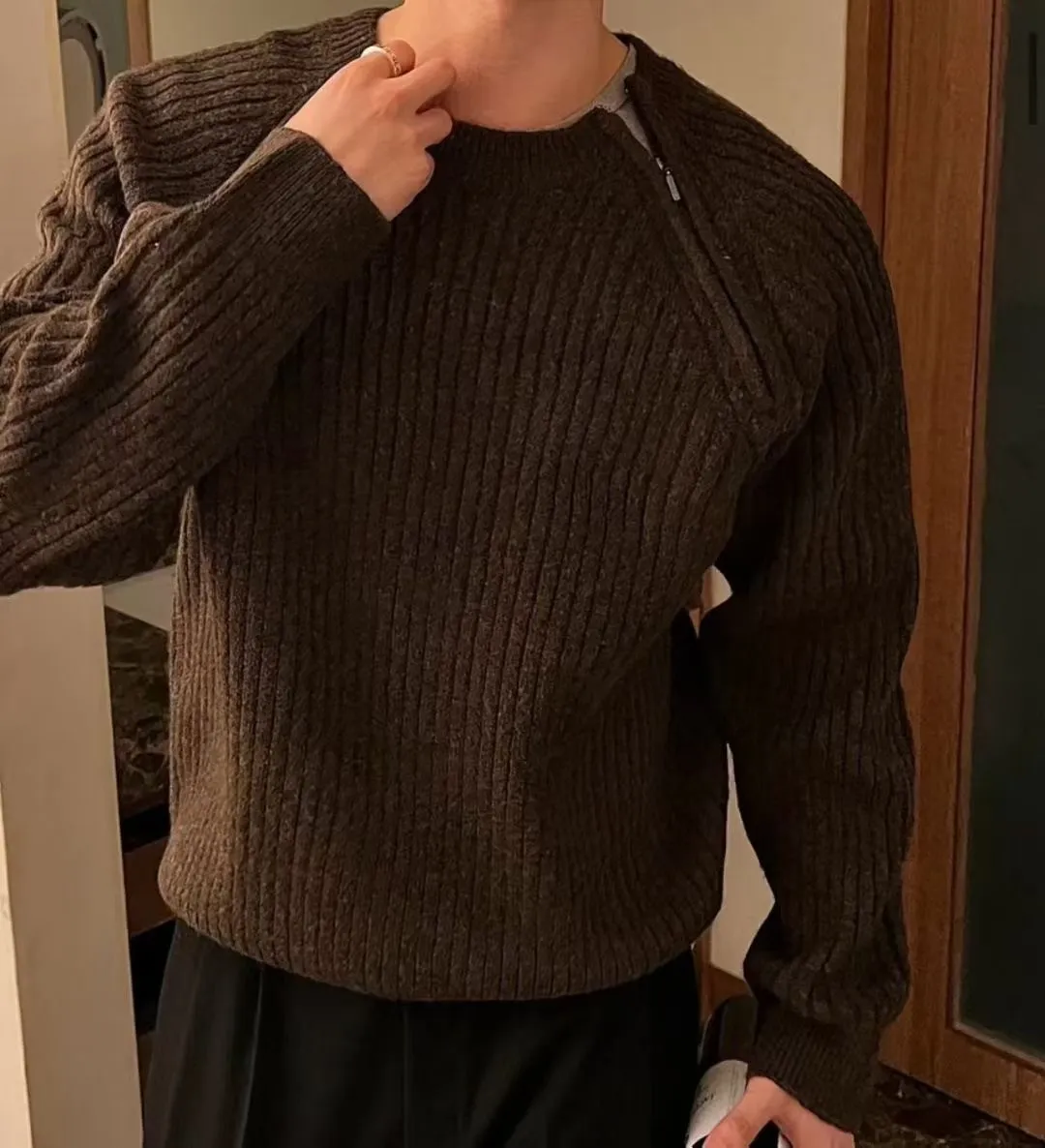 側拉鍊造型直壓紋上衣(男裝)