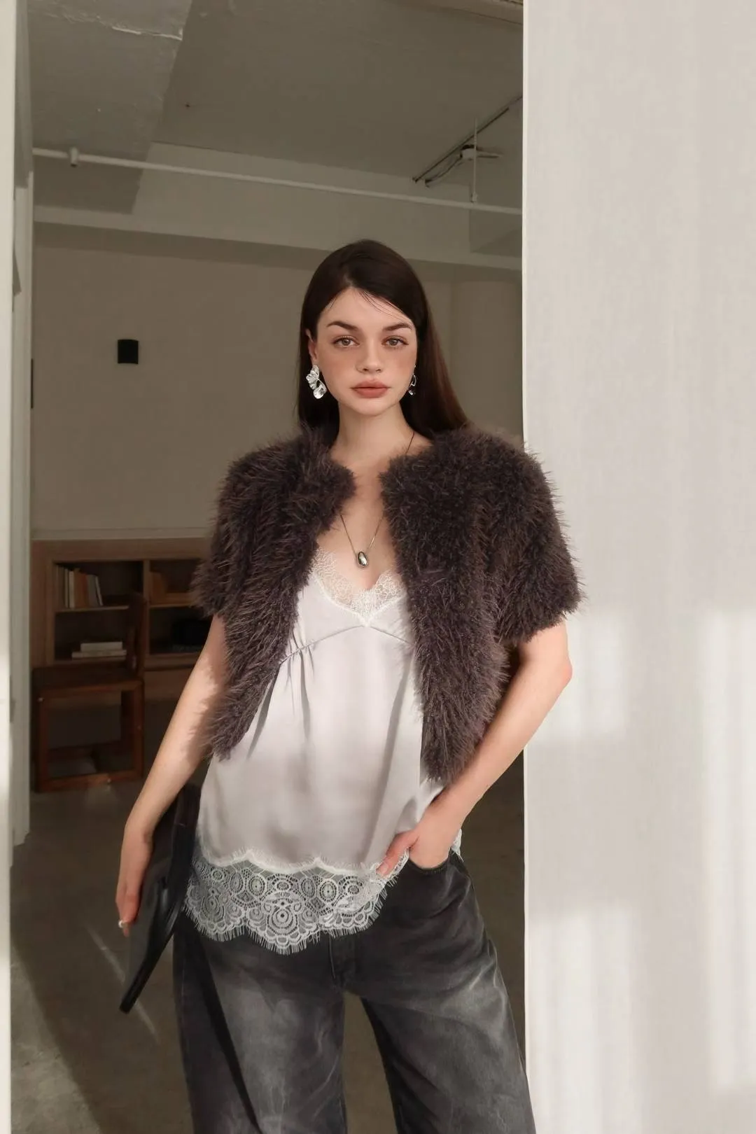 毛毛兩穿短袖外套(肉0清單)