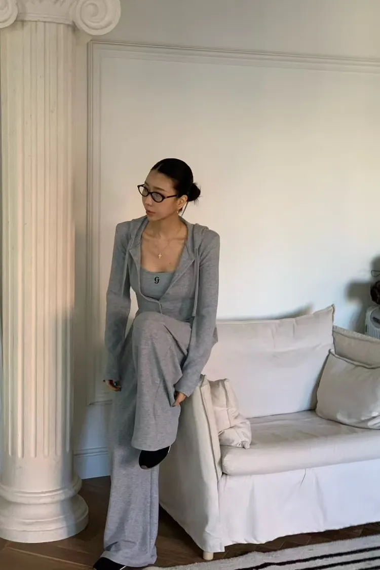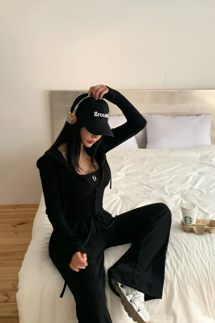 RE鈕釦下圓弧連帽外套