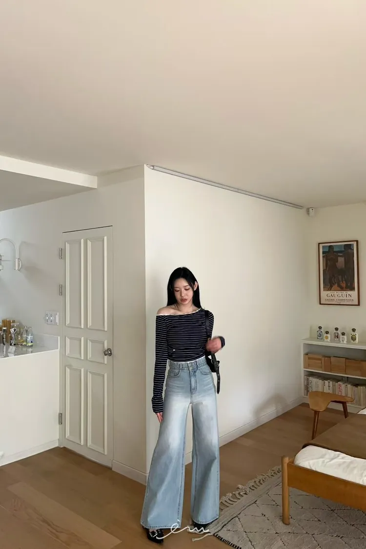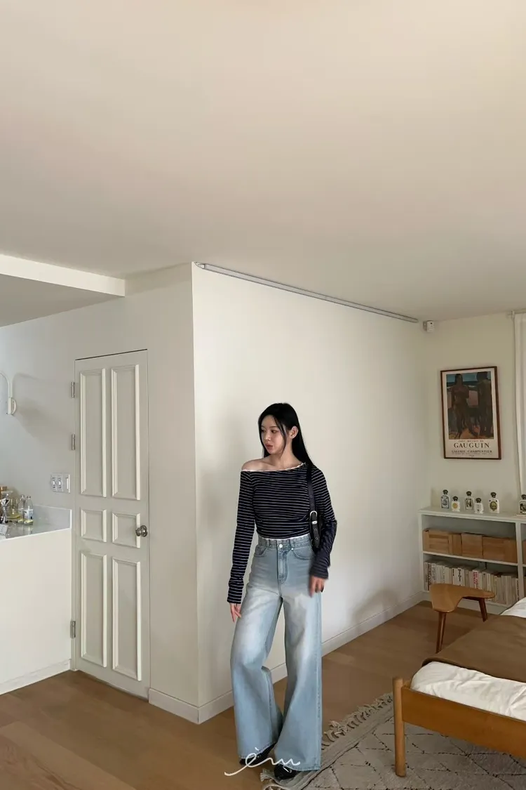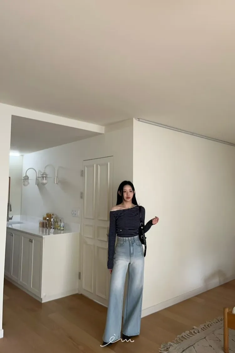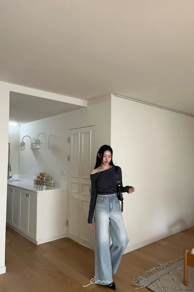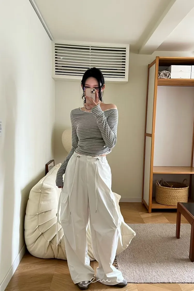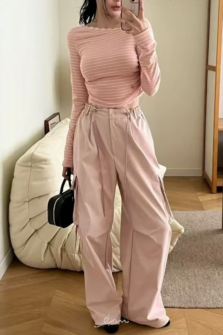BAI拼蕾絲鐵標側抓皺條紋上衣(限時優惠)