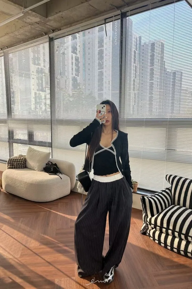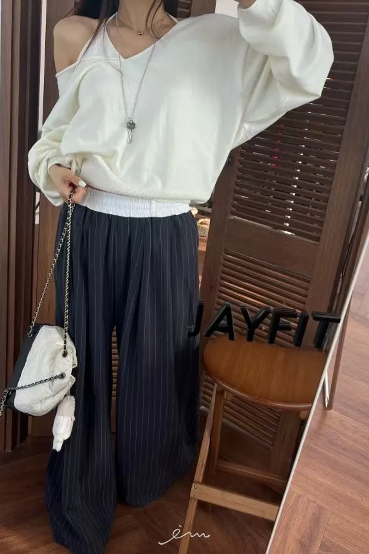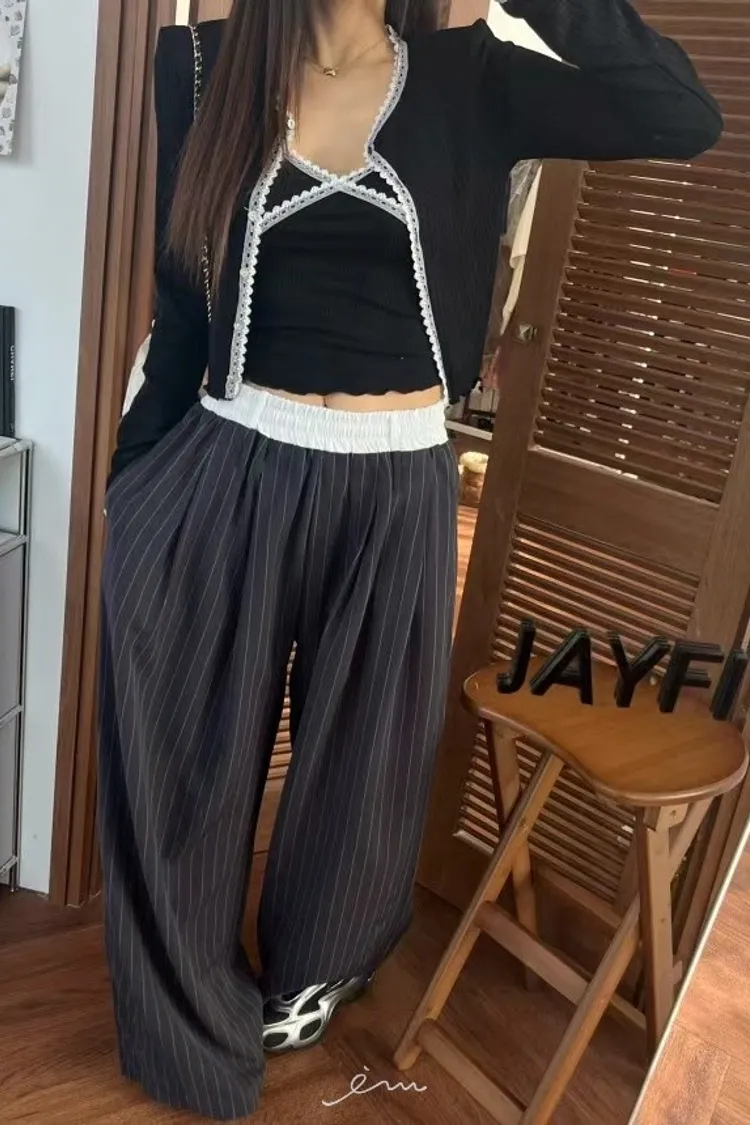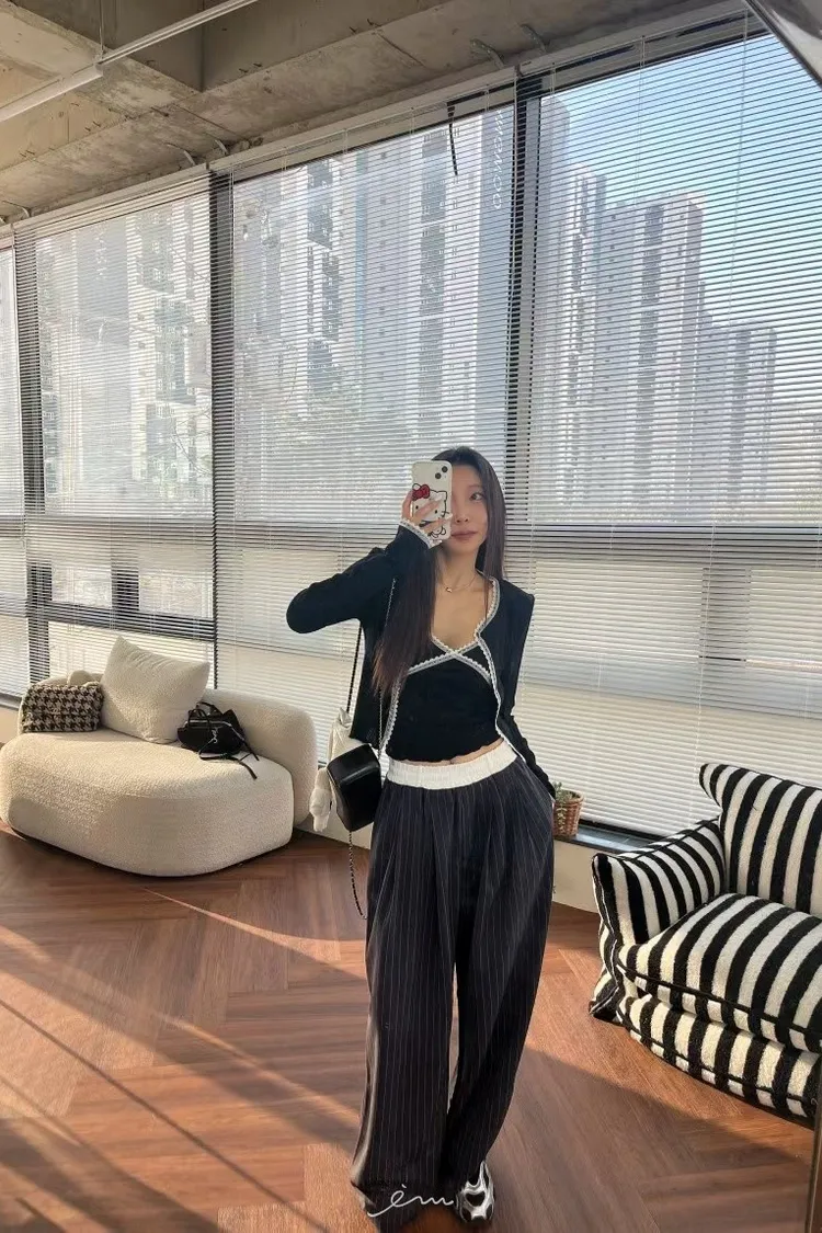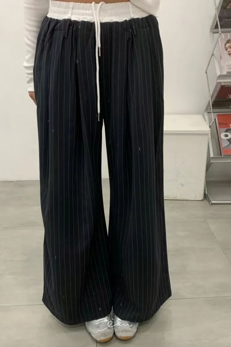 BAI白褲頭抽繩直條長褲