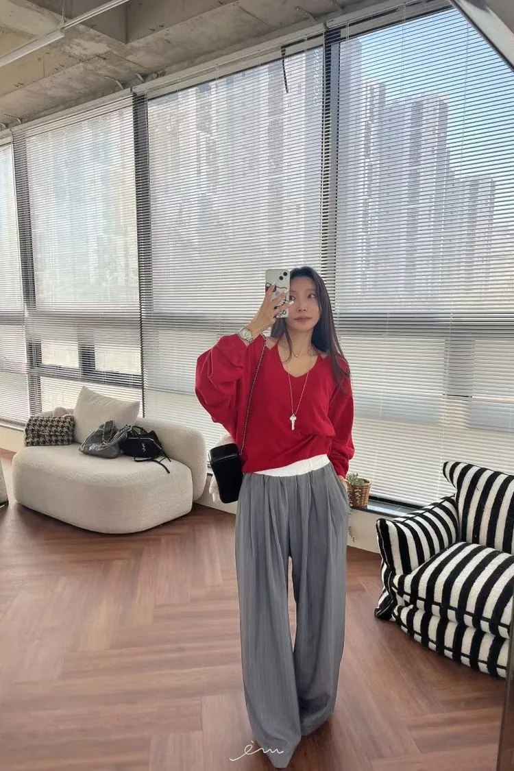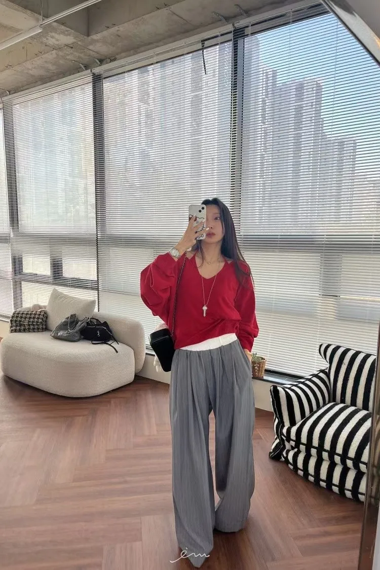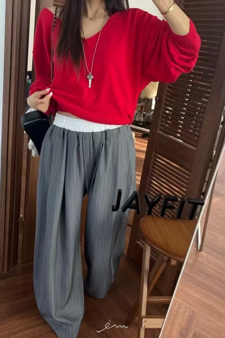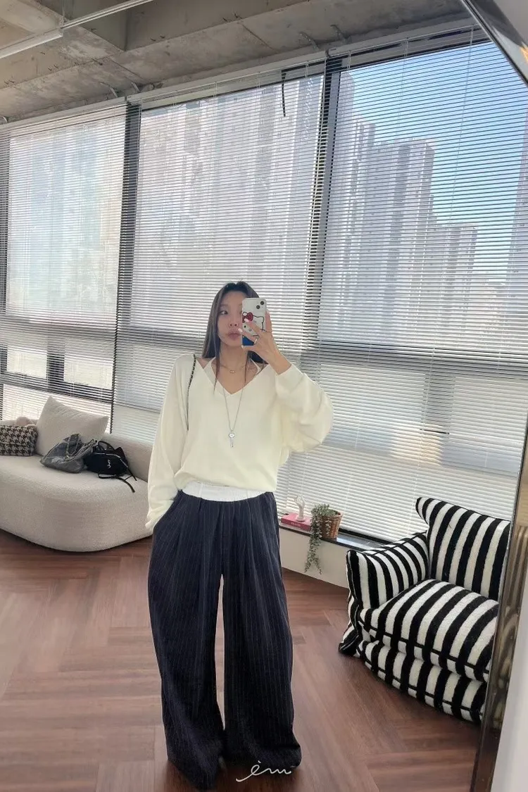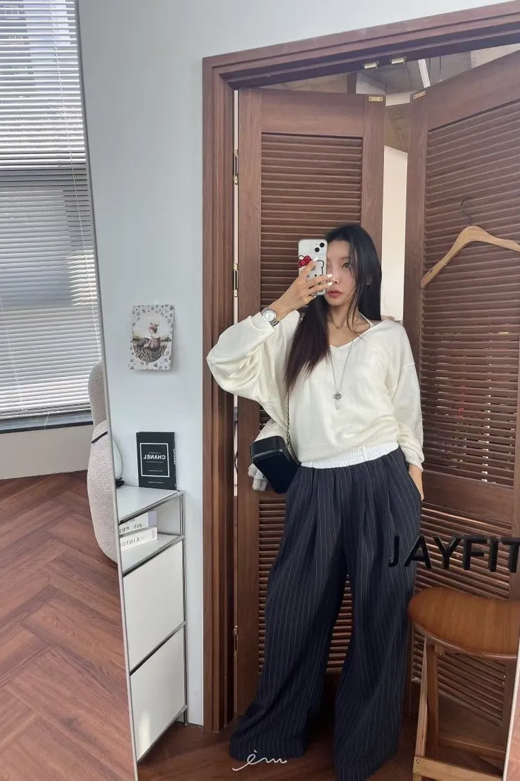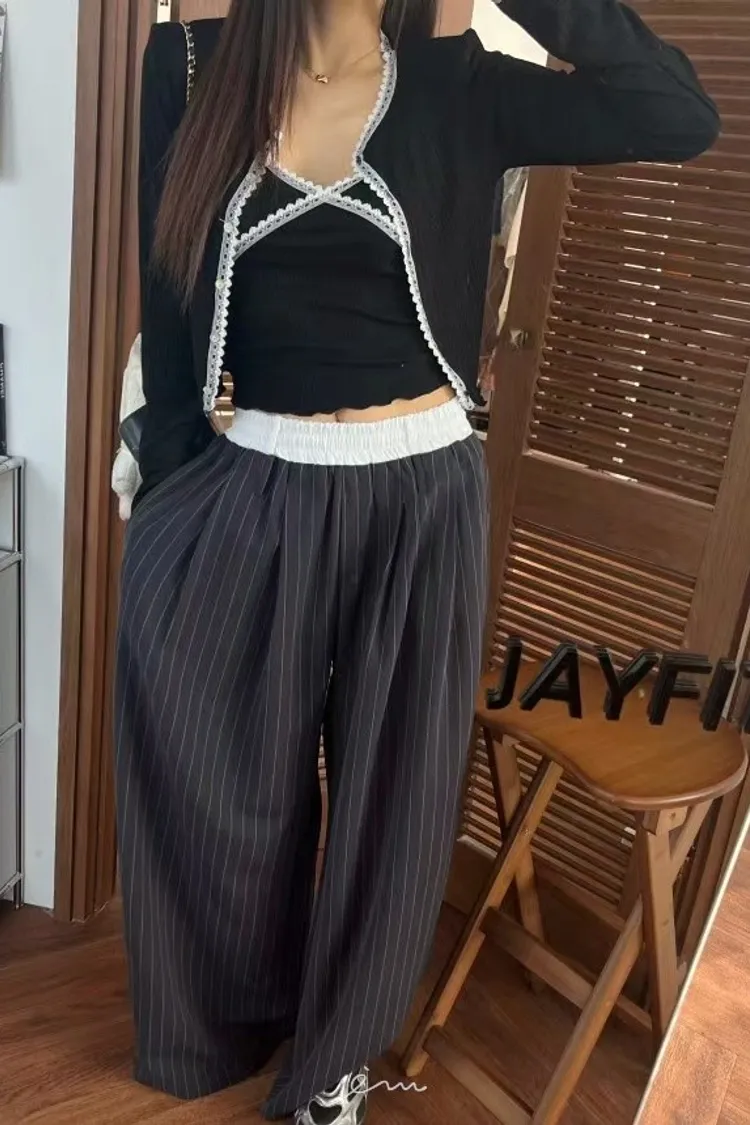 BAI白褲頭抽繩直條長褲