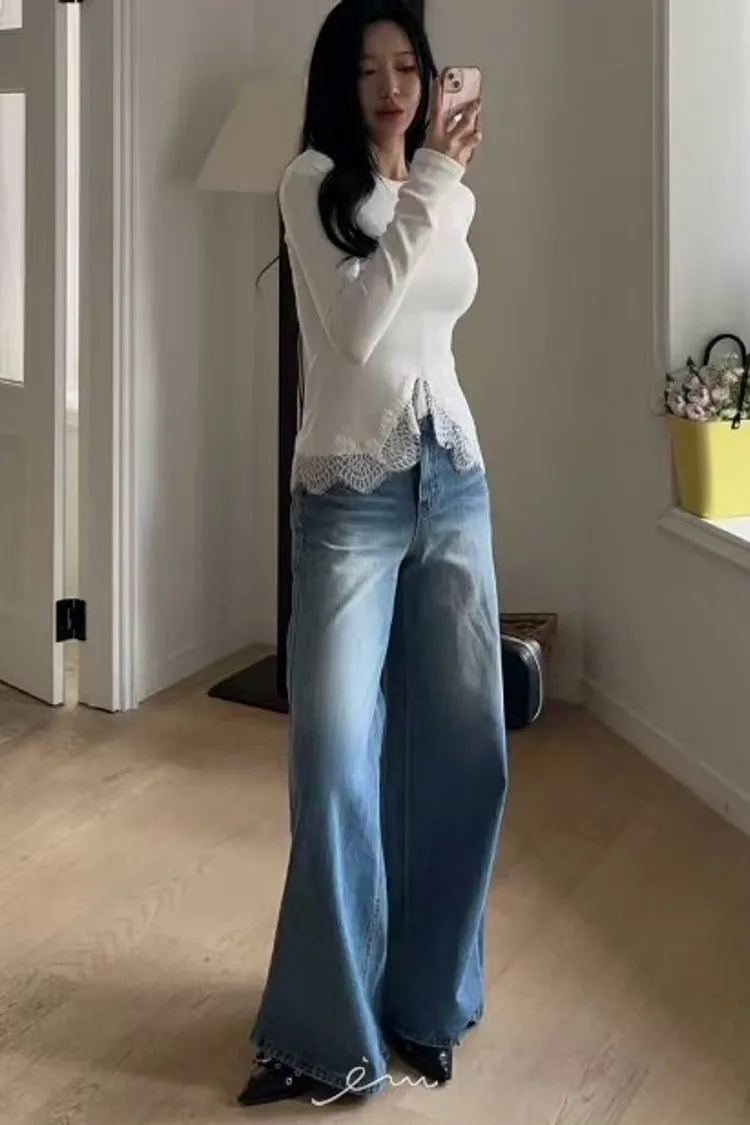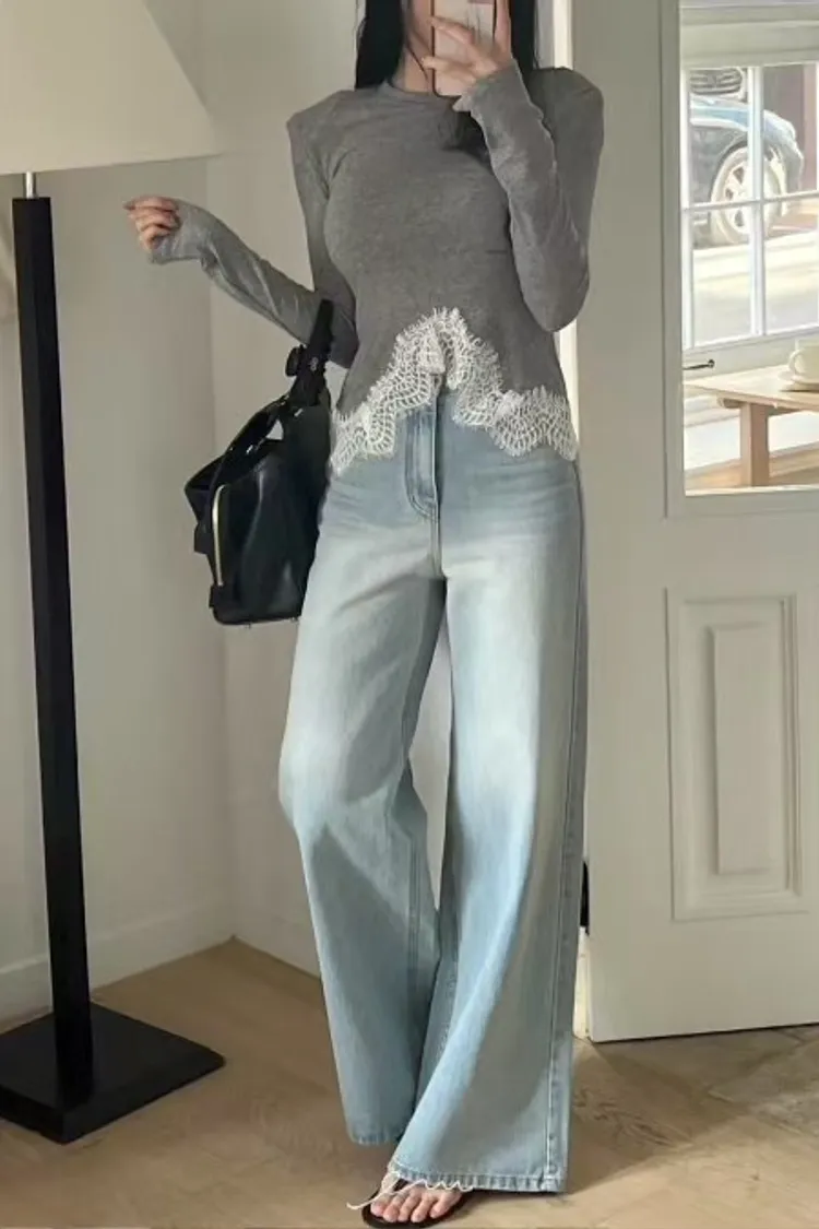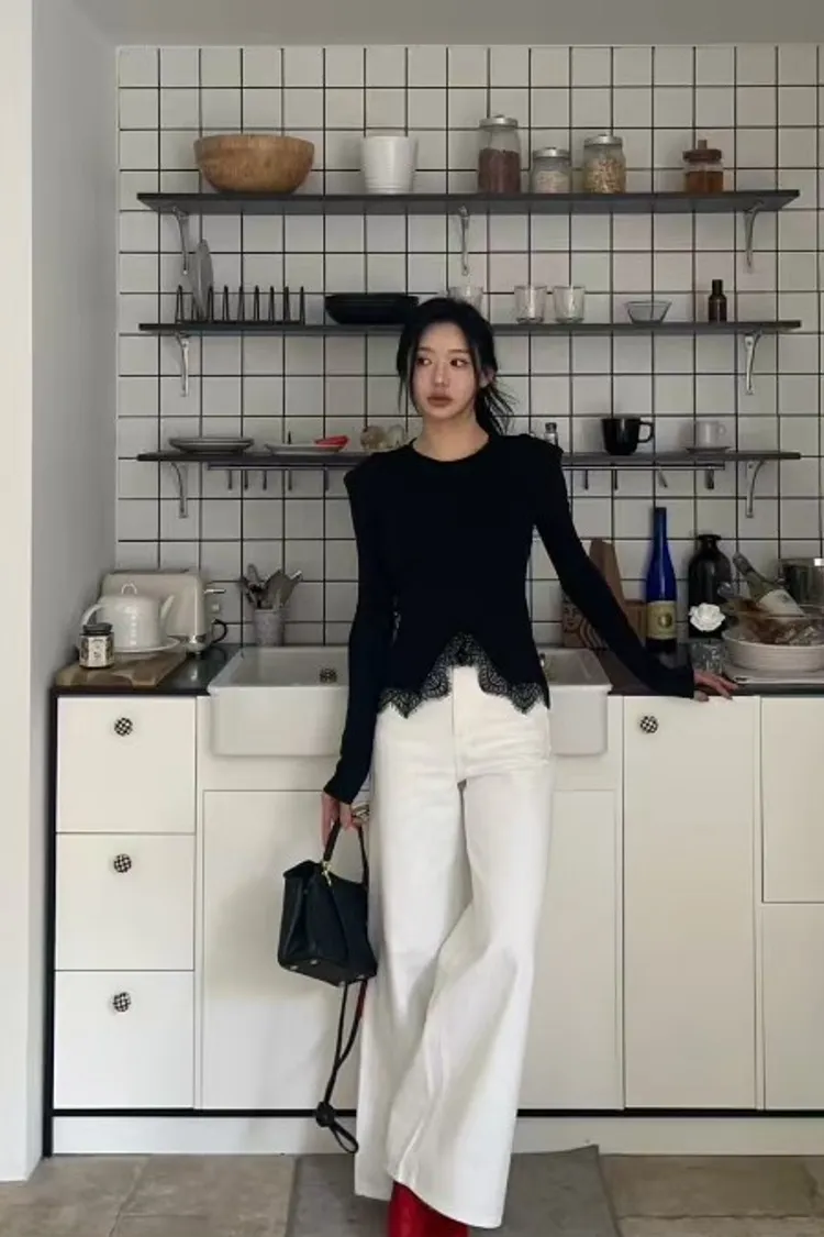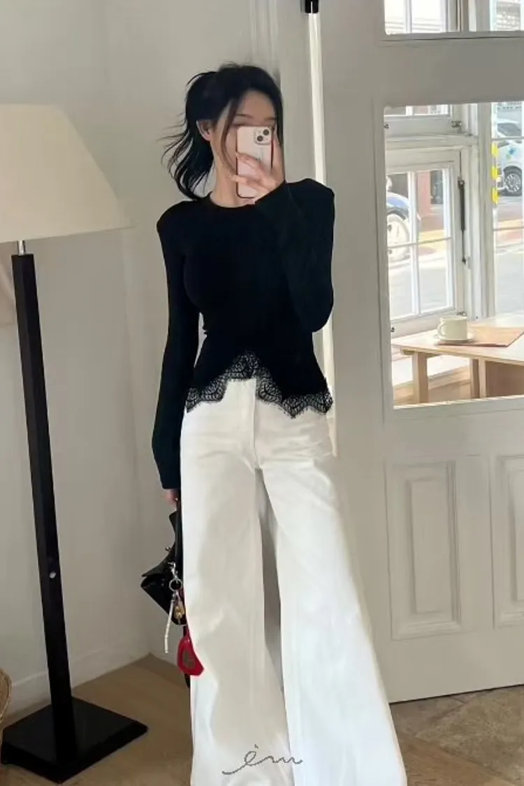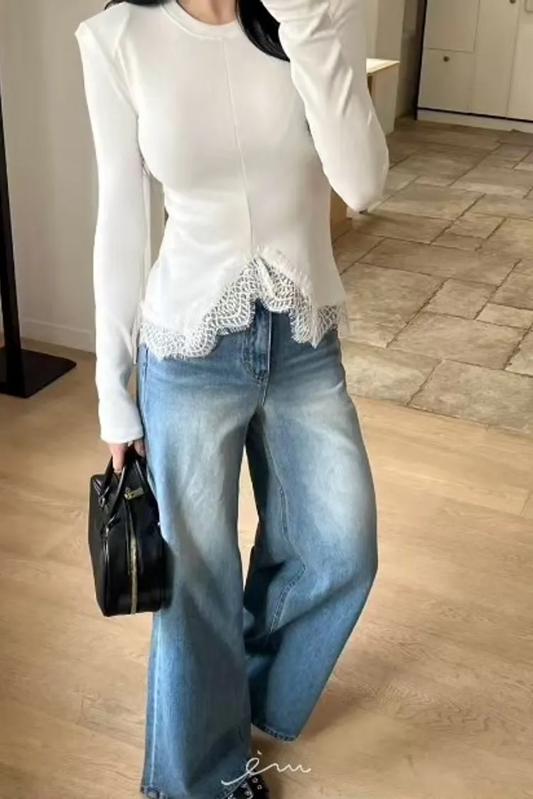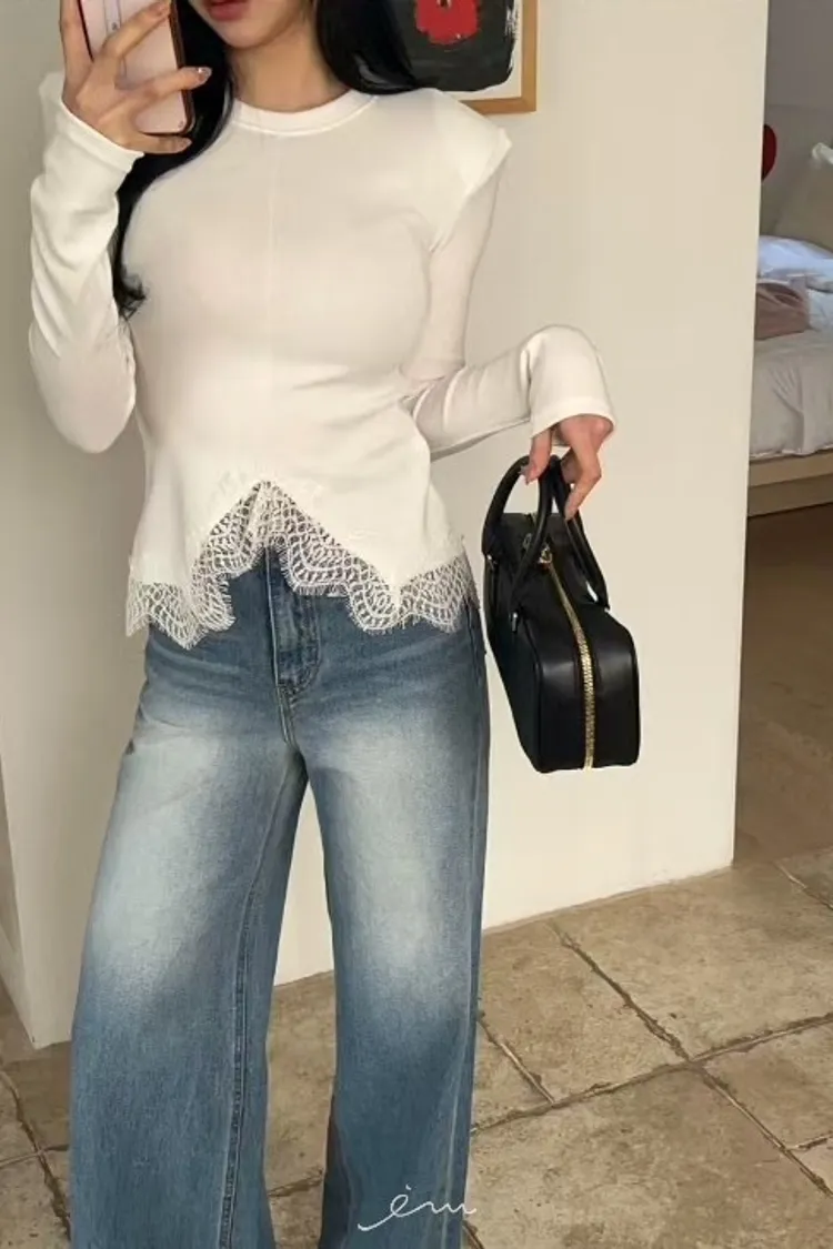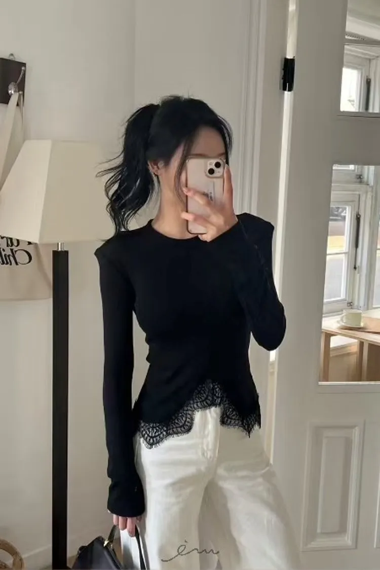 BAI下蕾絲中線墊肩上衣