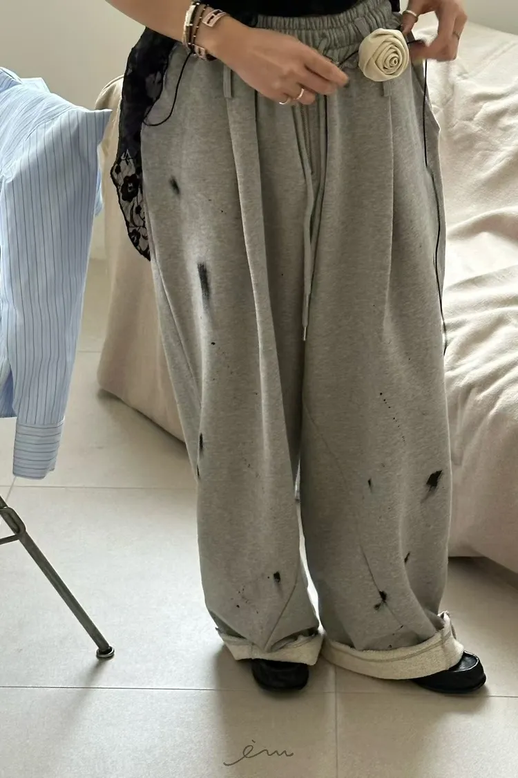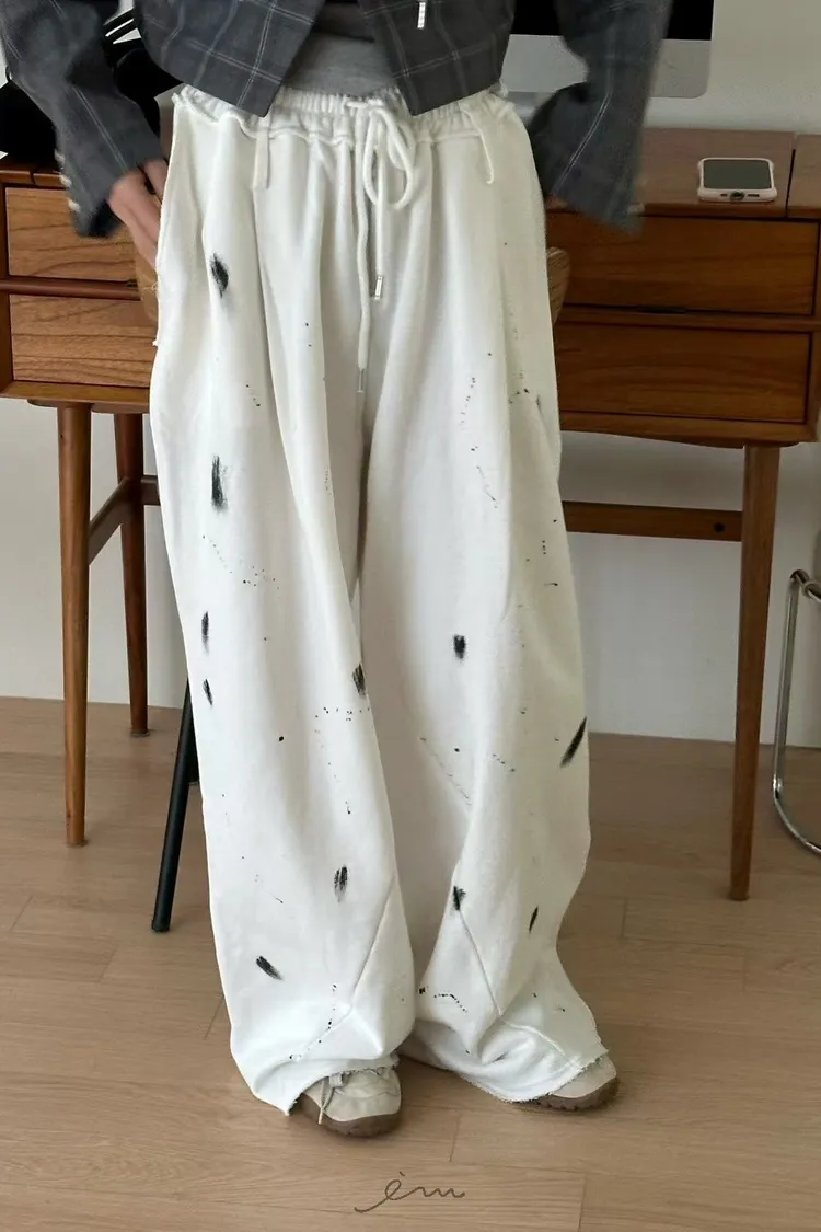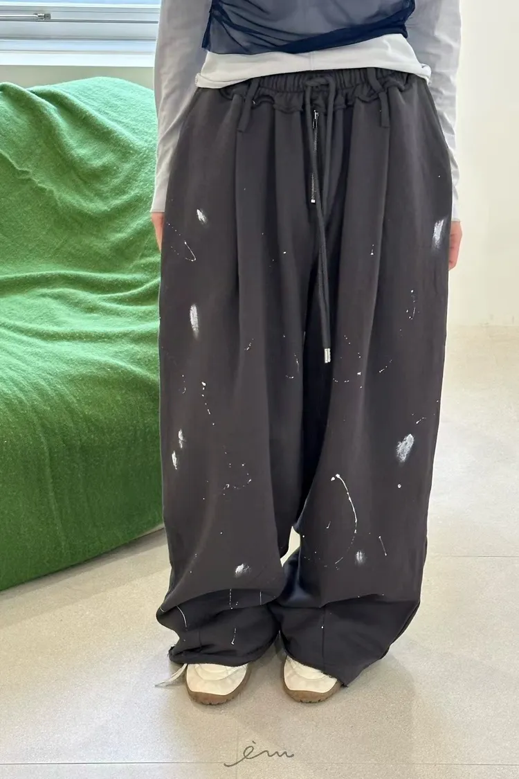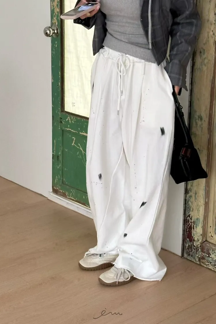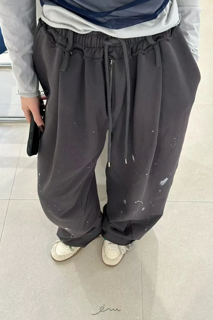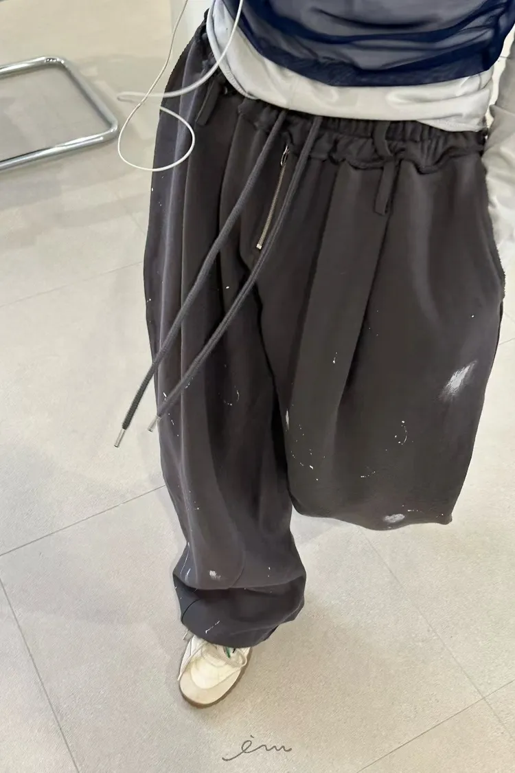 ZERO潑漆抽繩拉鍊長褲