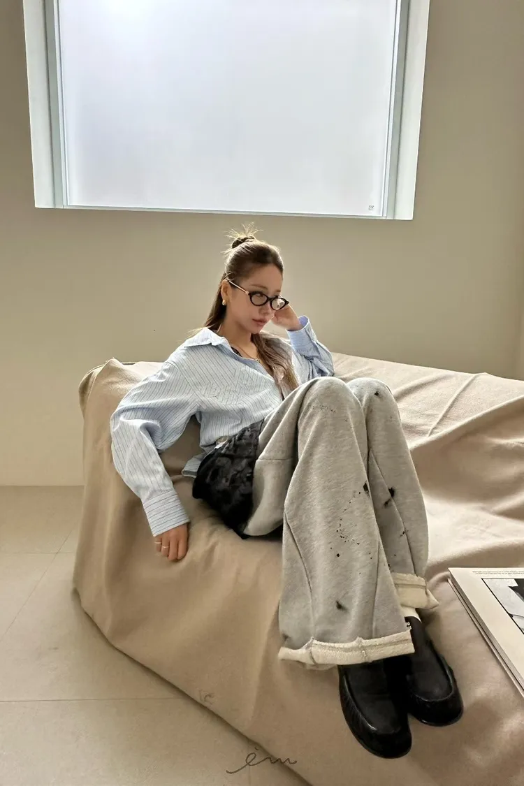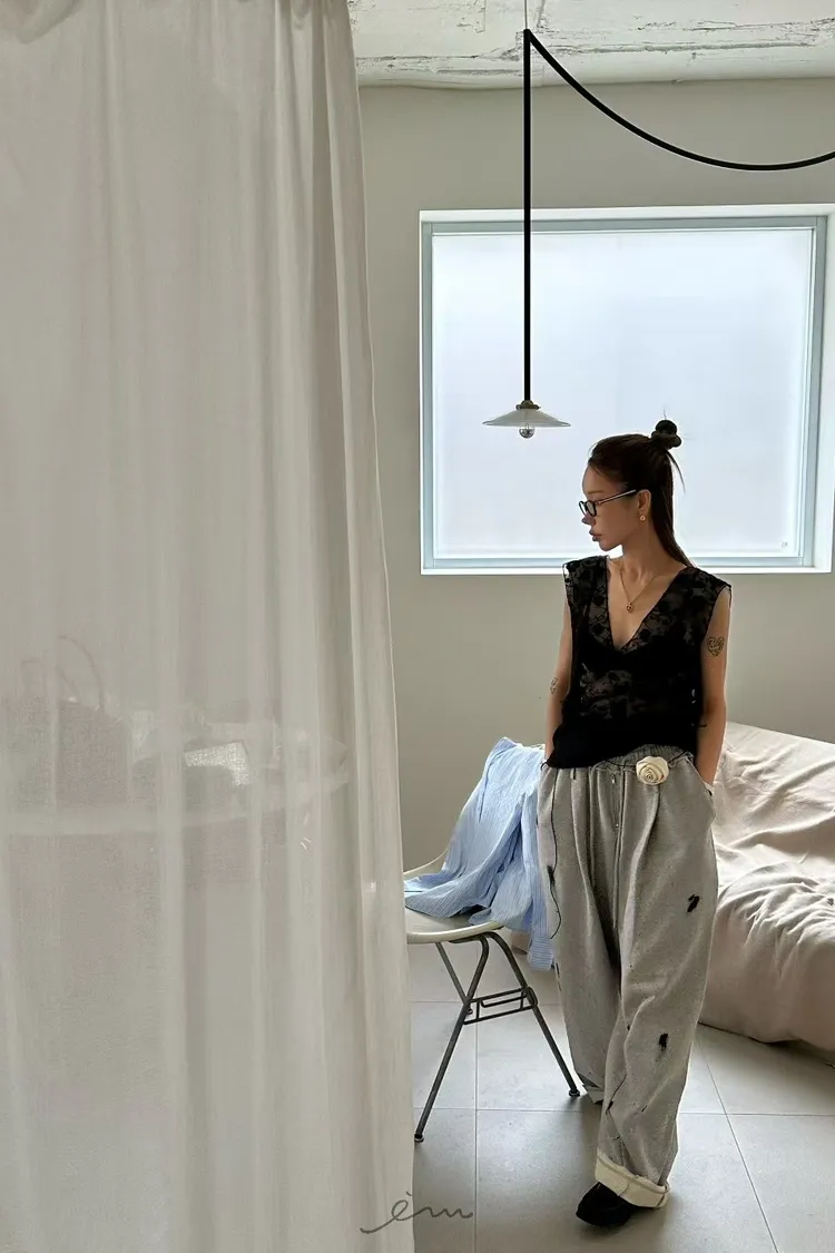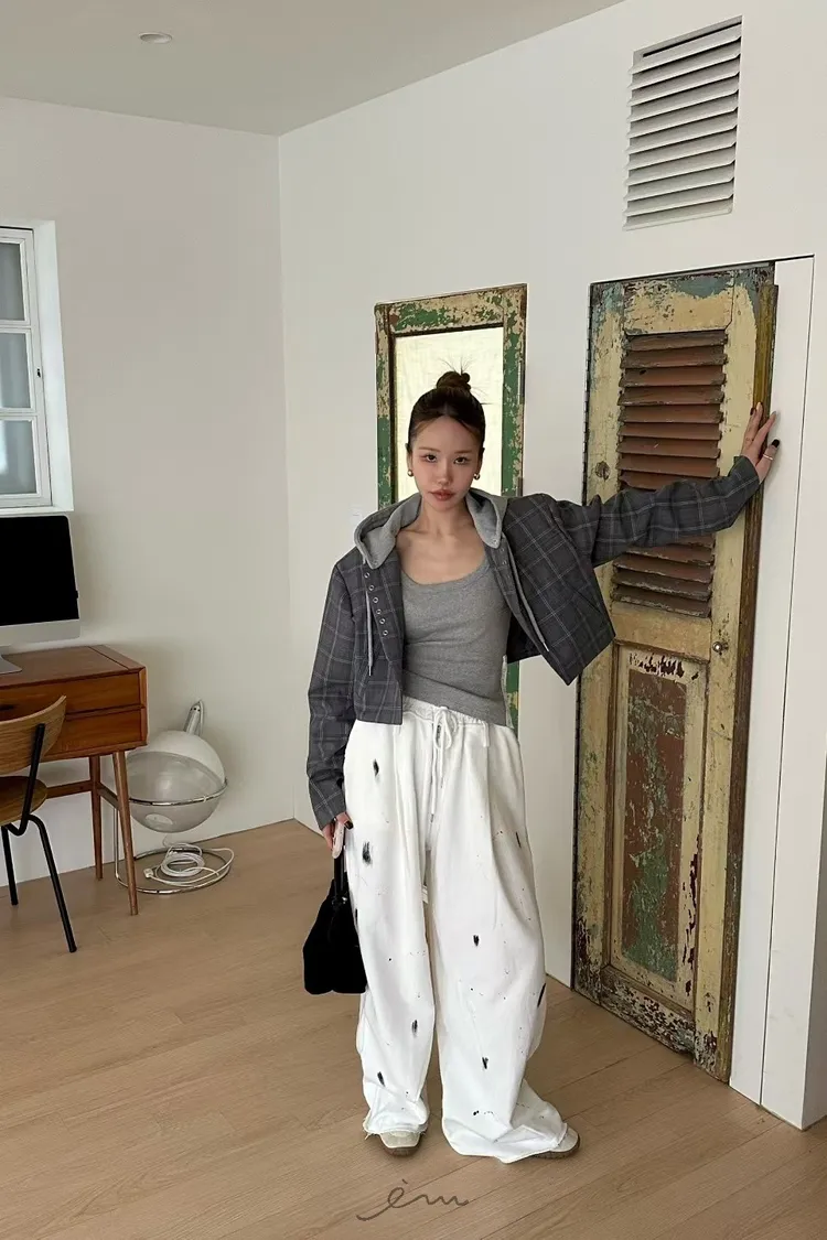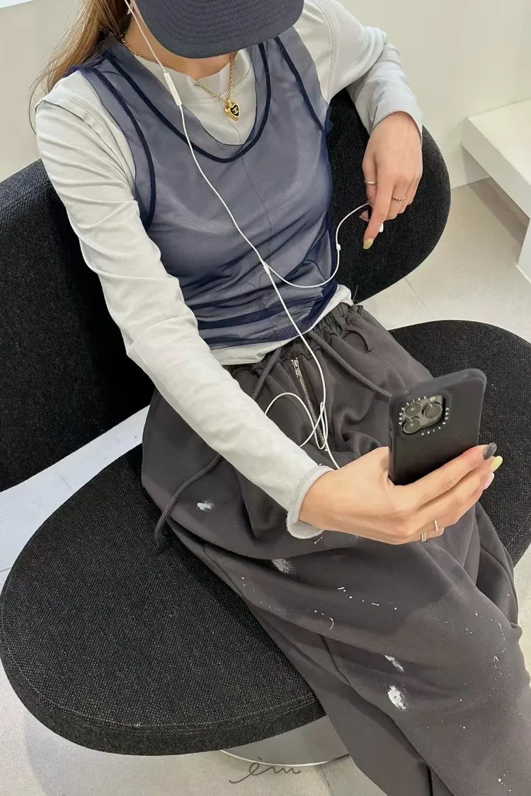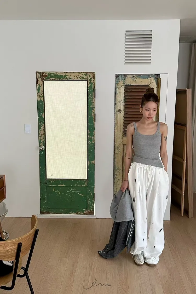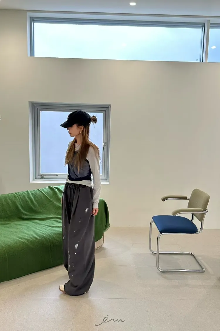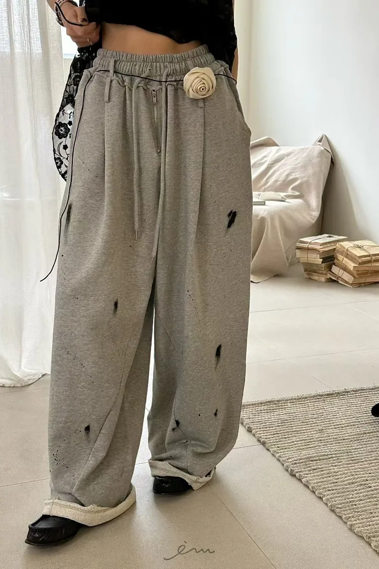 ZERO潑漆抽繩拉鍊長褲