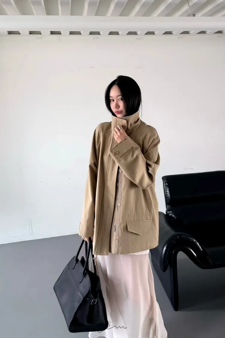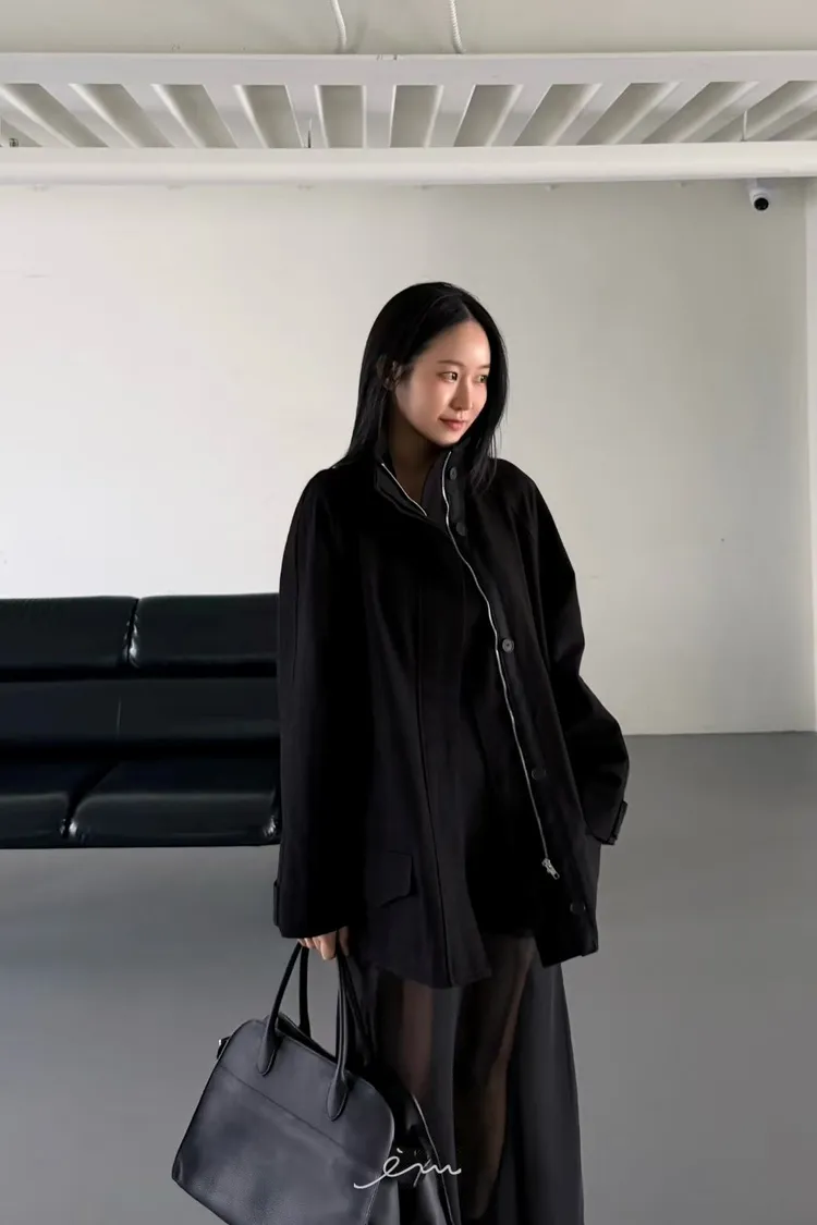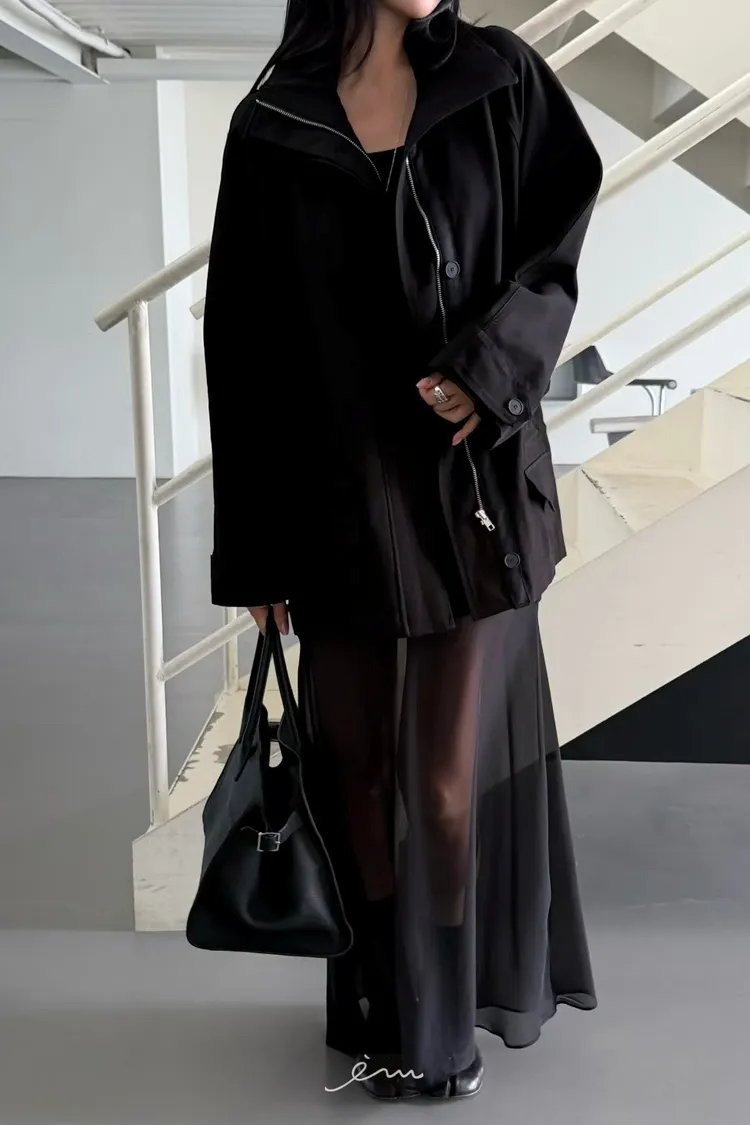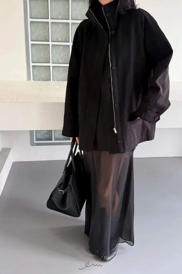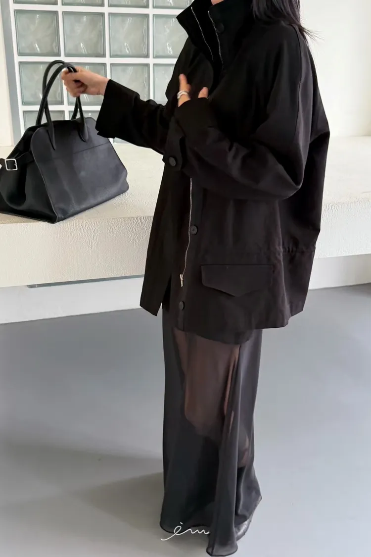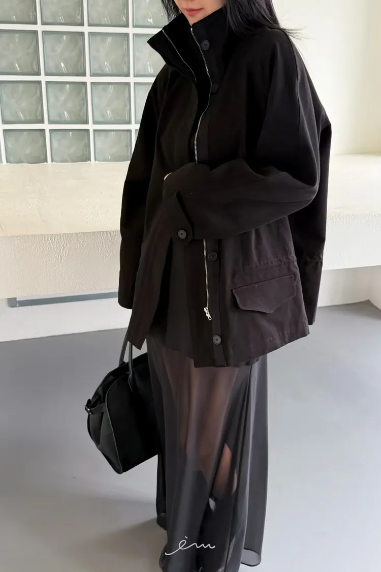 HO蓋式雙口袋拉鍊鈕釦外套