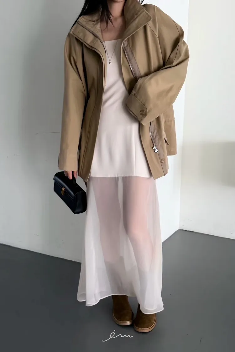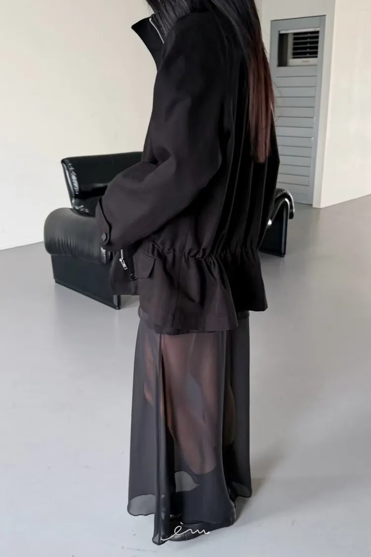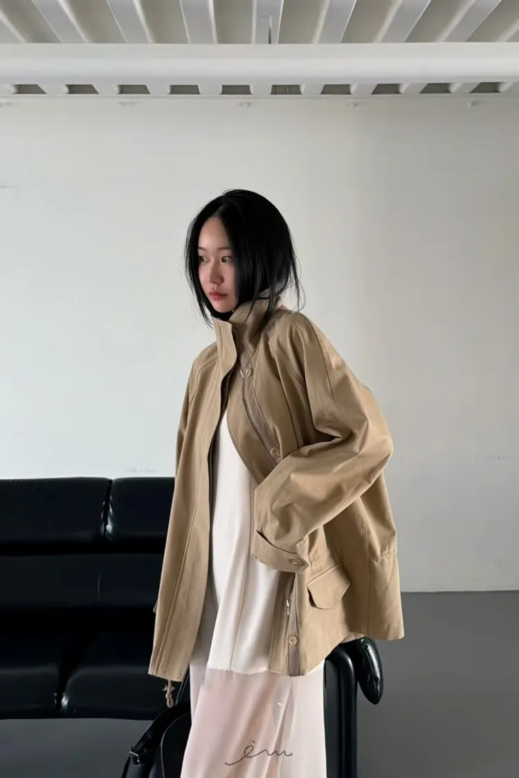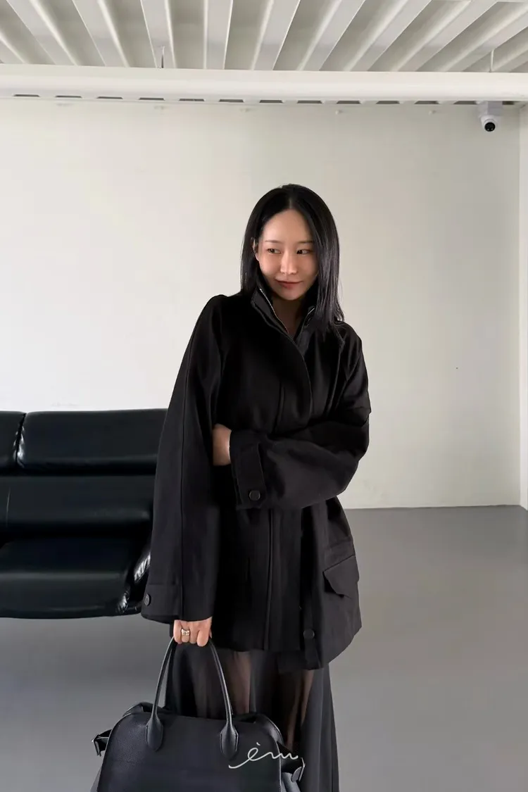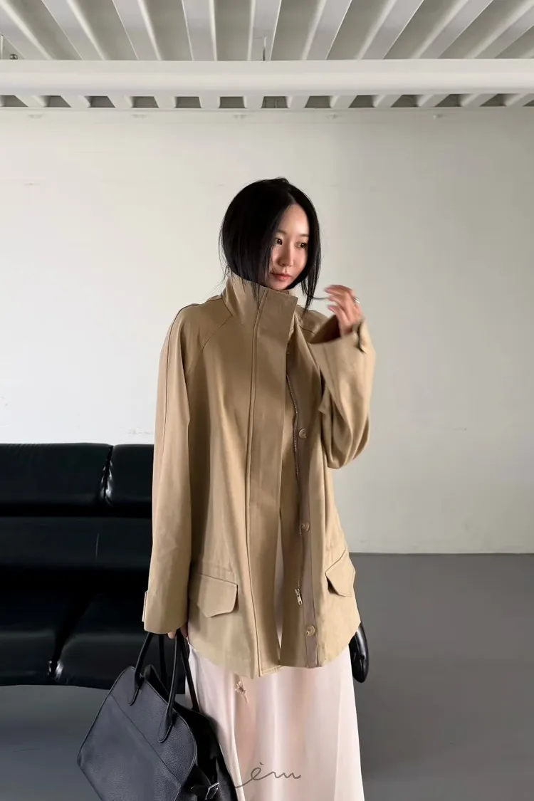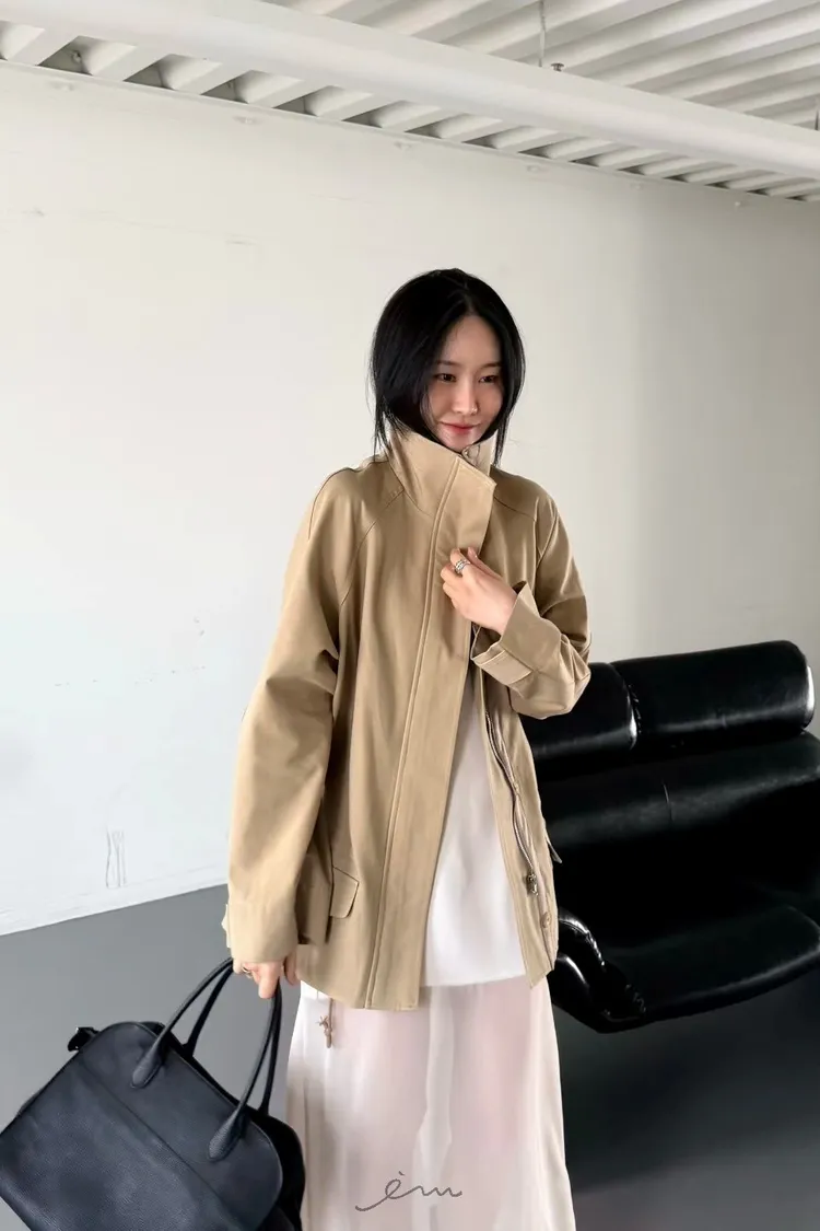 HO蓋式雙口袋拉鍊鈕釦外套