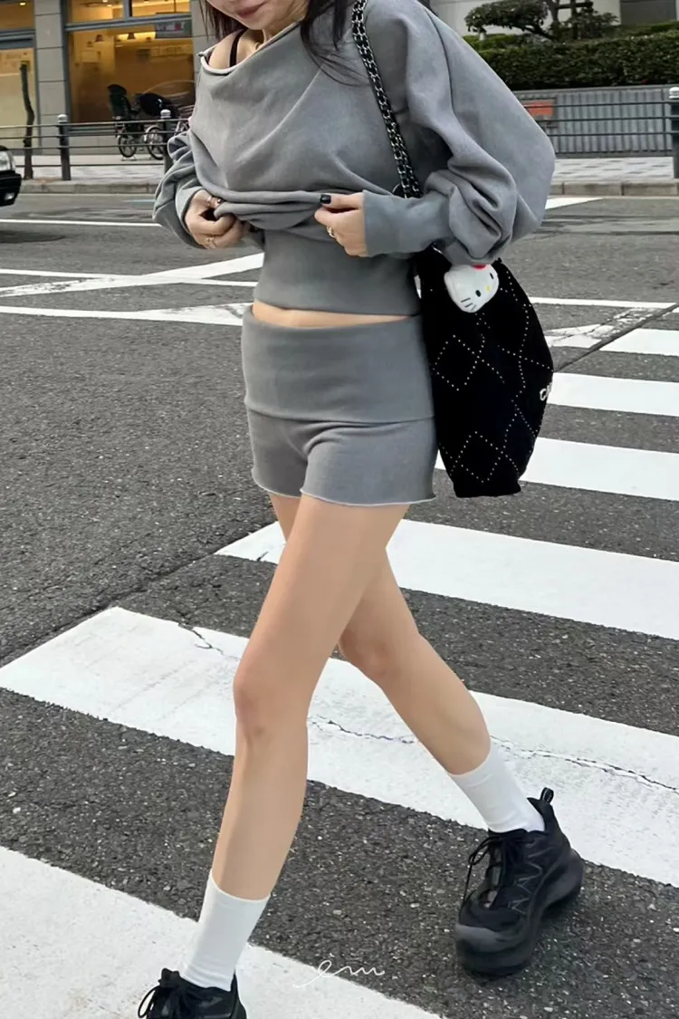 SO水洗斜肩衣+短褲(套裝)