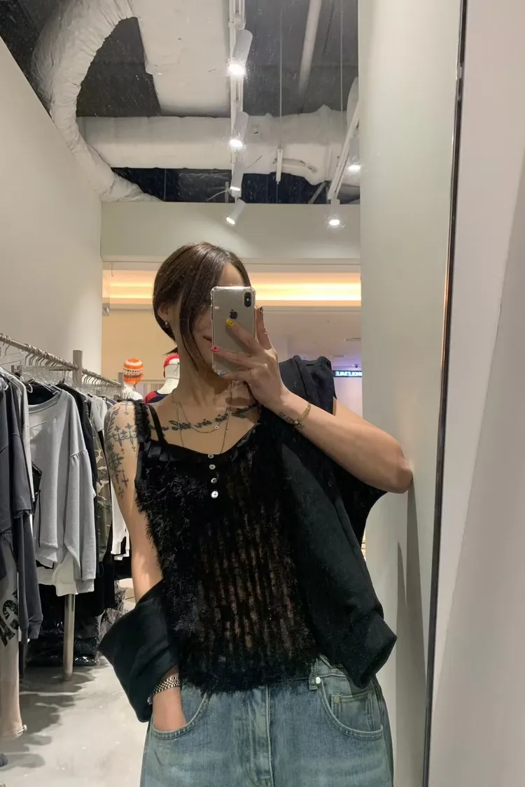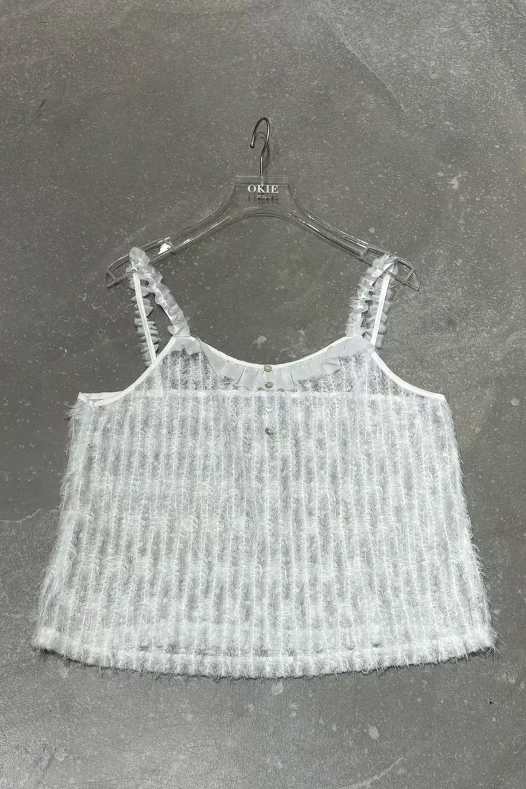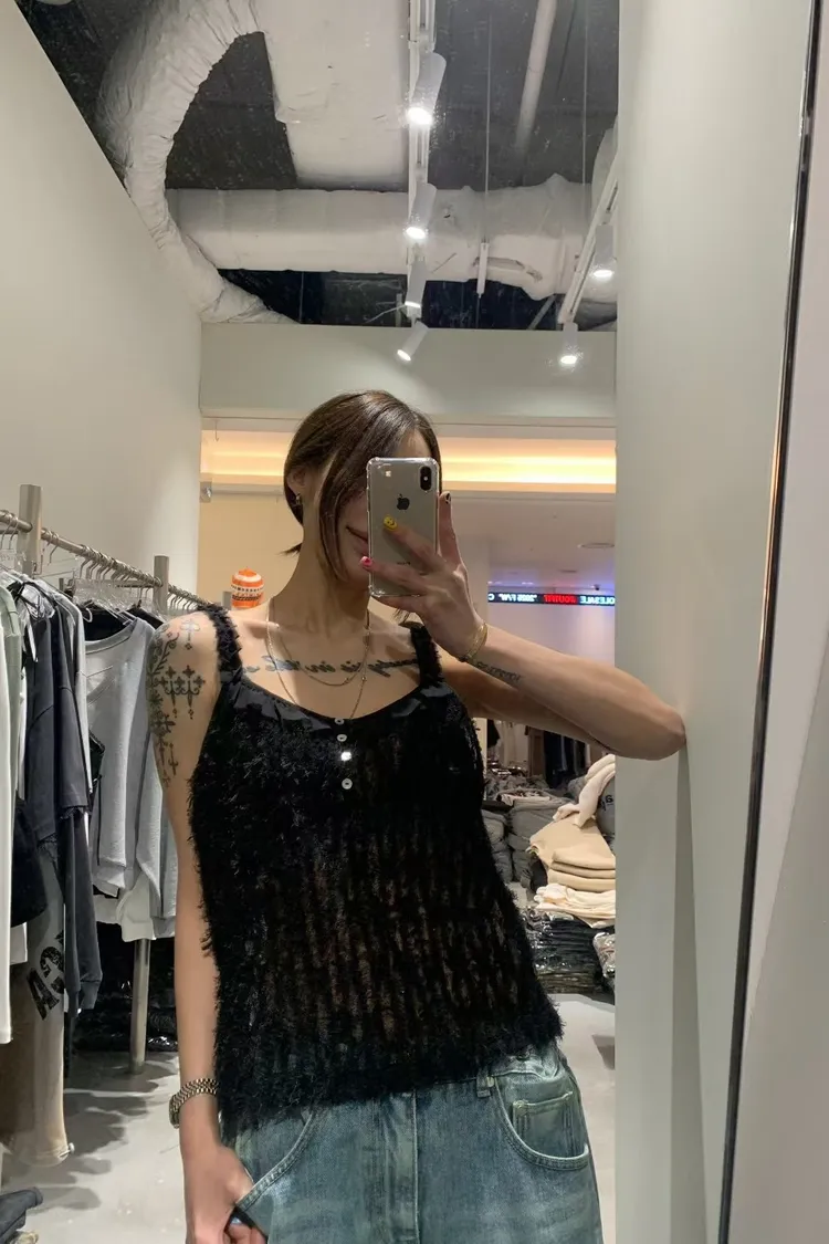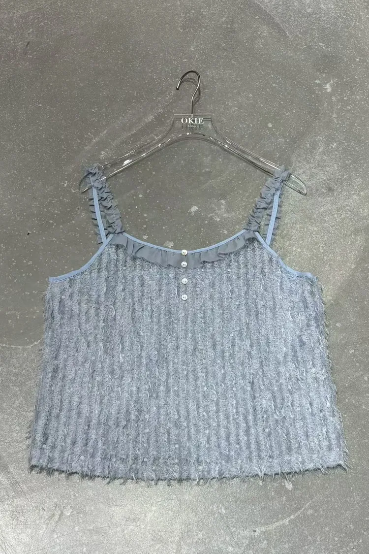OK拼荷葉鈕釦毛感細肩背心
