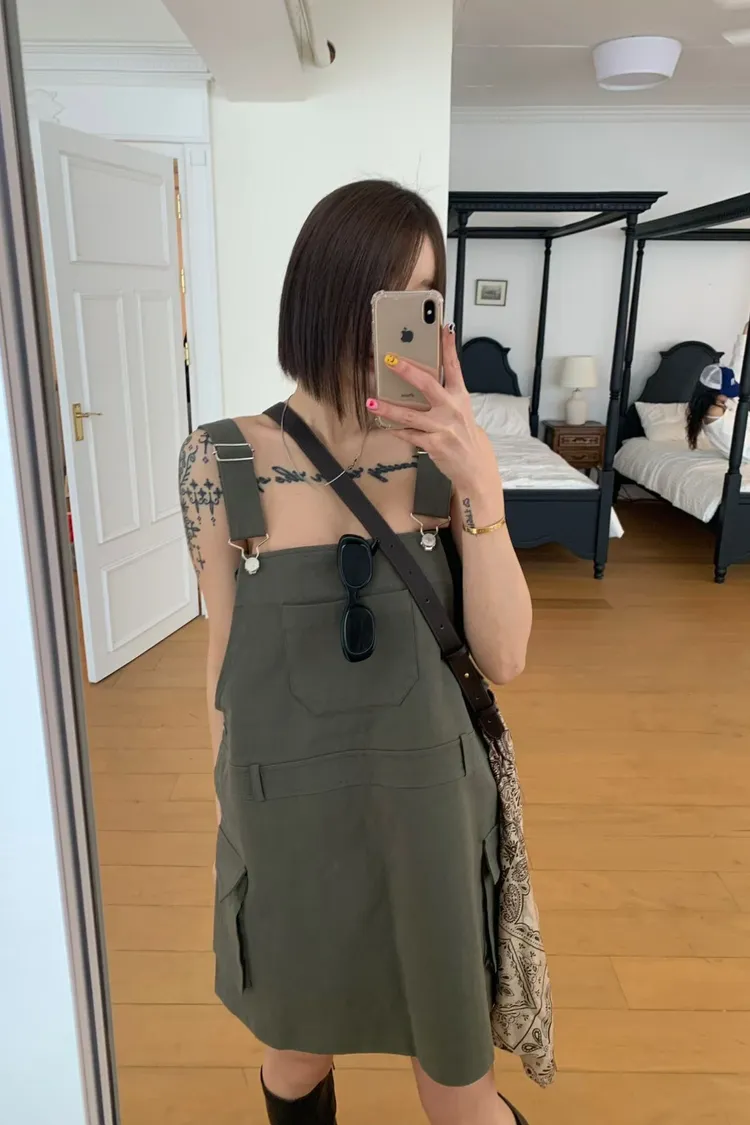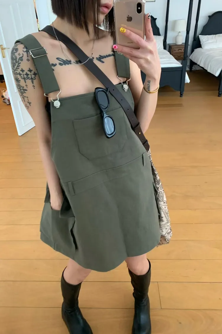 OK吊帶工裝短裙