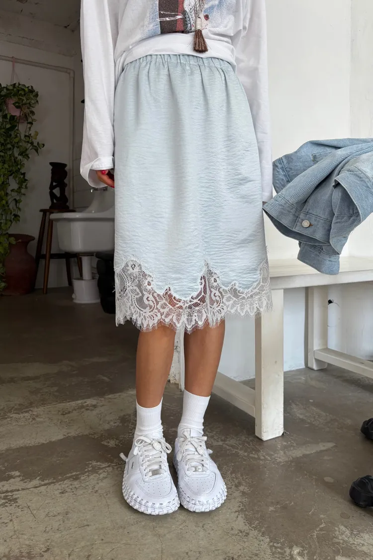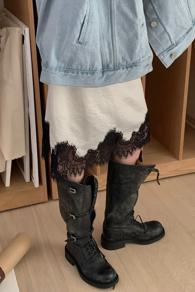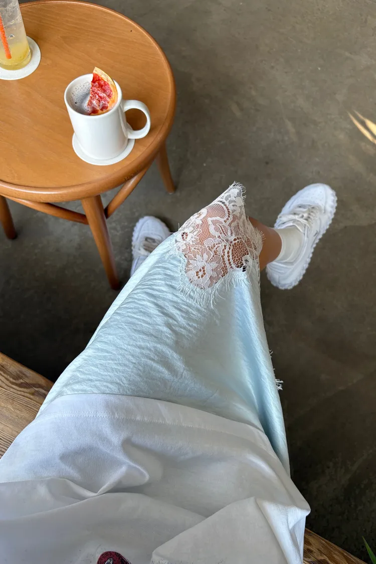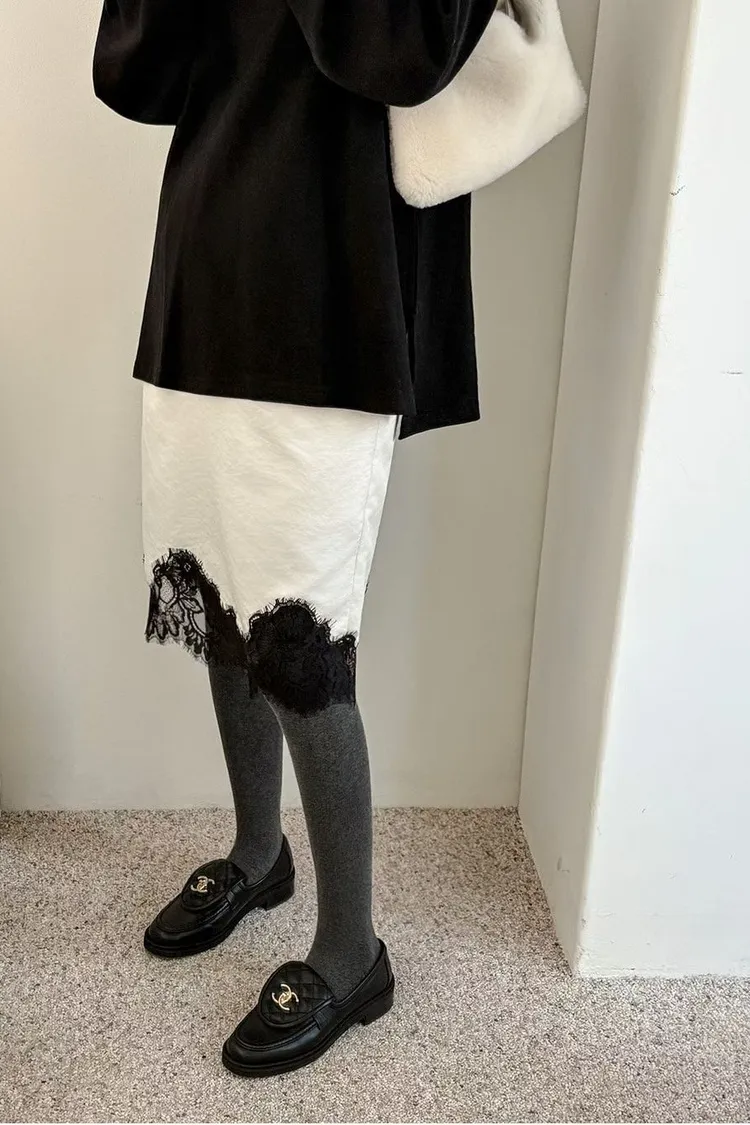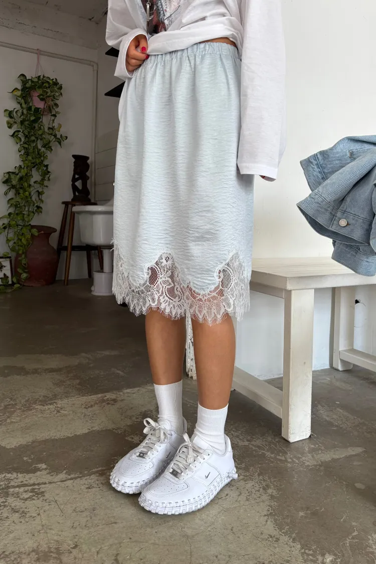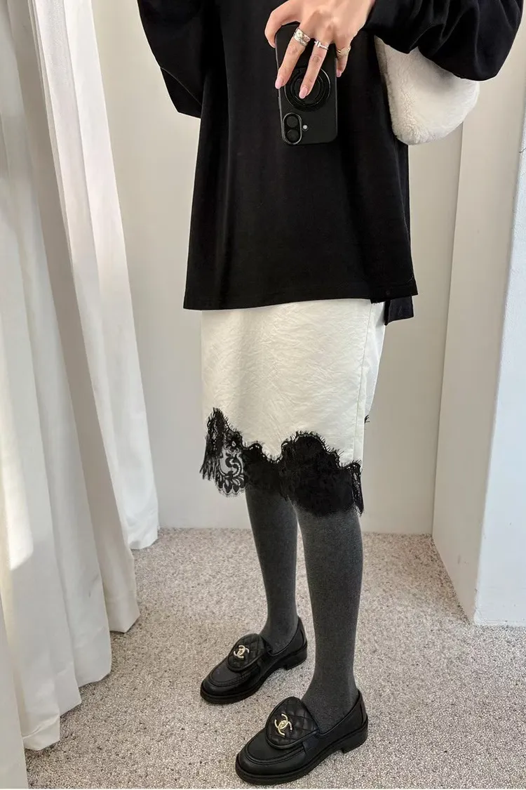 下蕾絲鬆緊中長裙