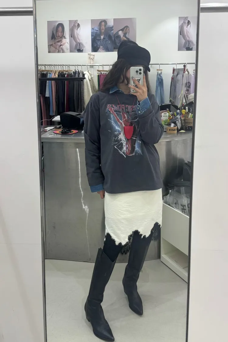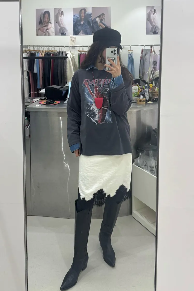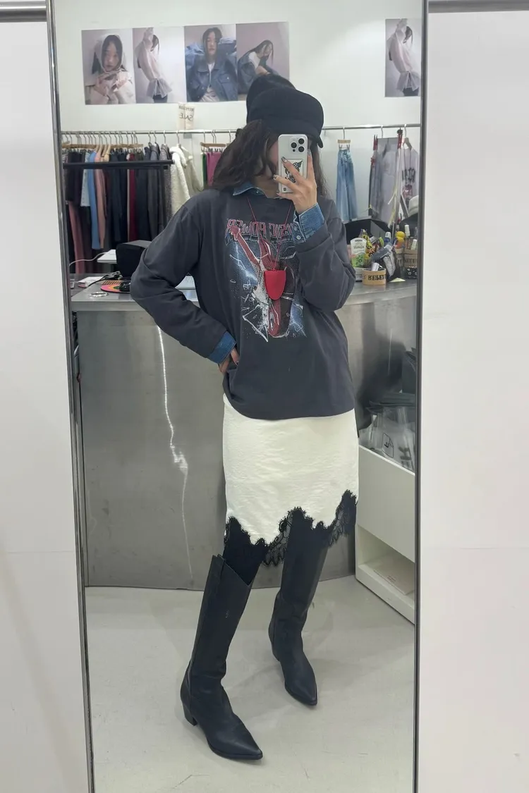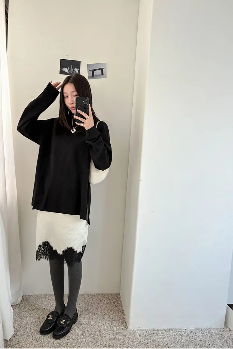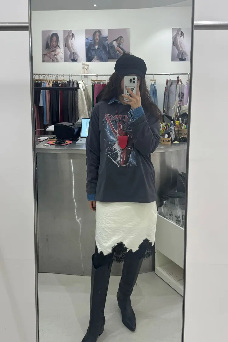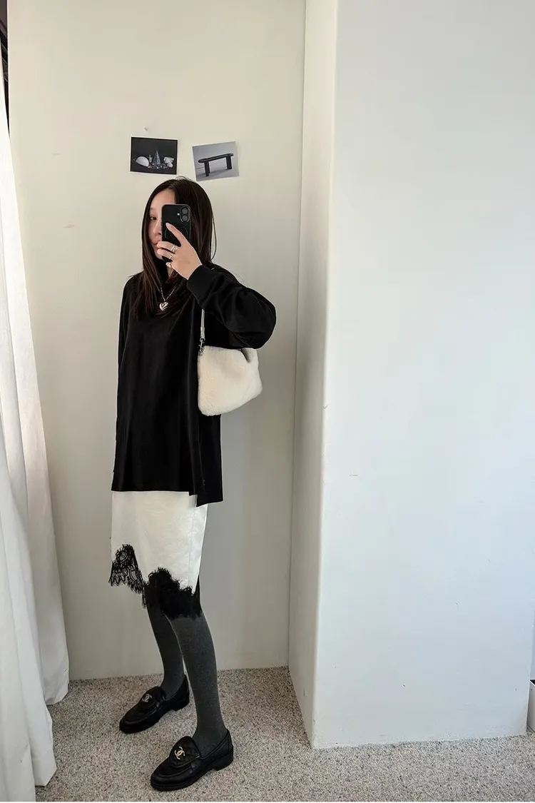 下蕾絲鬆緊中長裙