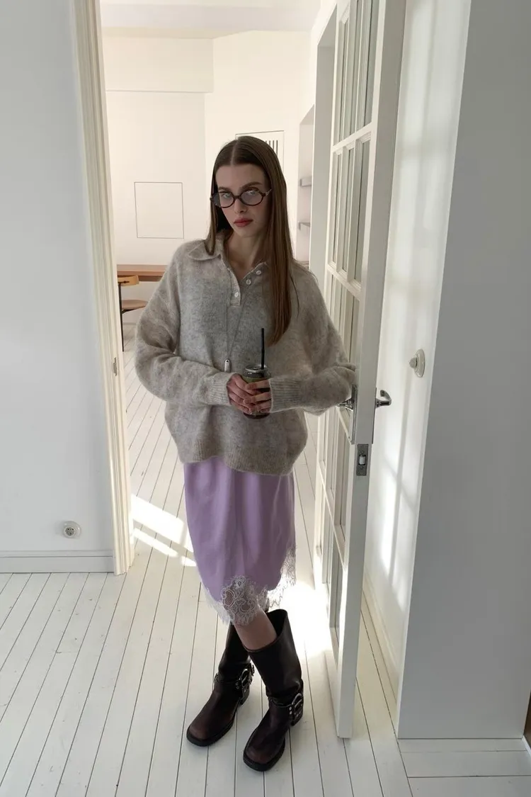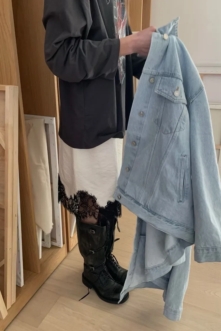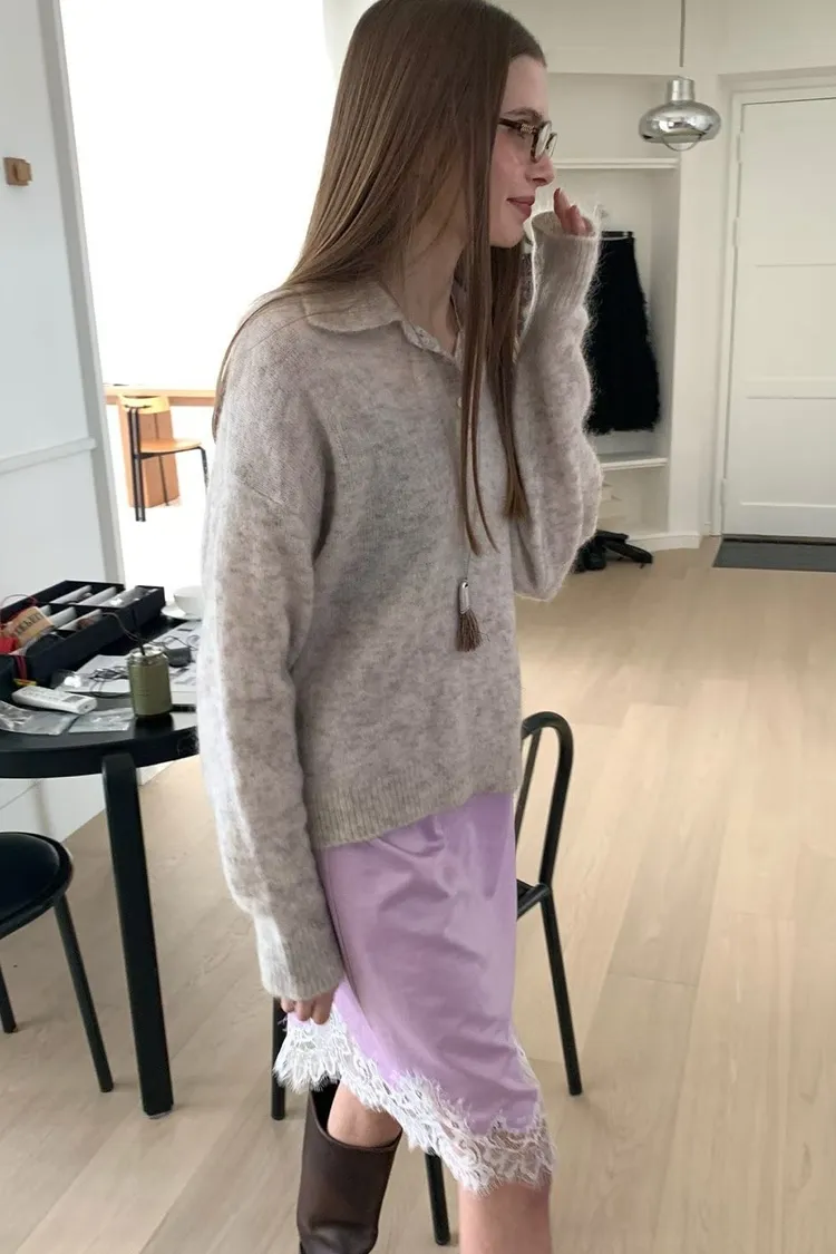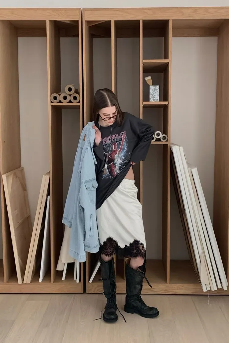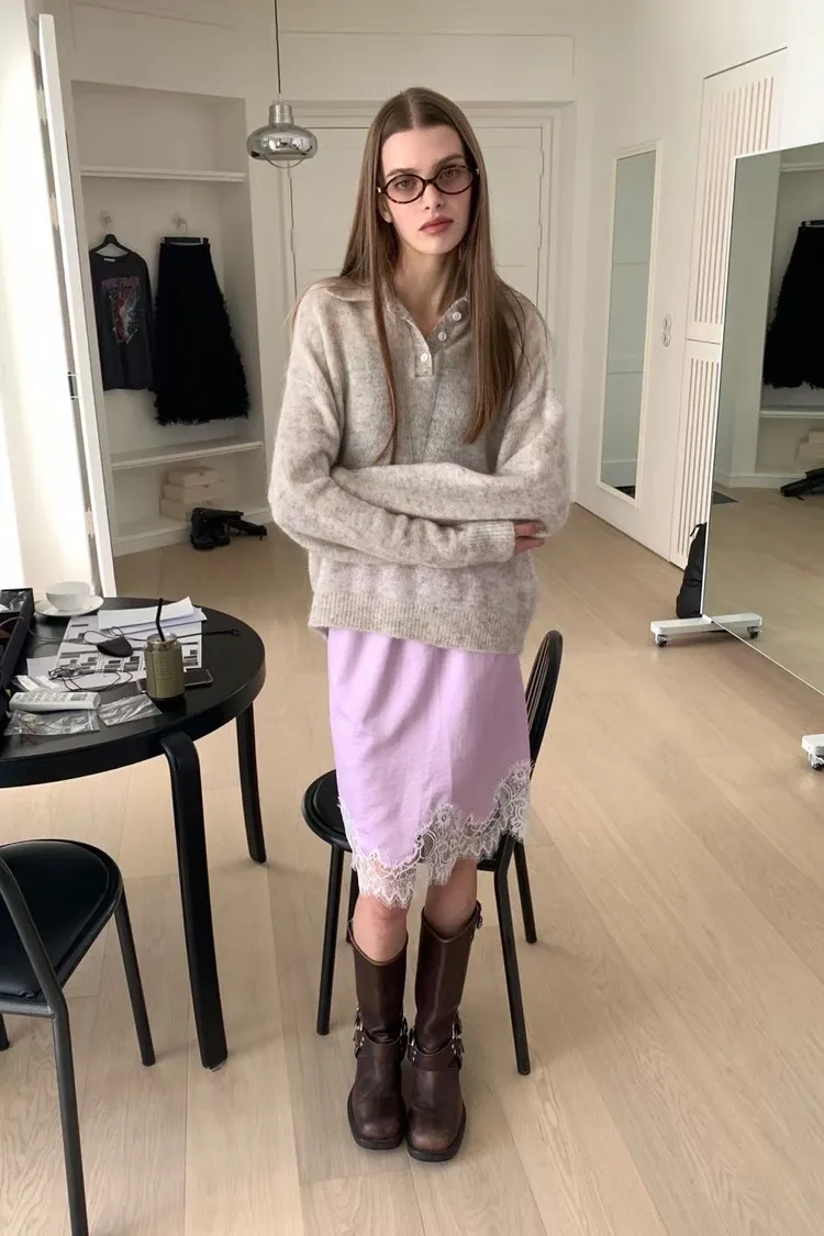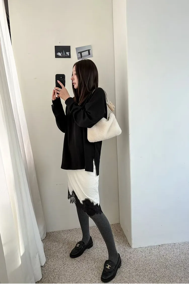 下蕾絲鬆緊中長裙