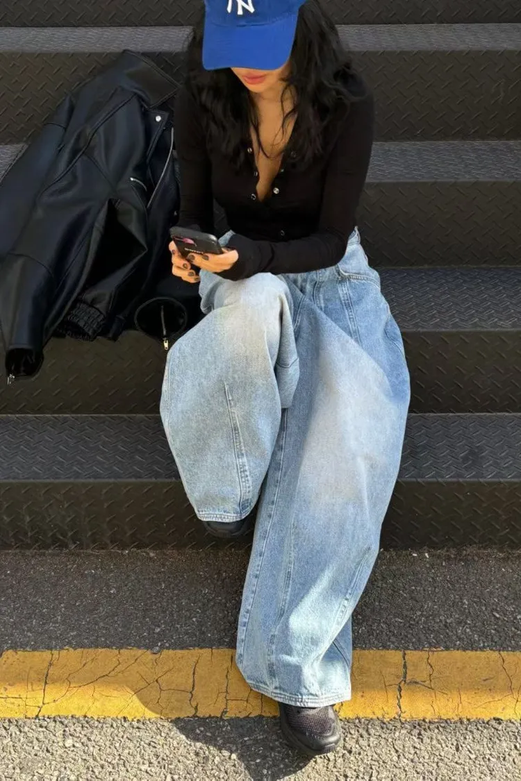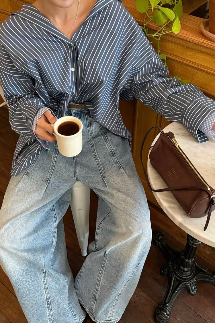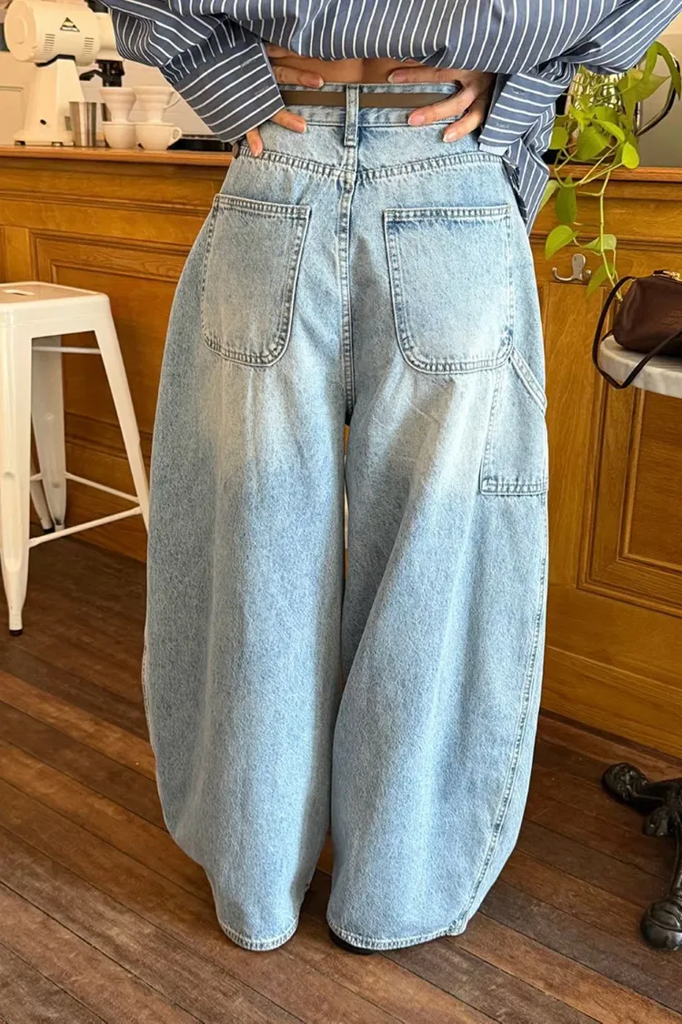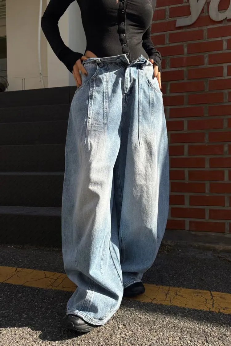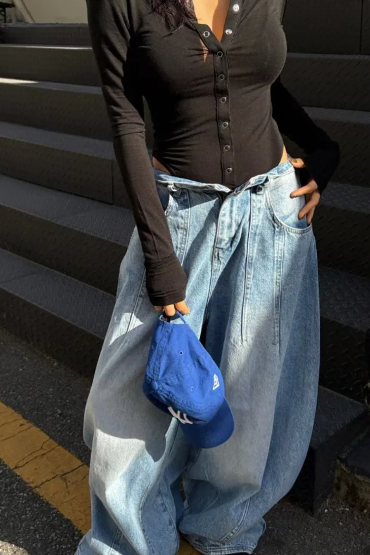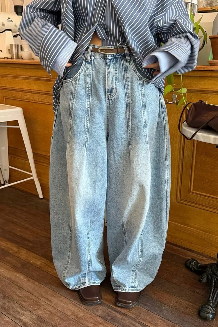 上下車線造型繭型牛仔褲