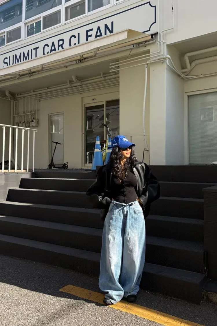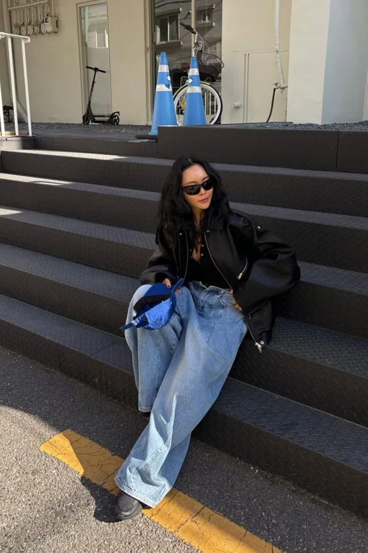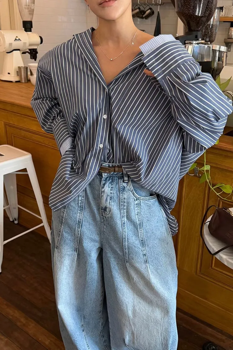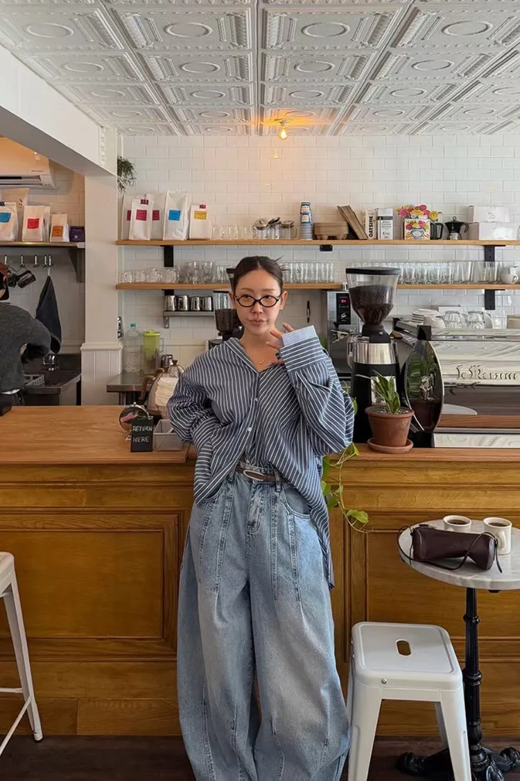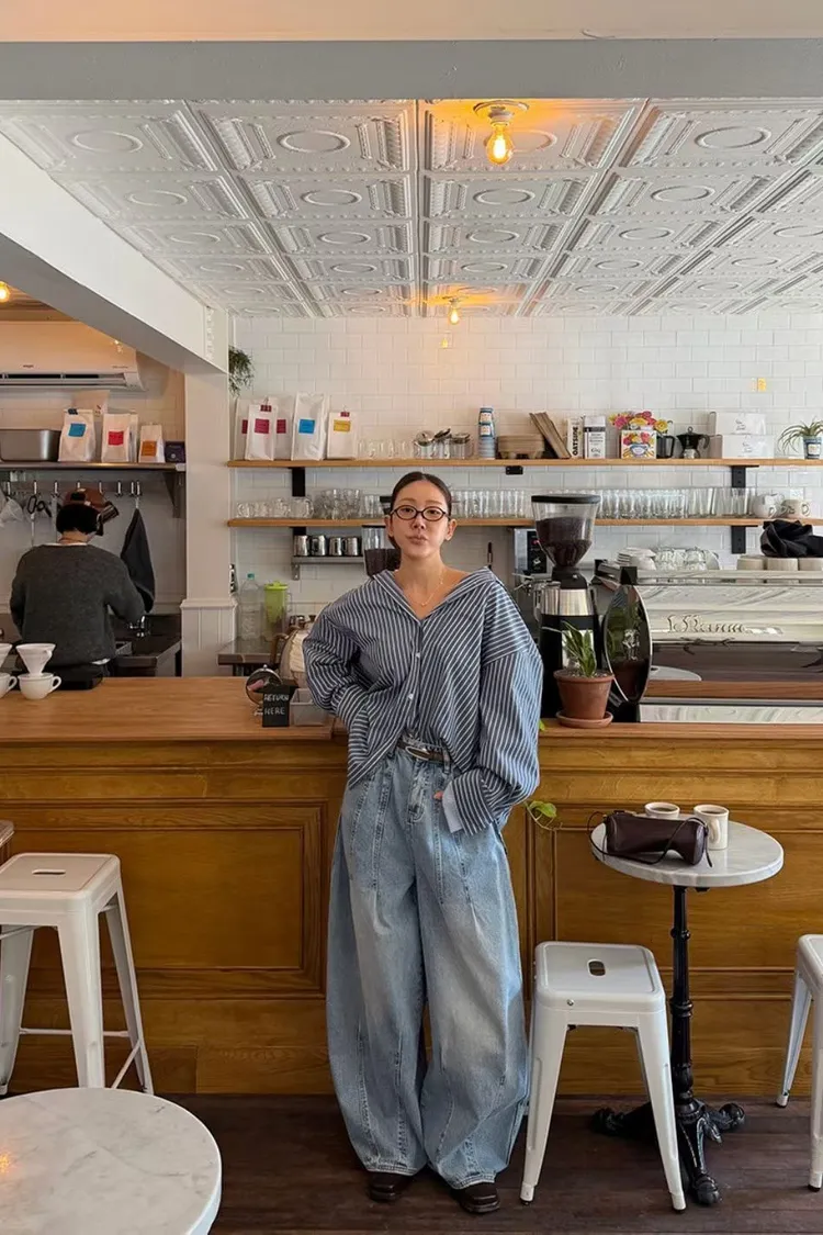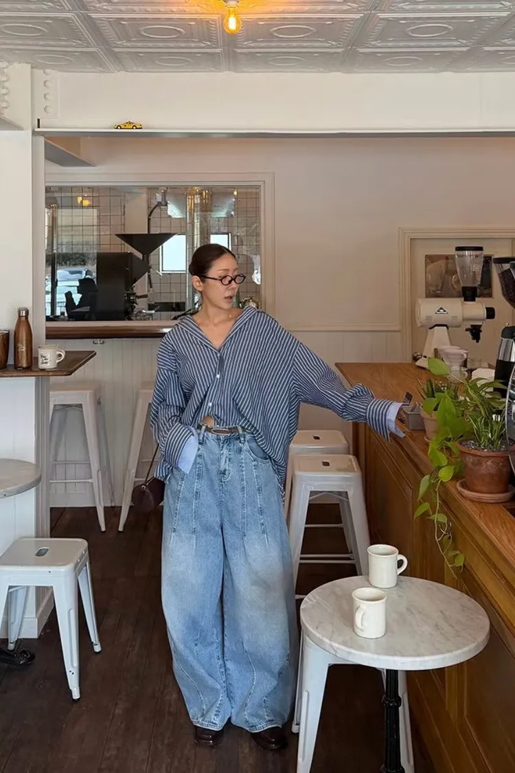 上下車線造型繭型牛仔褲