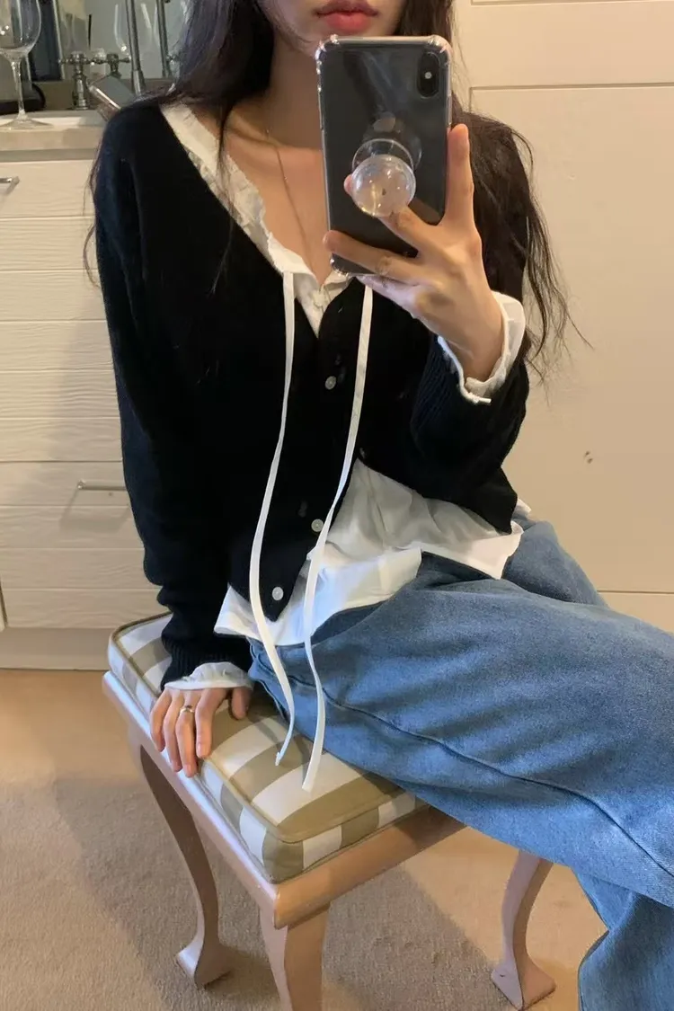 多色五釦針織上衣