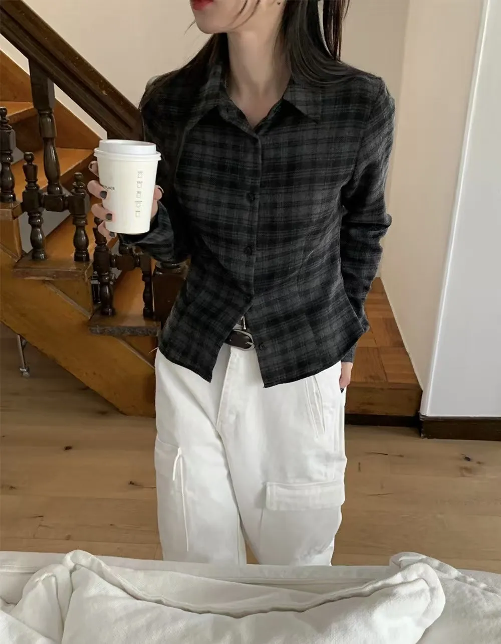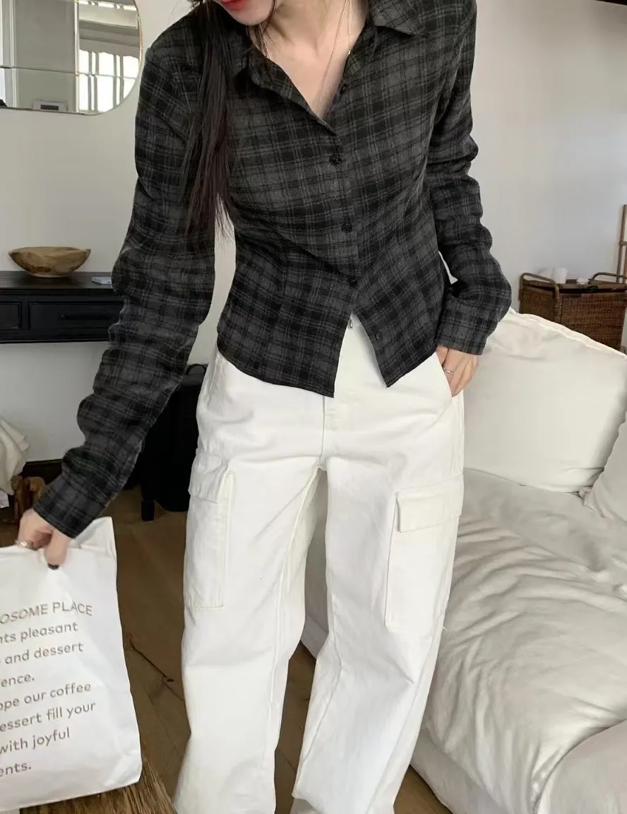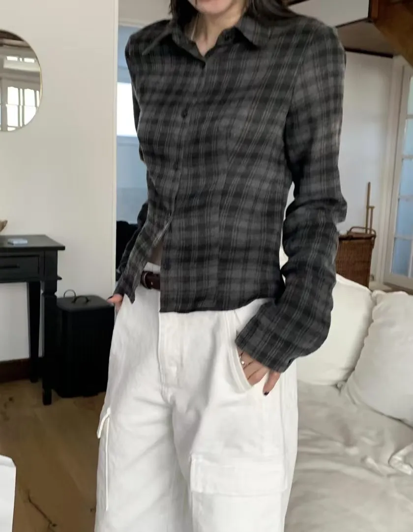 縮腰感格紋襯衫