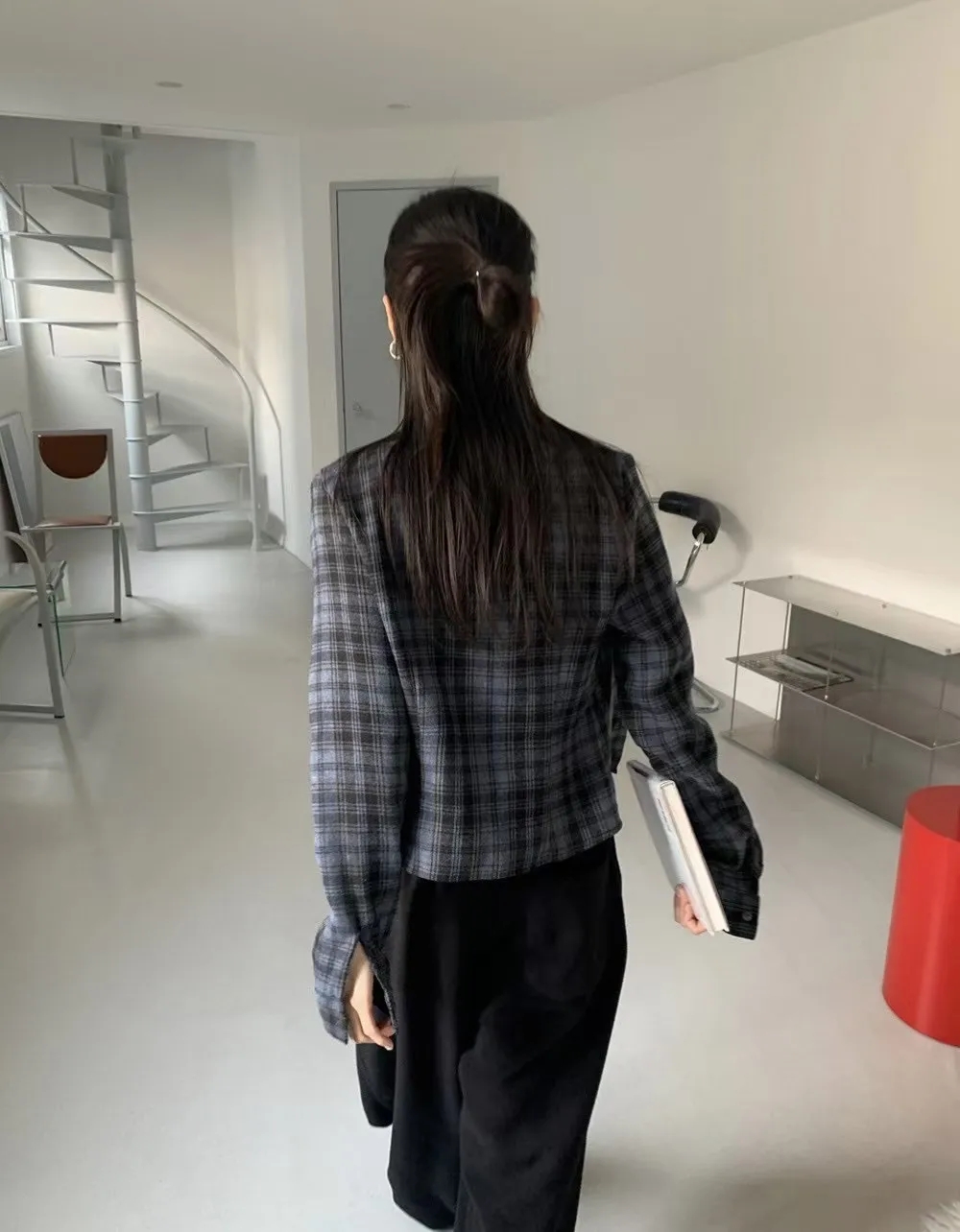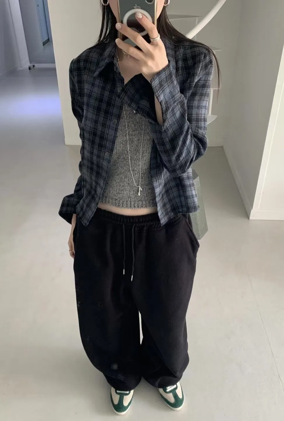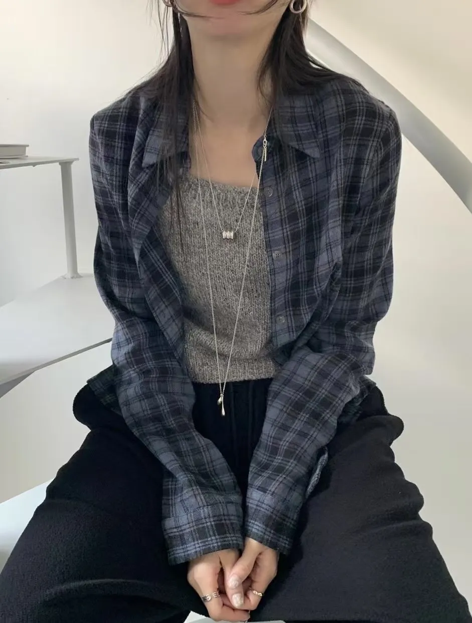縮腰感格紋襯衫