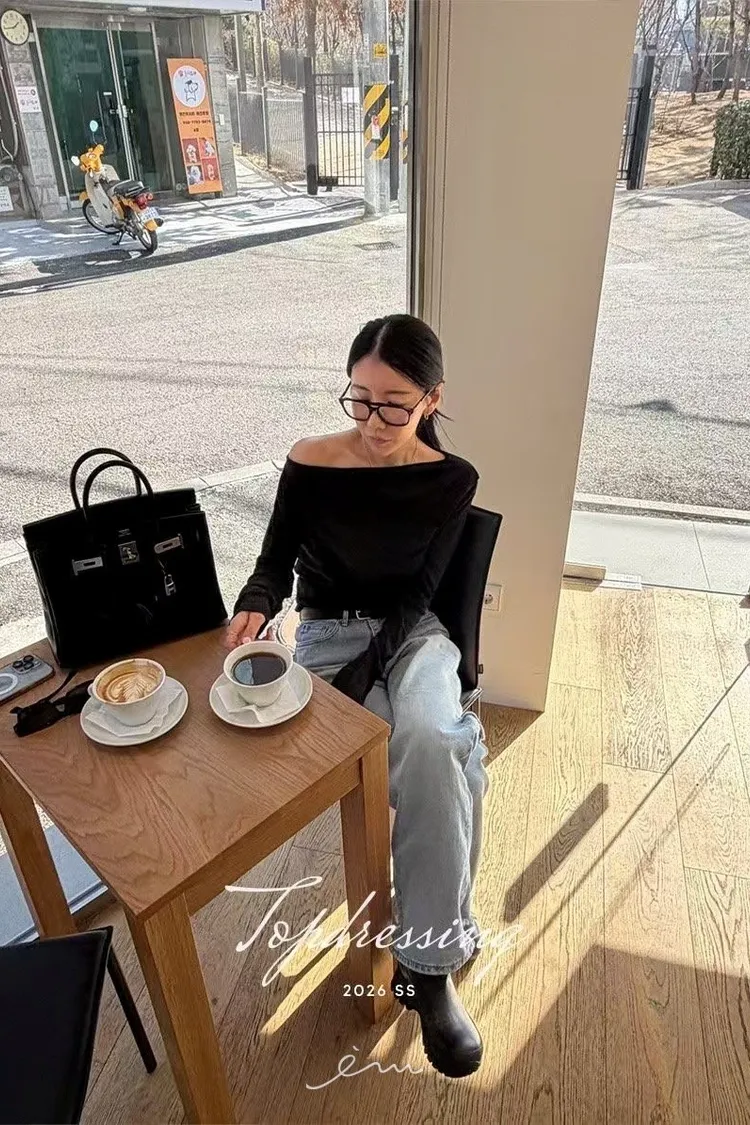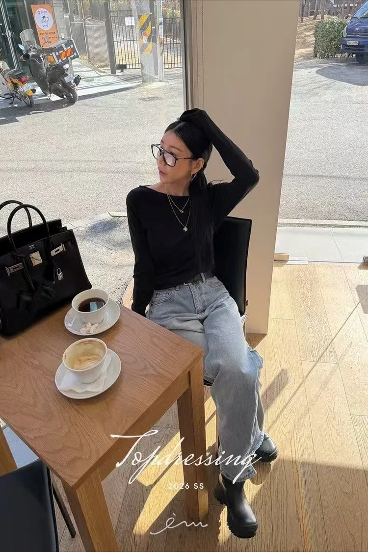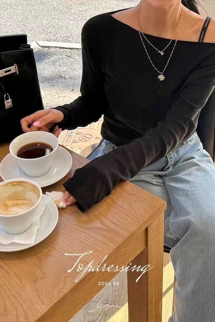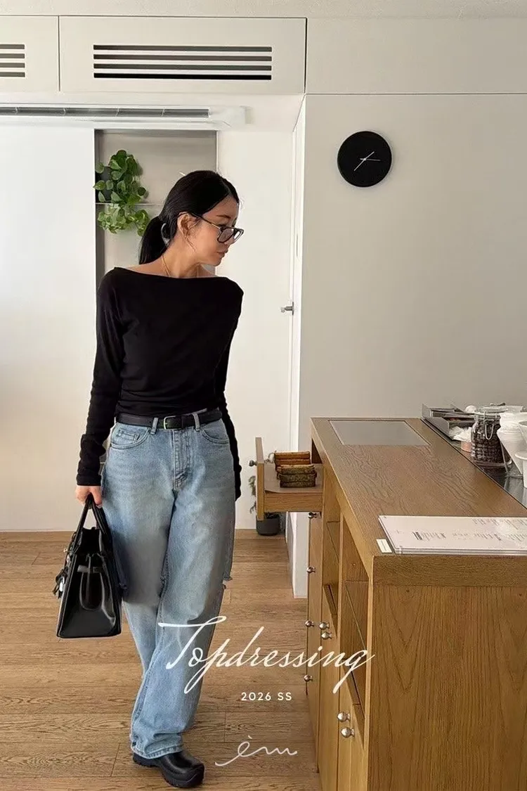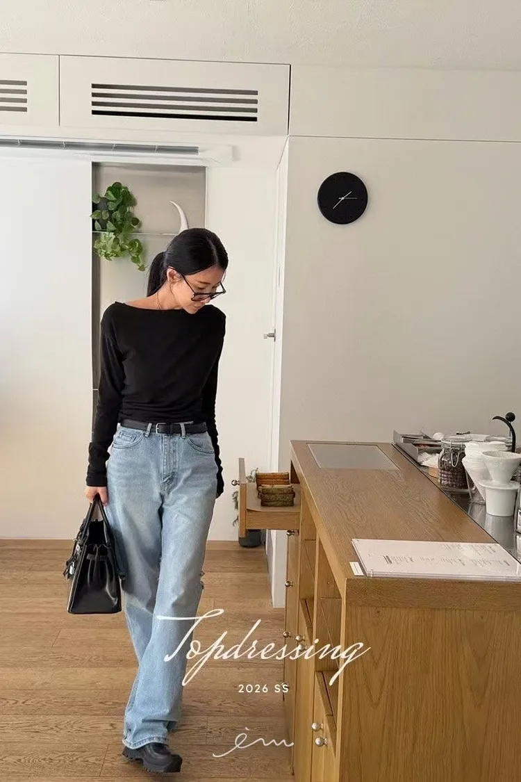 TOP單抓皺大圓領素衣