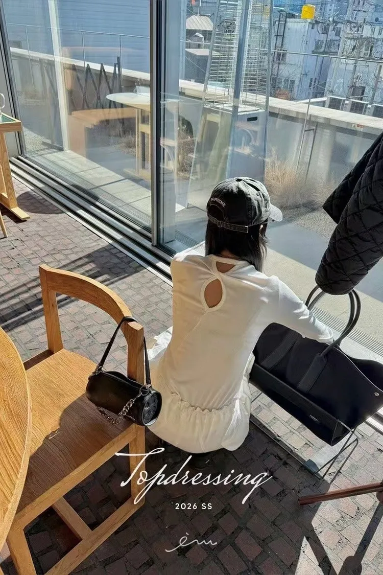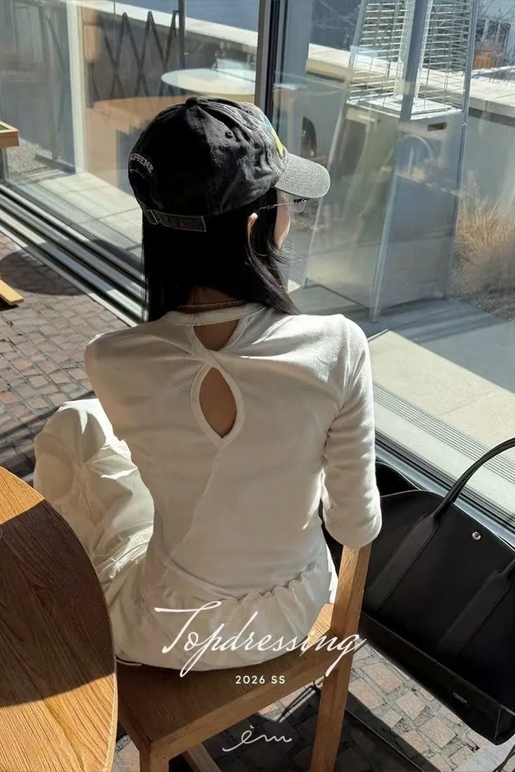 TOP後扭結挖洞素T