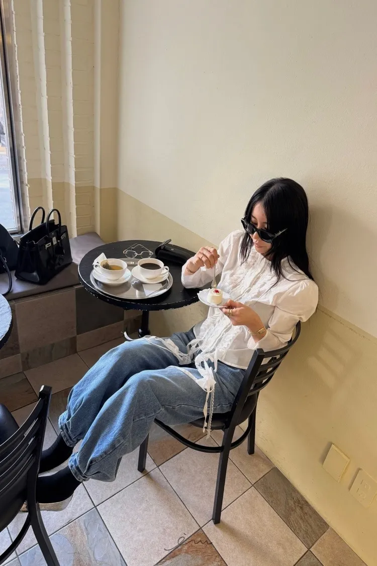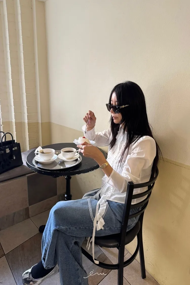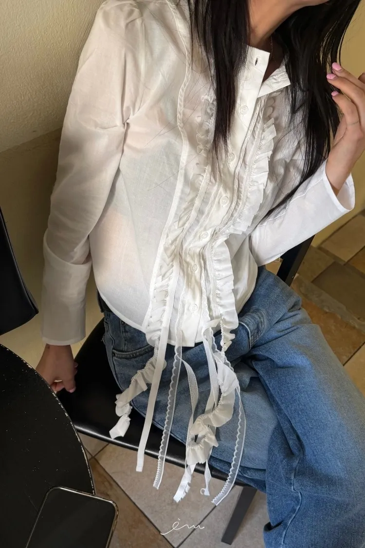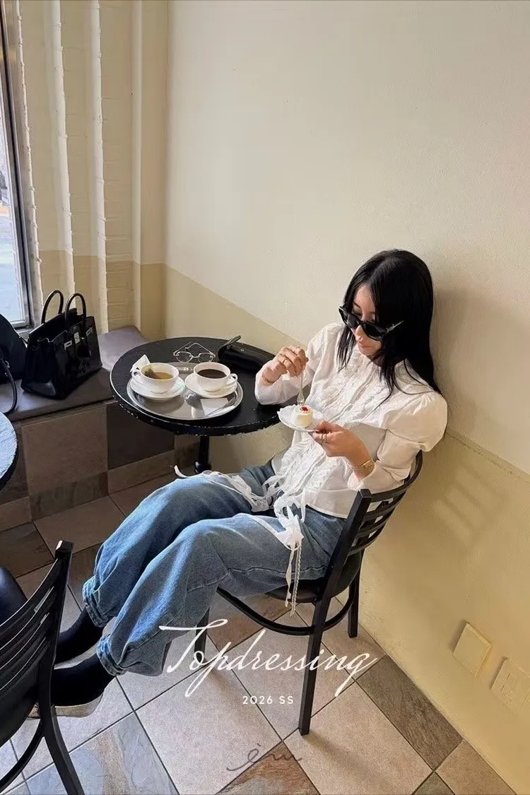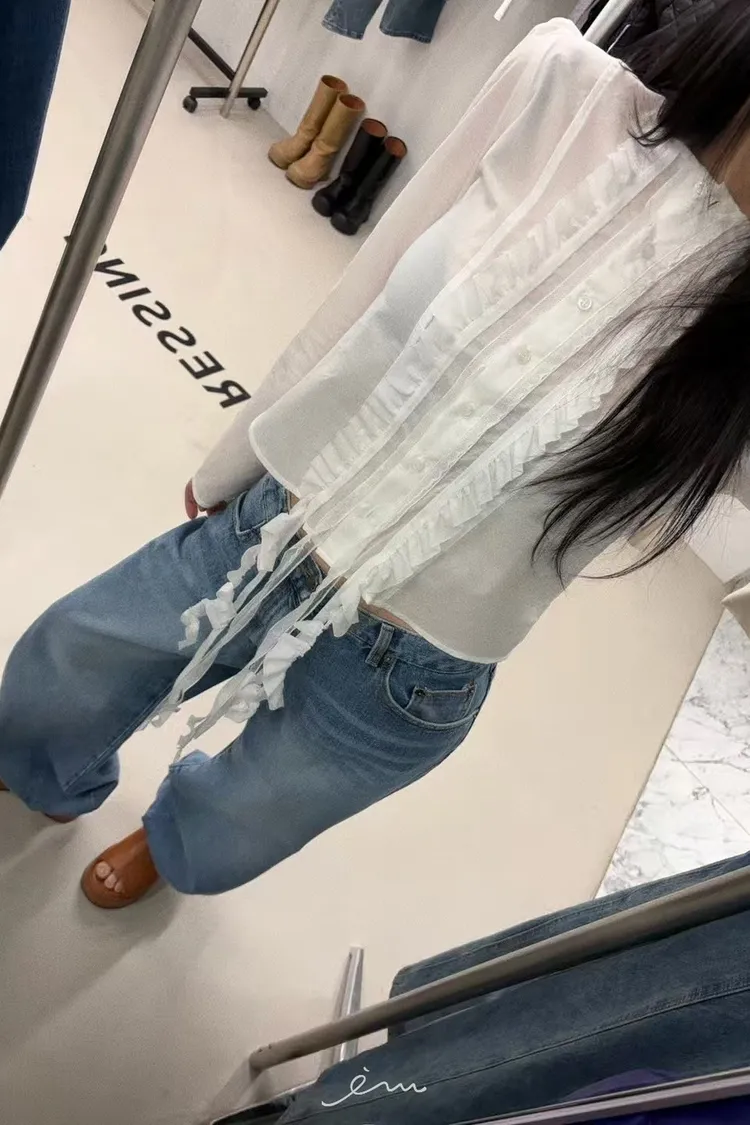 TOP荷葉抽繩蕾絲鈕釦上衣