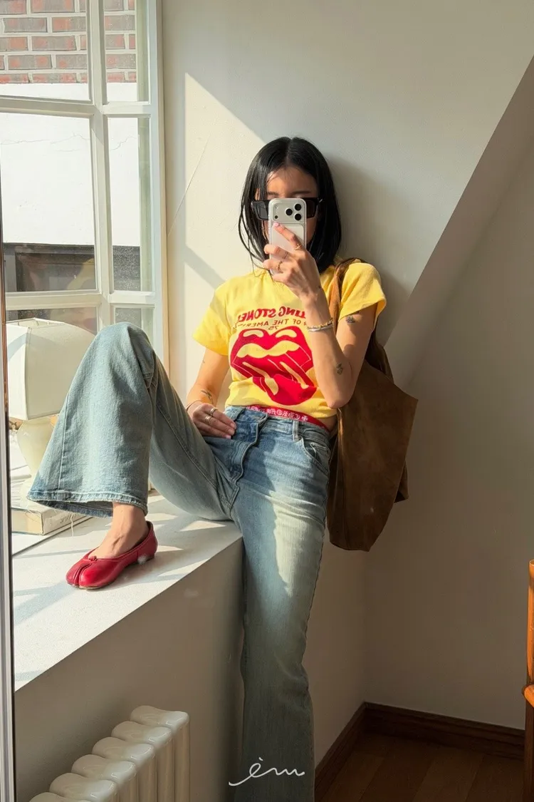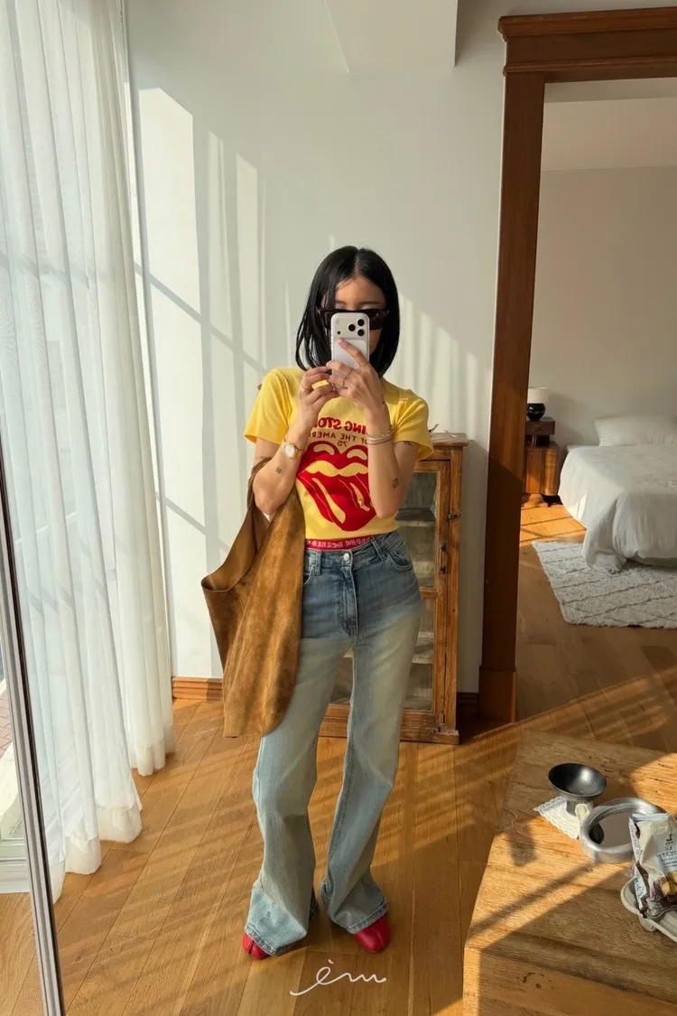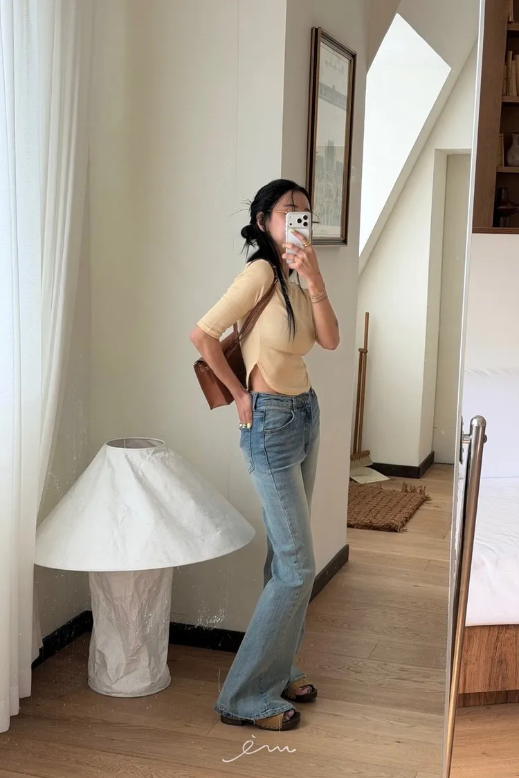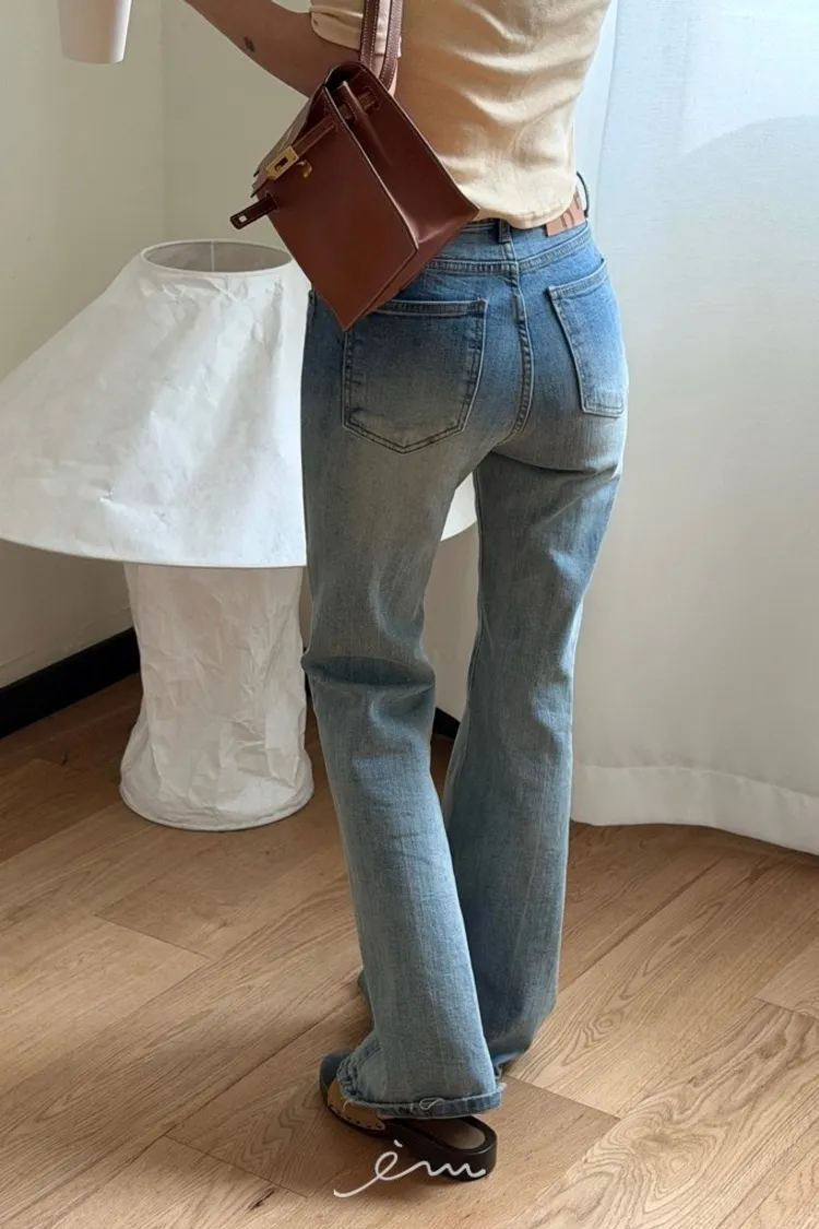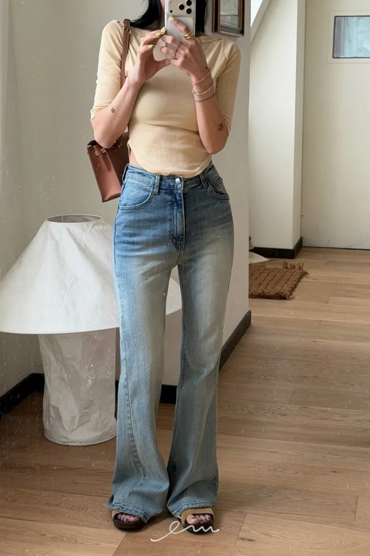 TOP刷色牛仔喇叭褲