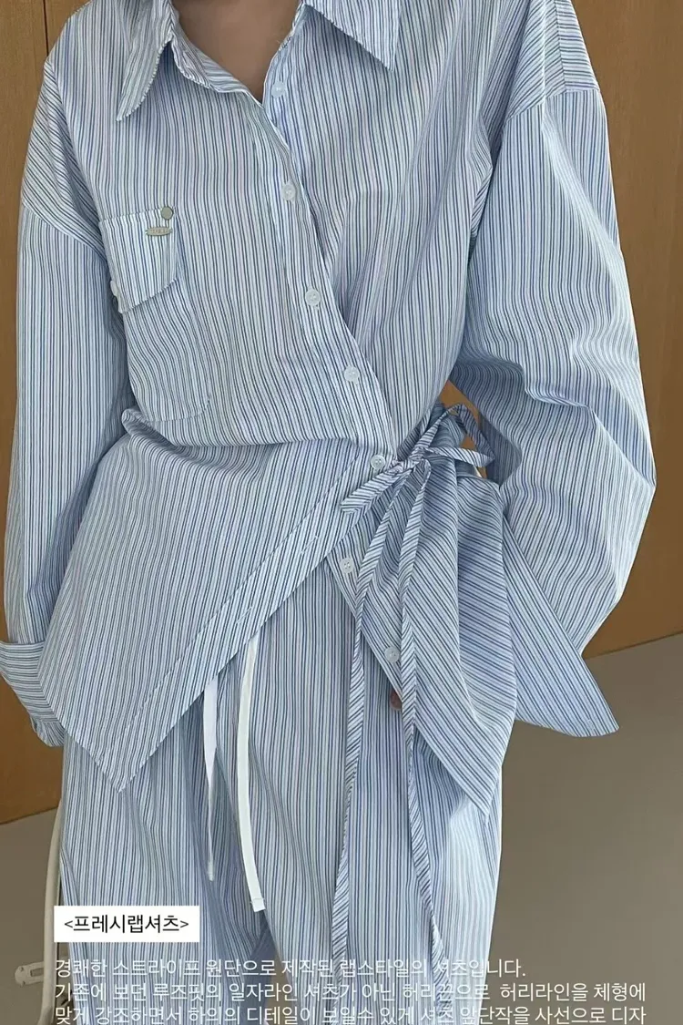 Tomgirl 蓋式口袋鐵標直條綁帶襯衫