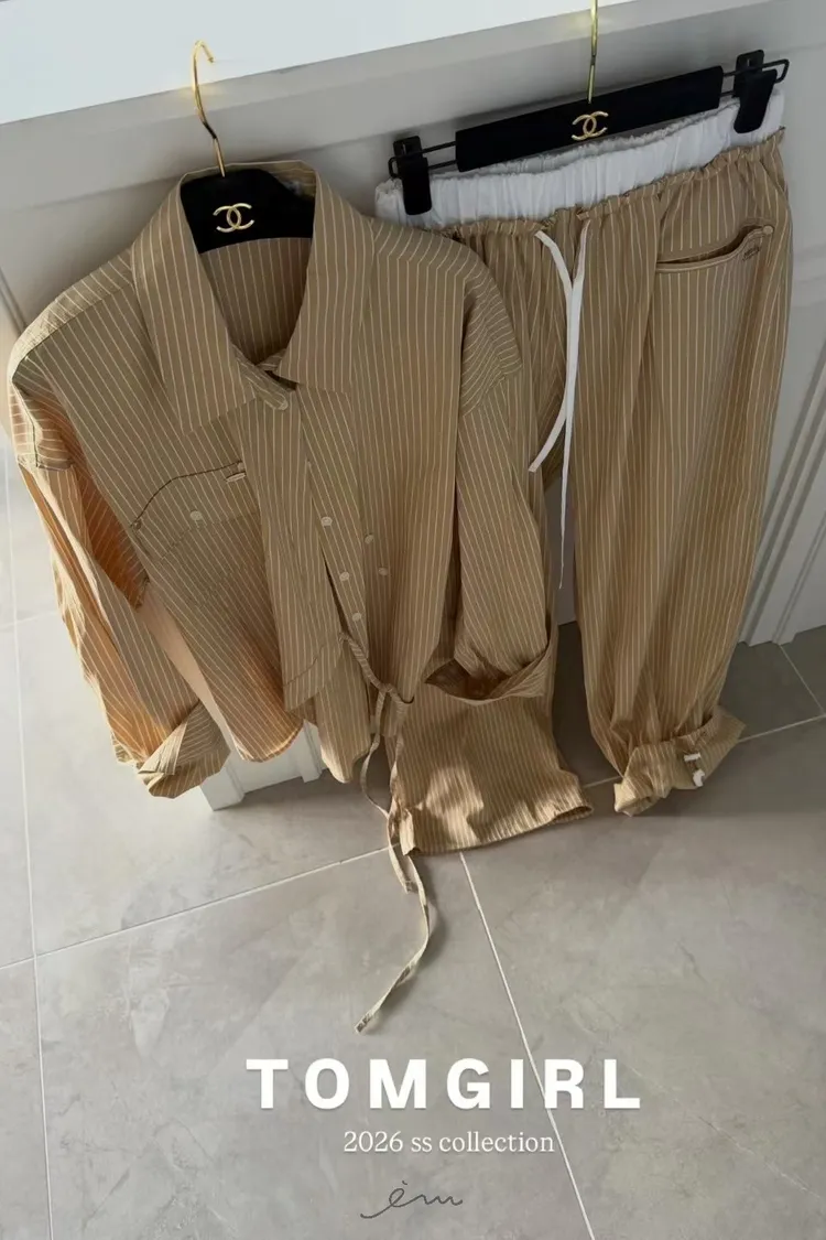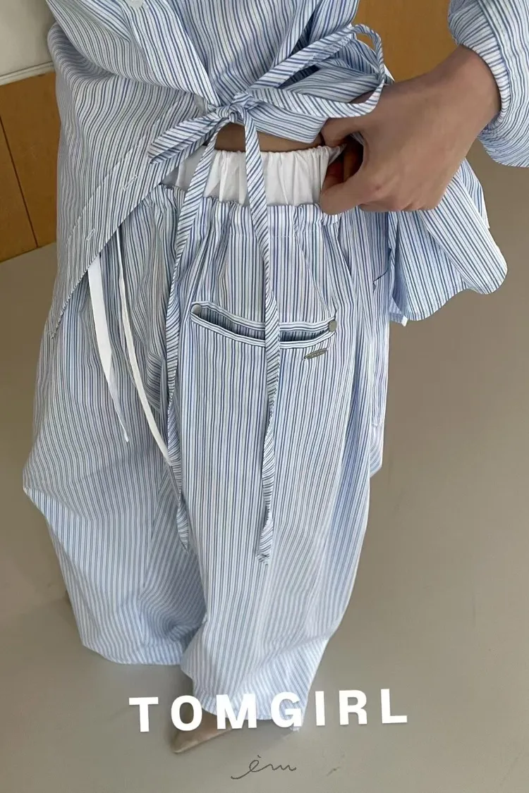 Tomgirl 白褲頭單口袋抽繩直條褲