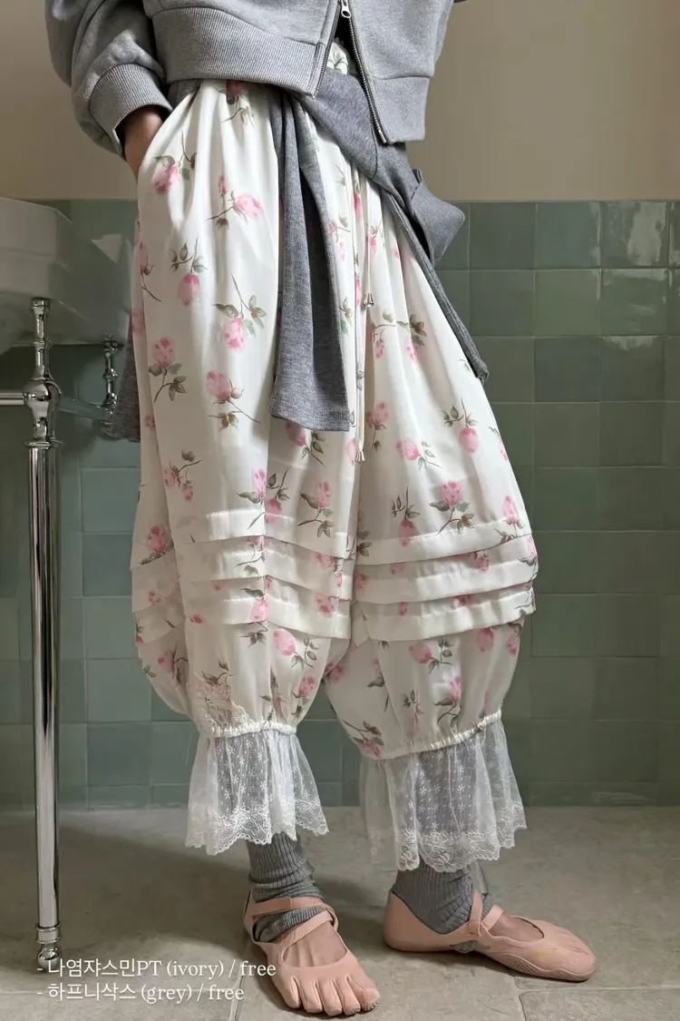 Tomgirl 拼蕾絲滿版玫瑰燈籠褲