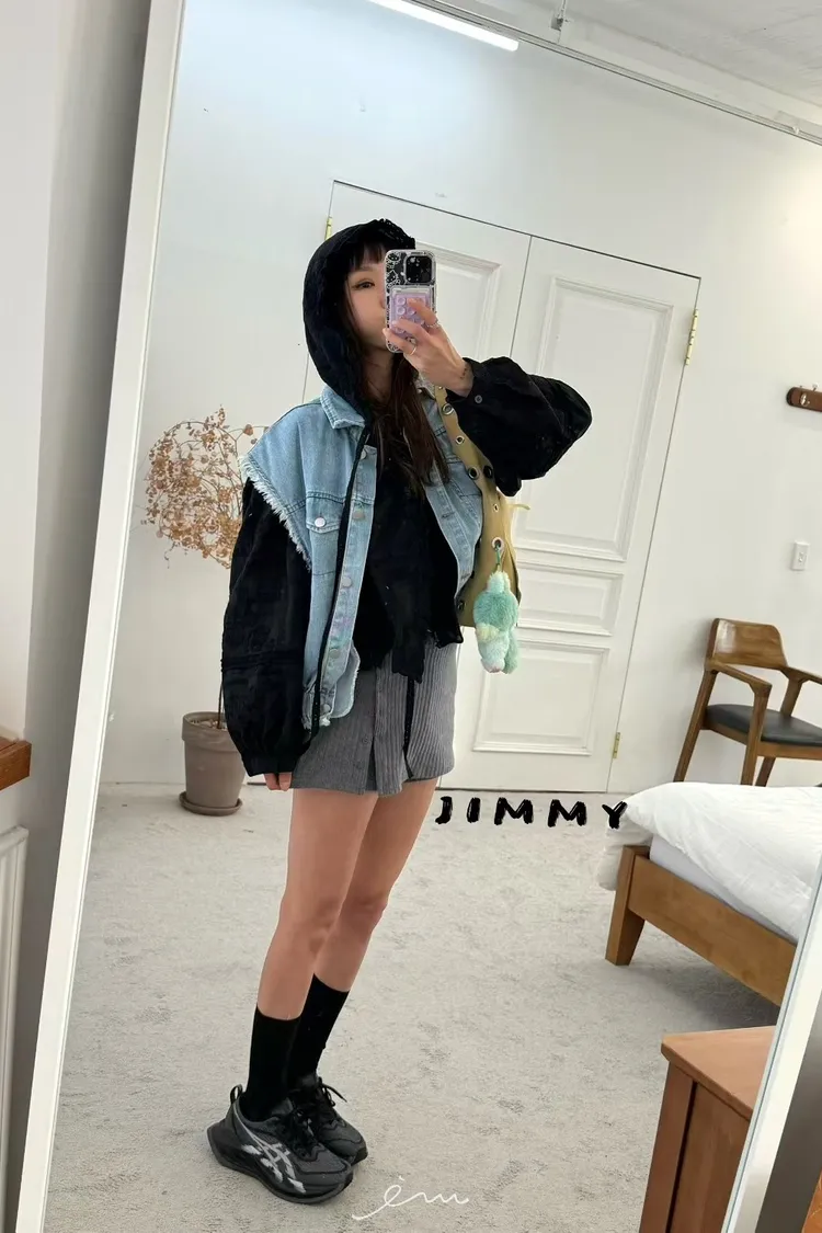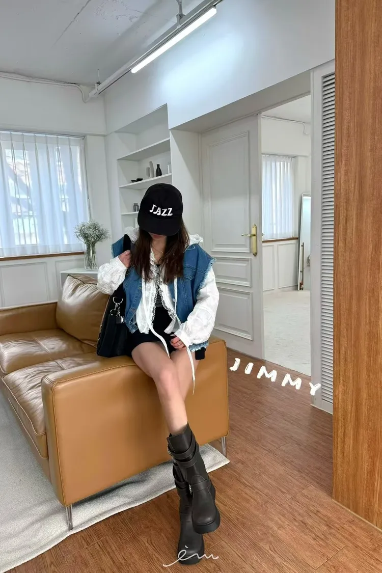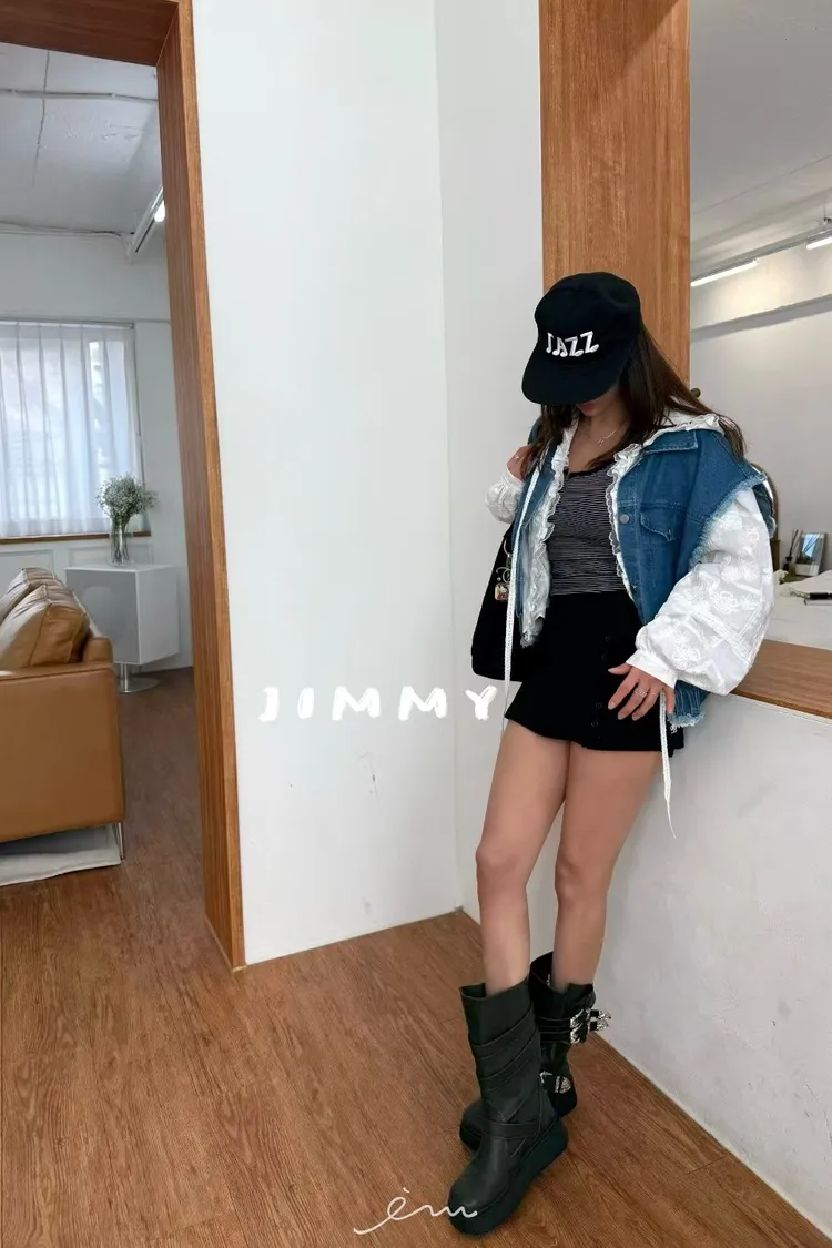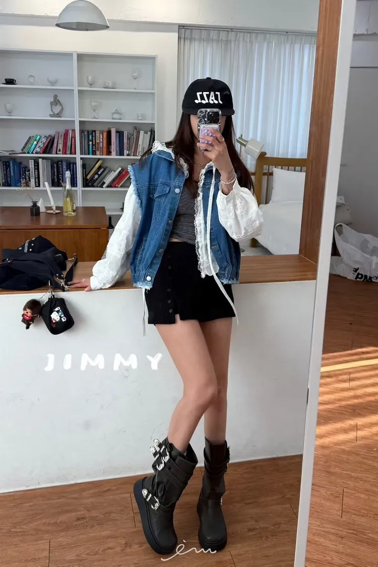 Jimmy下鬆緊雙口袋翻領牛仔背心
