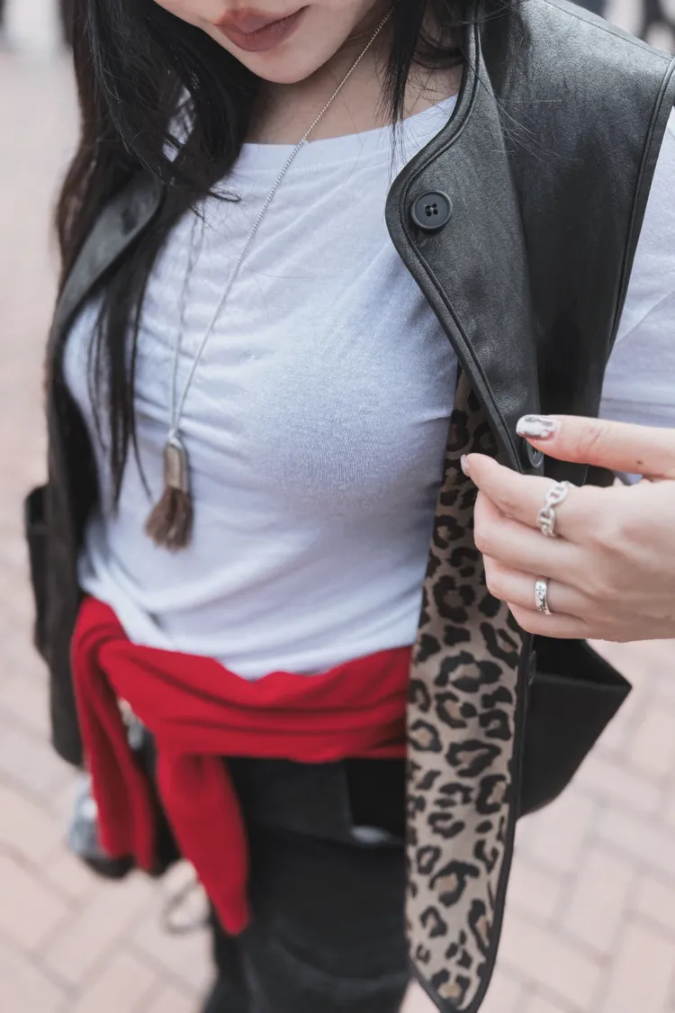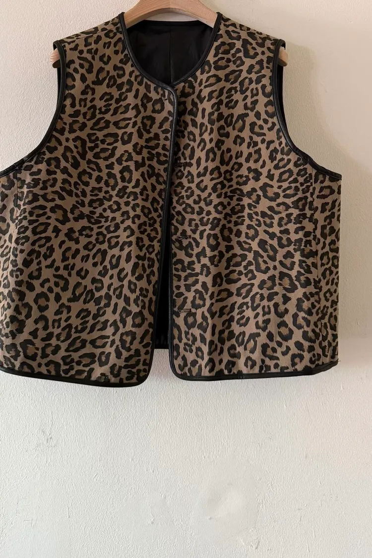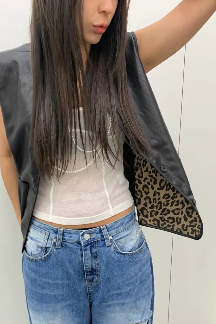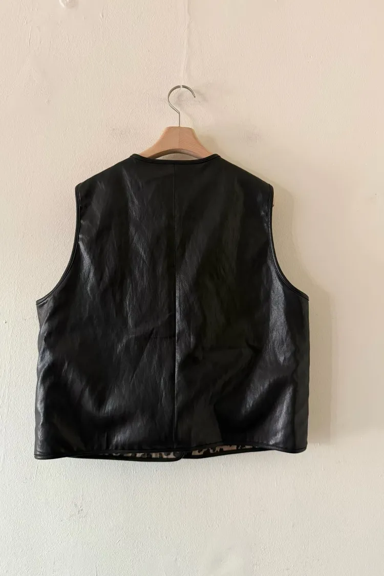 兩面穿皮革豹紋背心