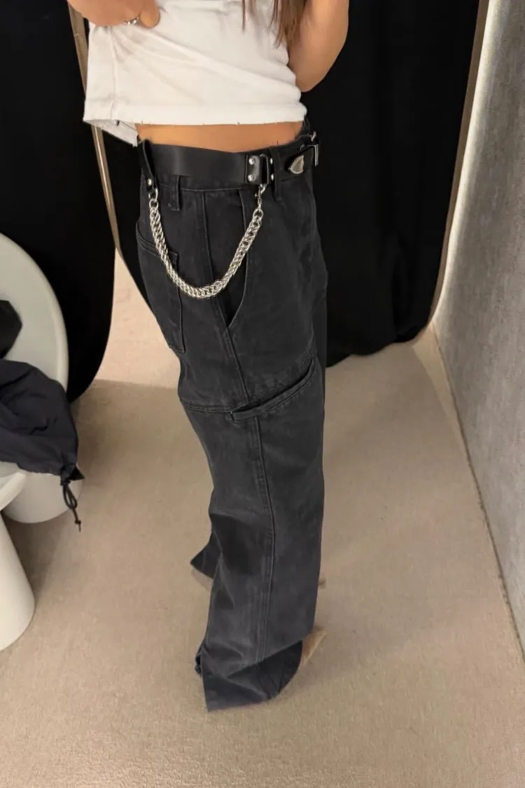 後開衩牛仔褲