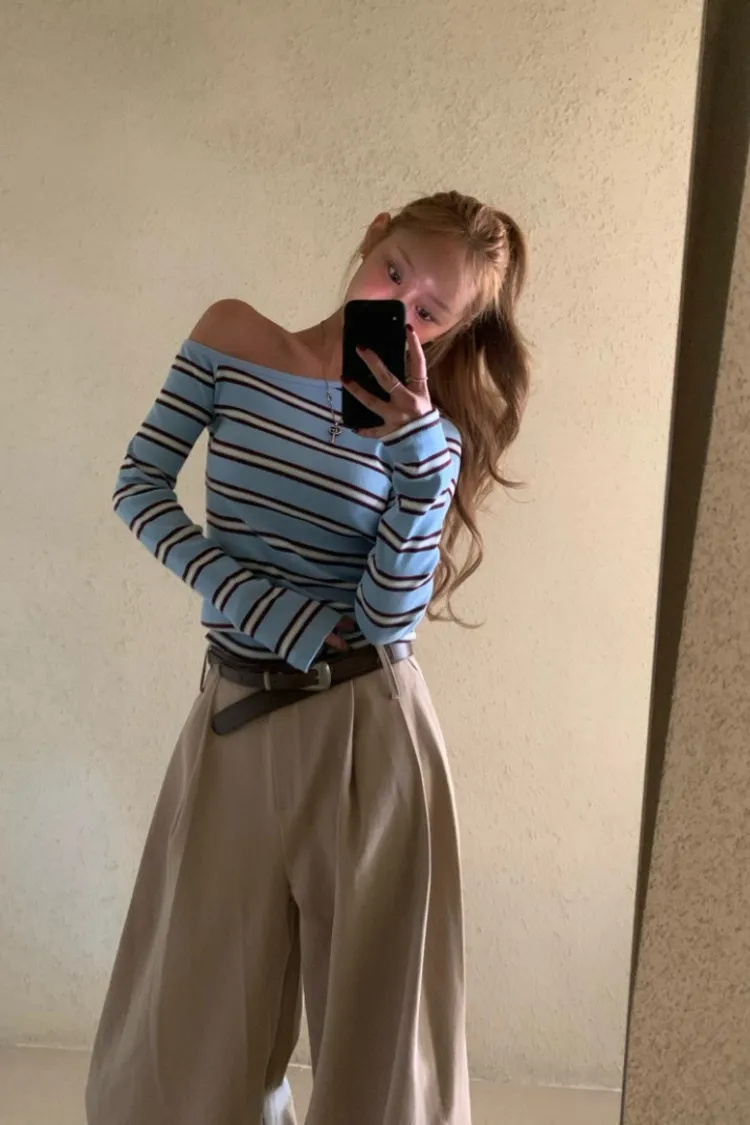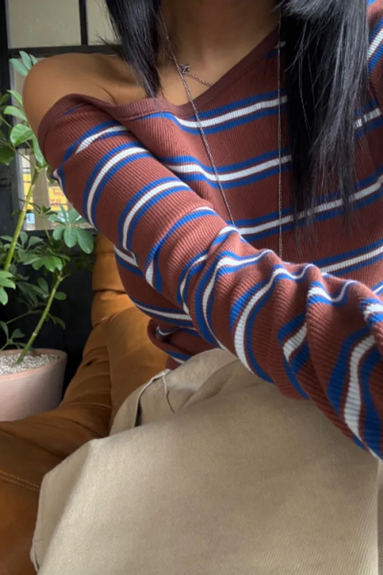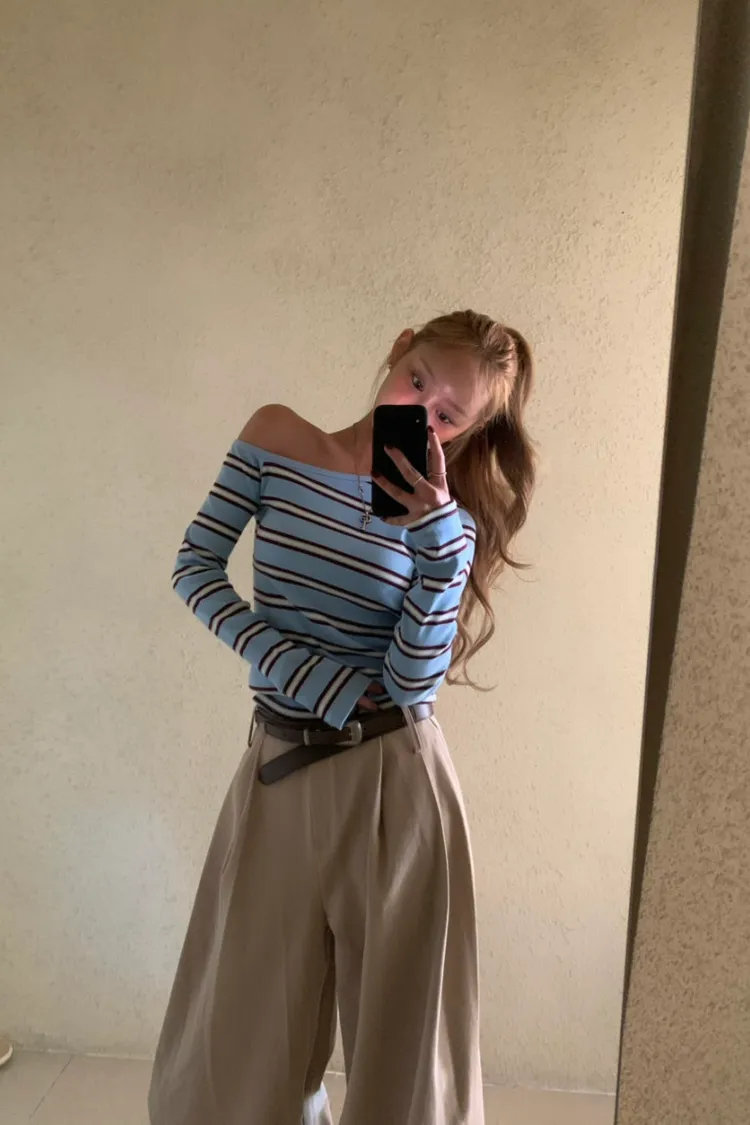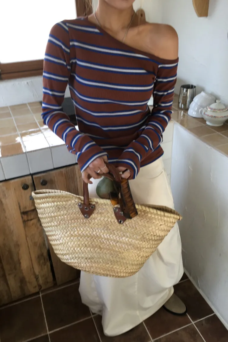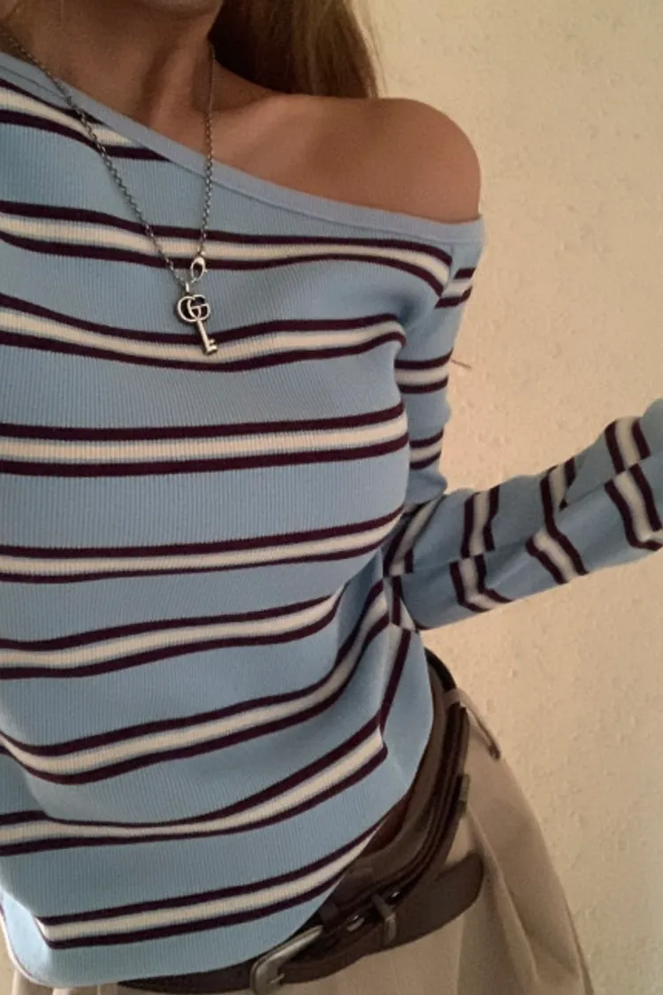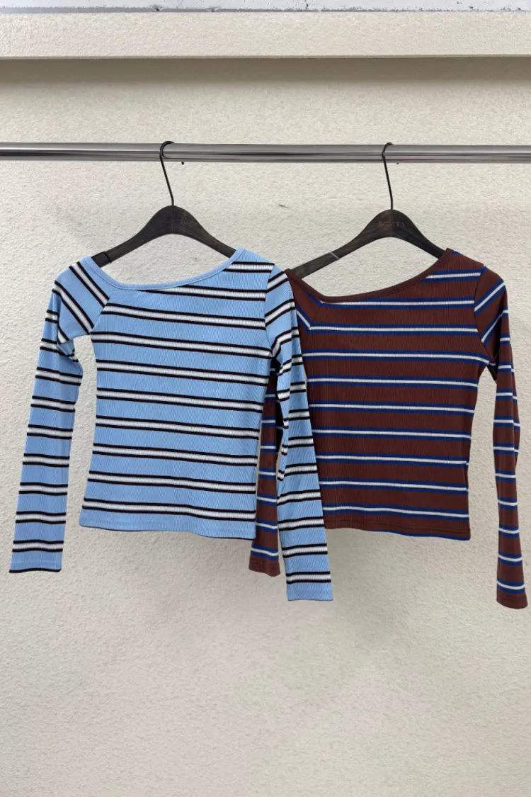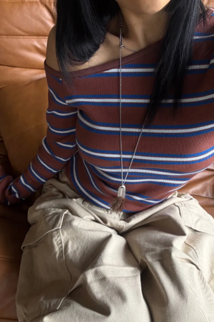 斜領條紋上衣