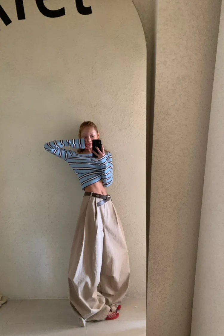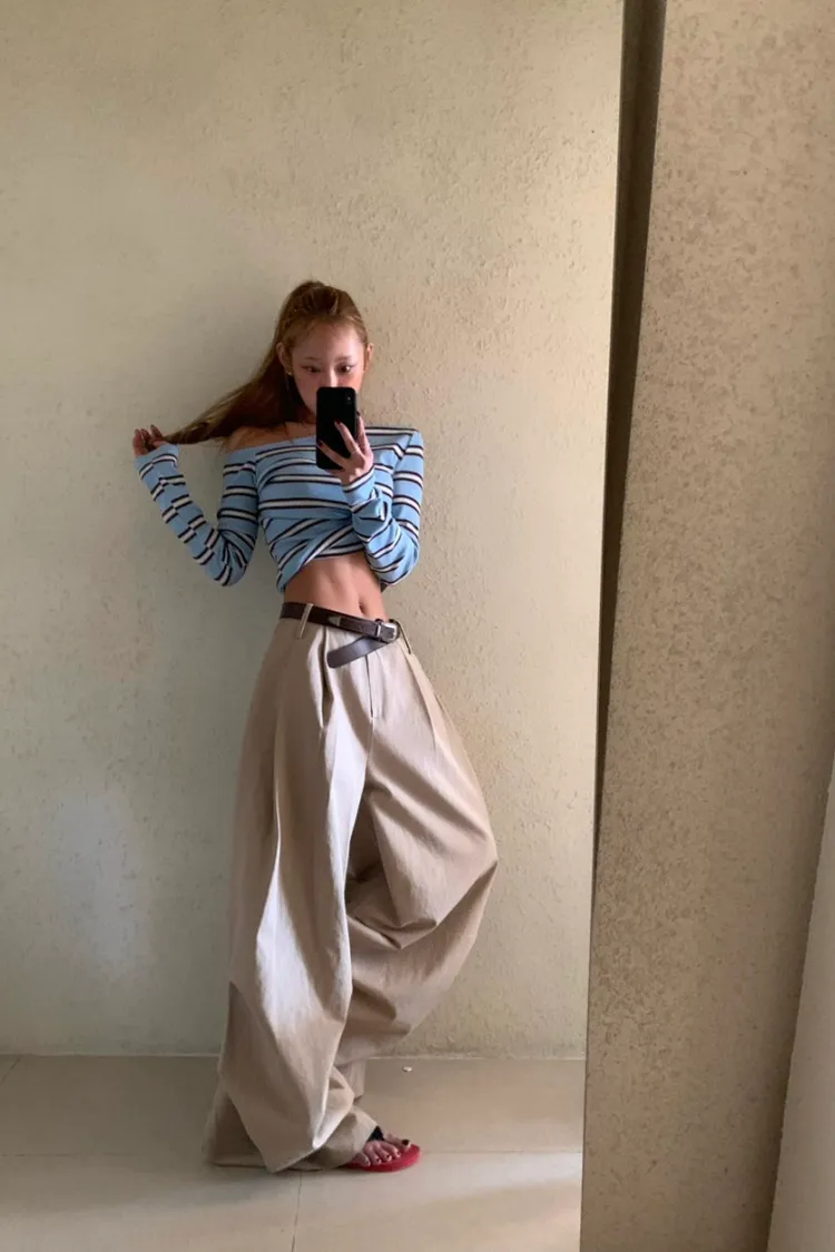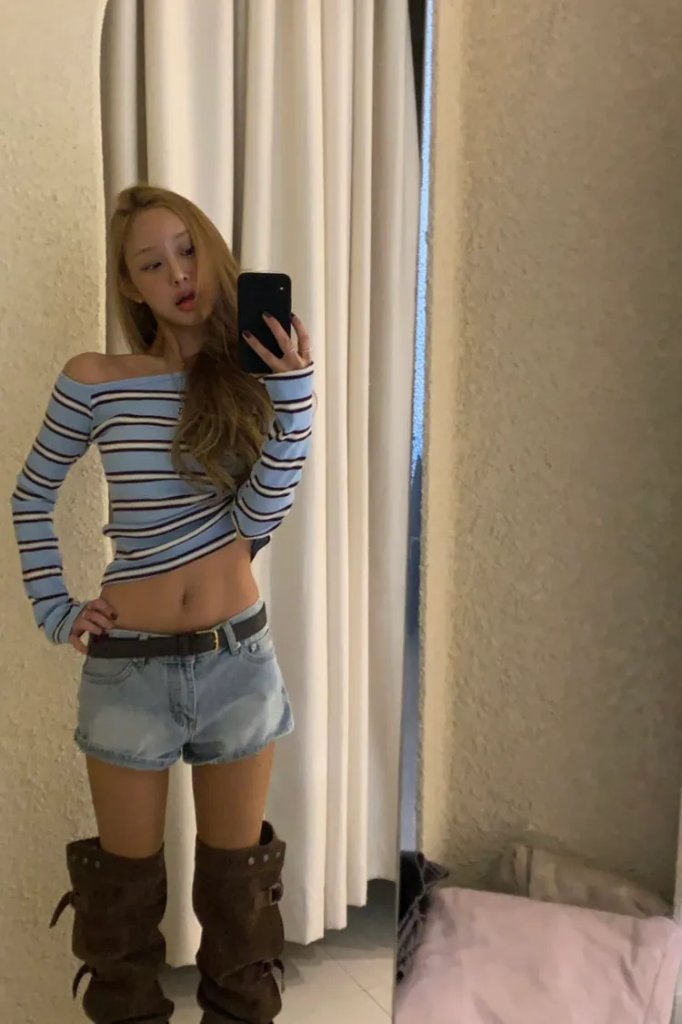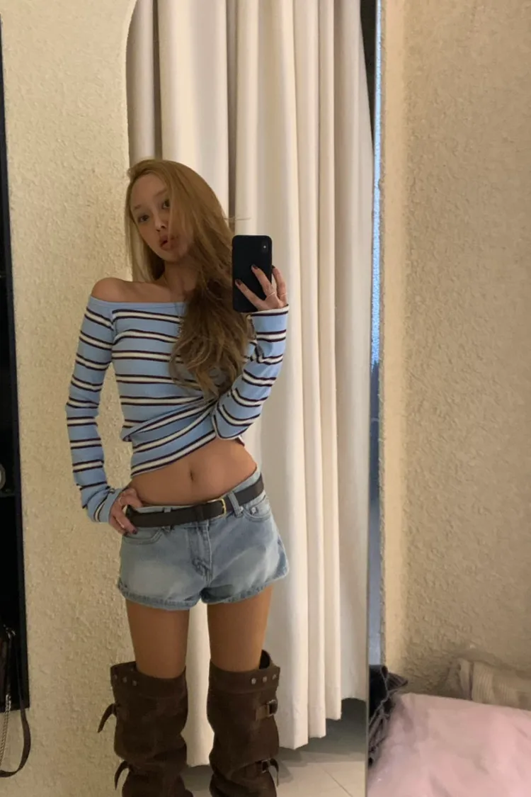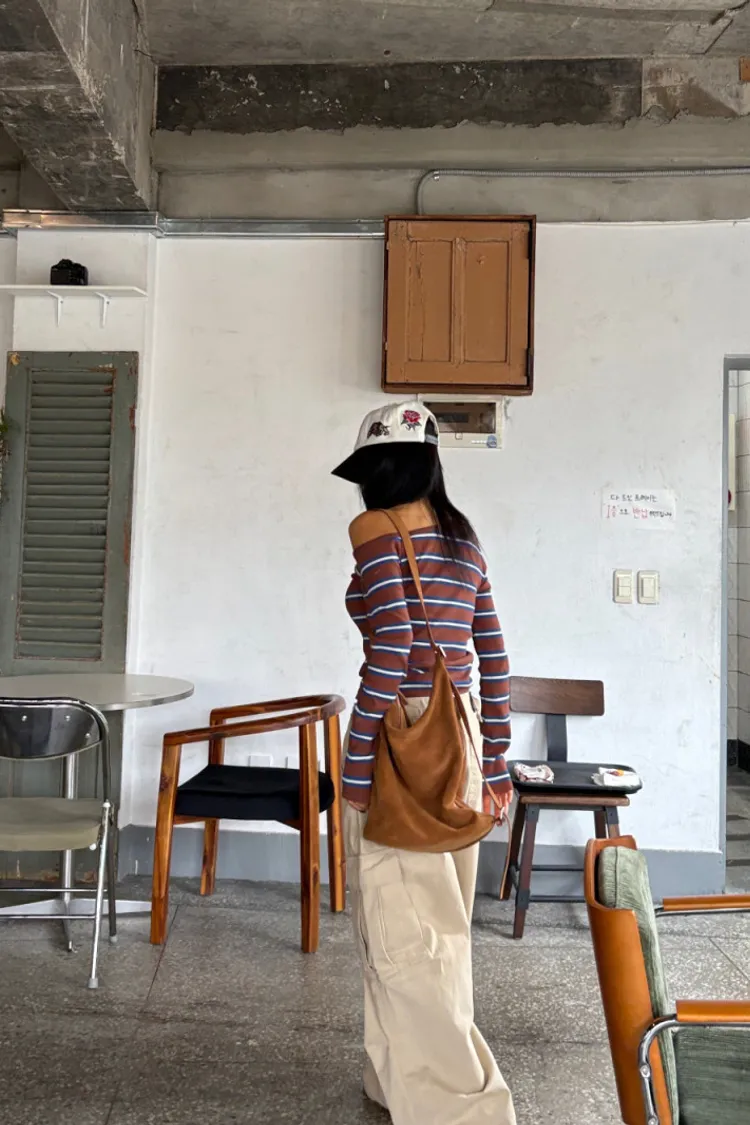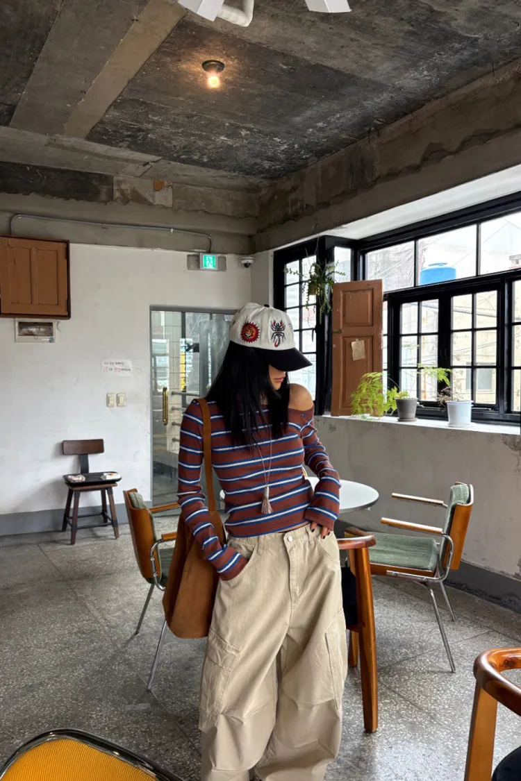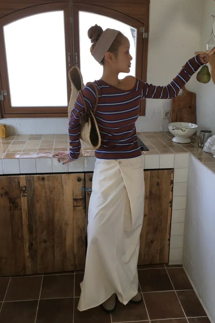 斜領條紋上衣