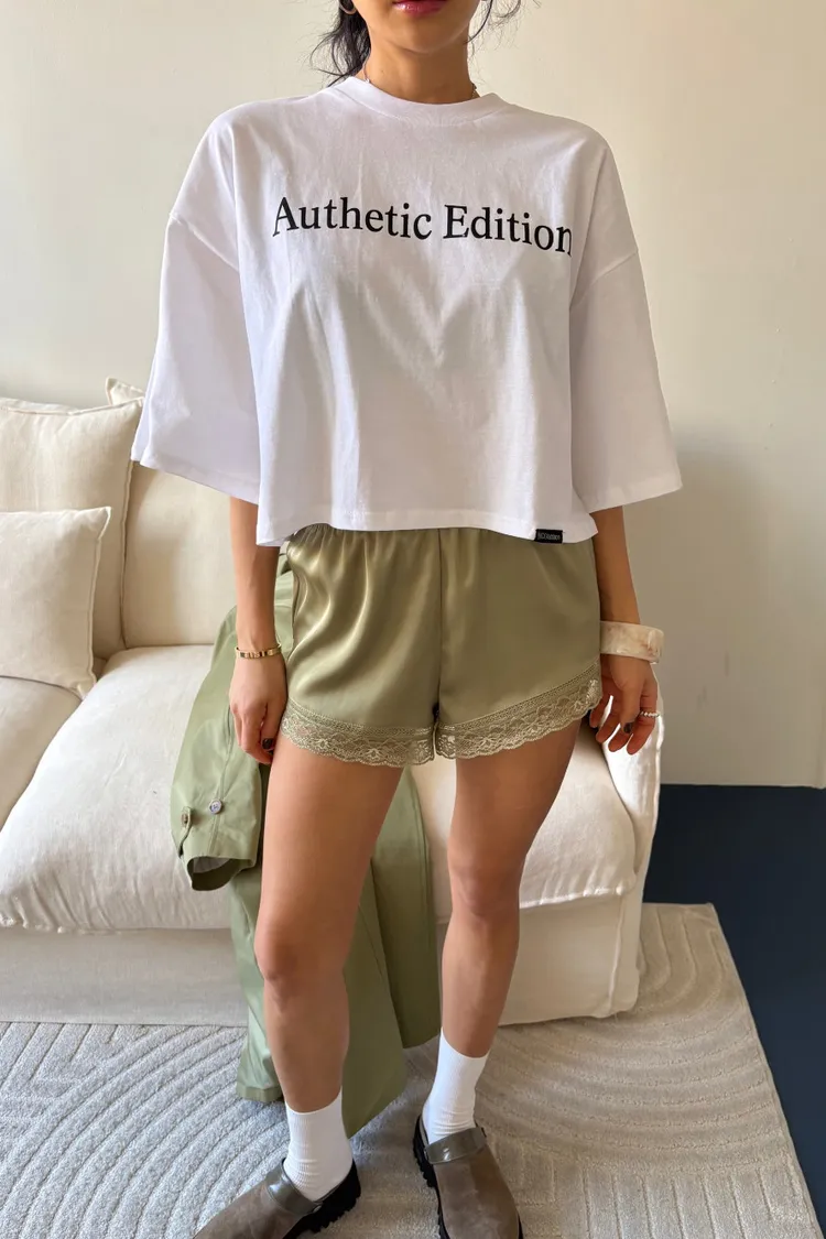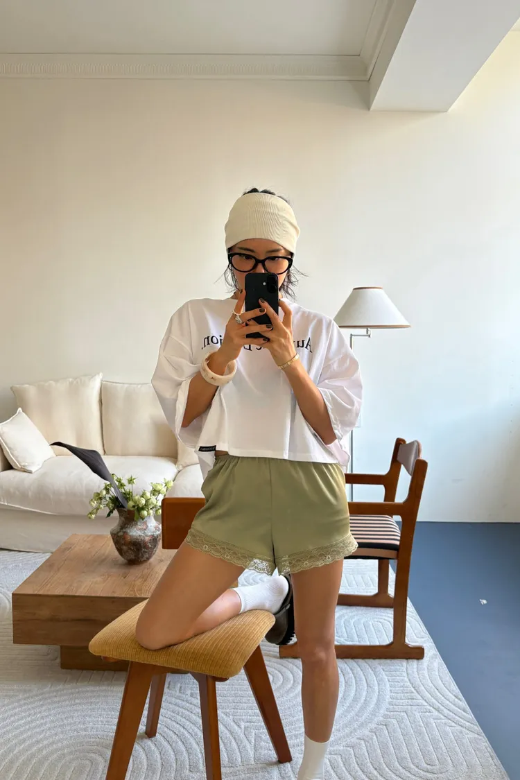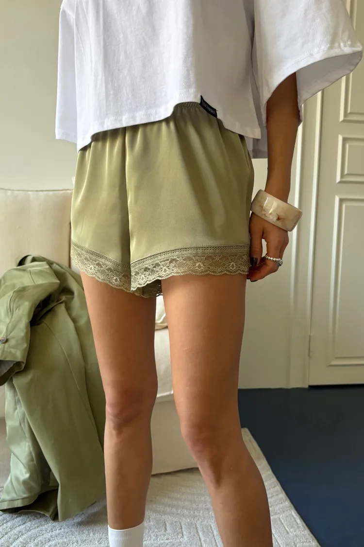 下蕾絲緞面短褲