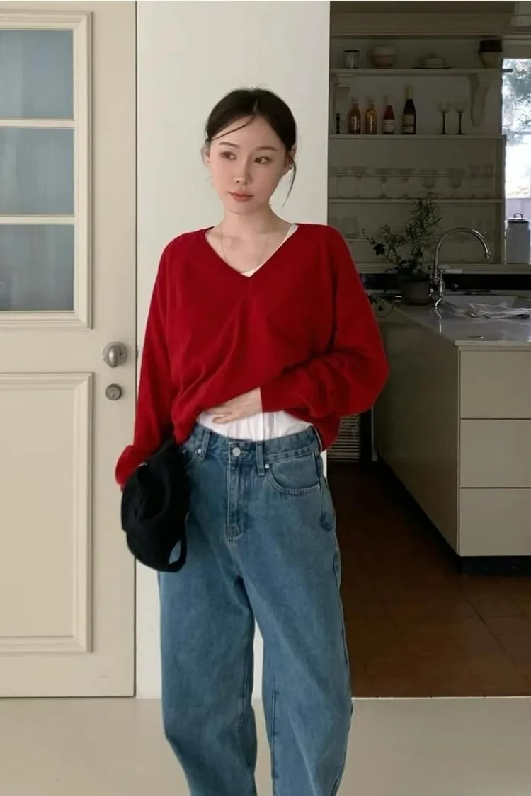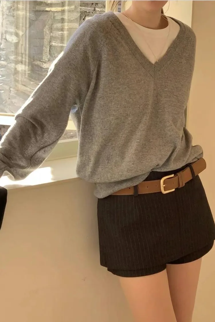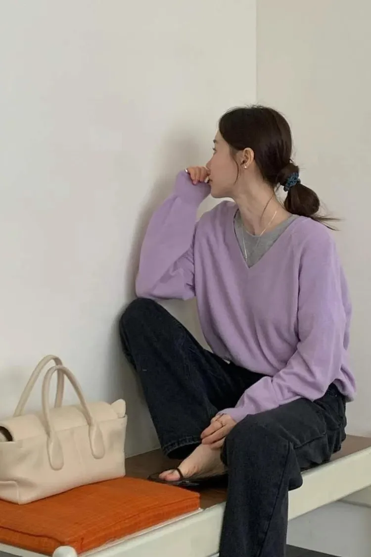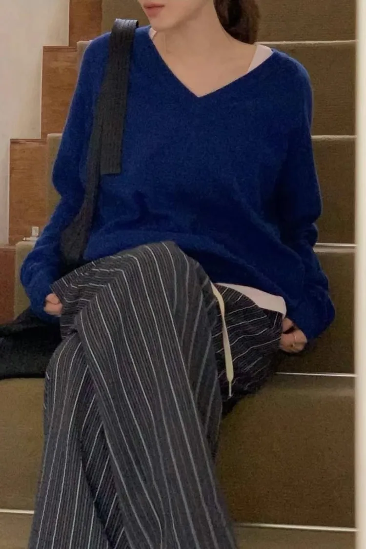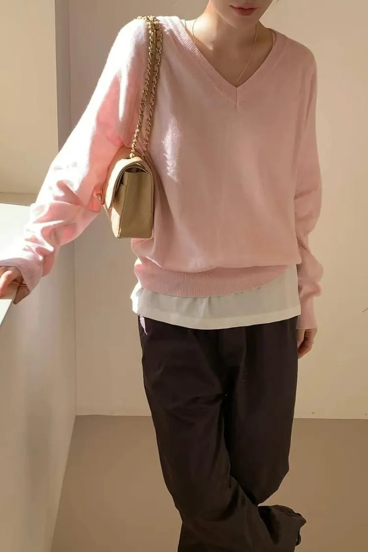 多色V領針織衫